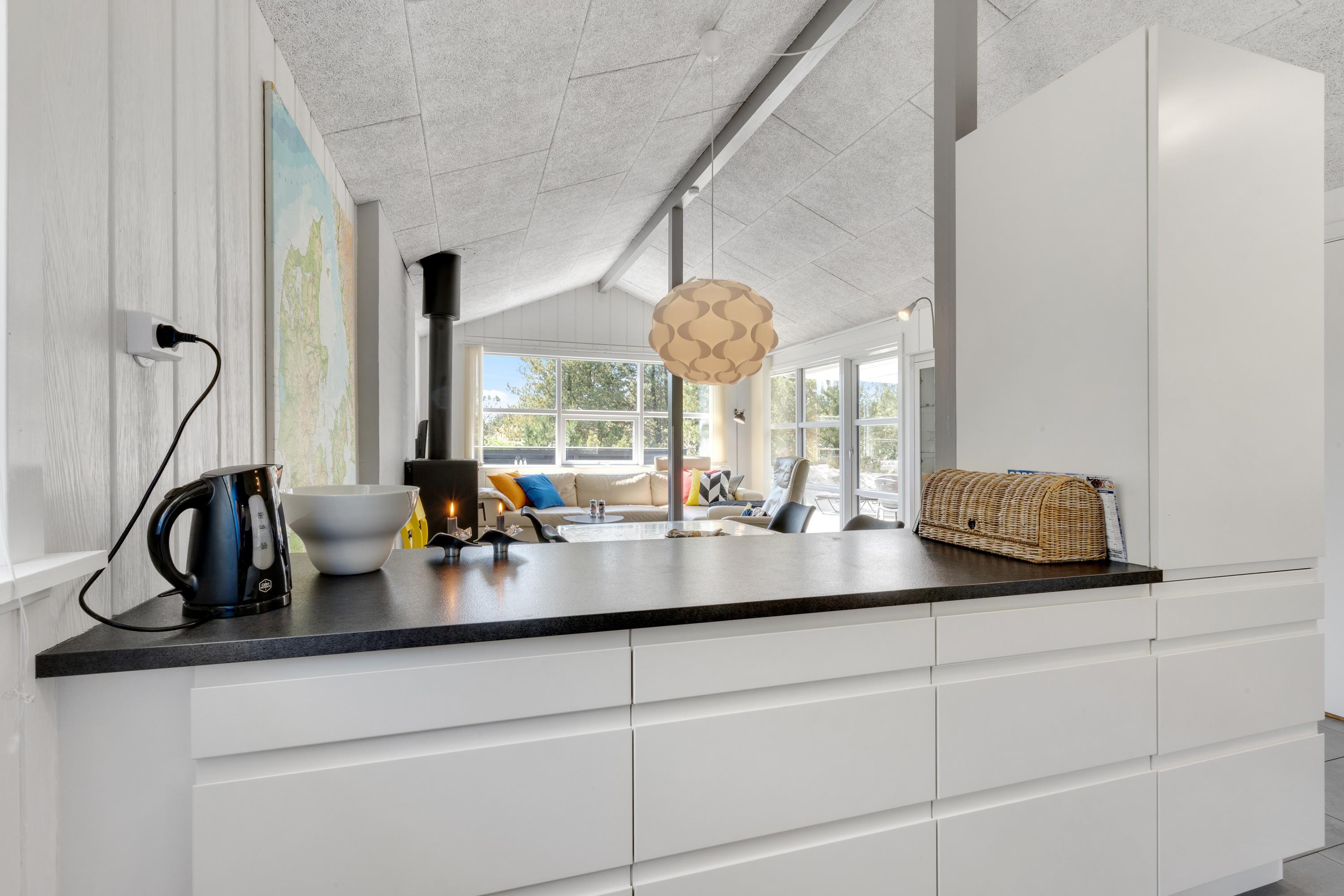 Derudover har sommerhuset et stort alrum, hvor køkken, stue og spiseafdeling er samlet i ét stort rum, hvor der er lagt op til mange dejlige feriestunder. Om I laver mad i køkkenet, spiller brætspil omkring bordet eller ser film i tv’et, bidrager brændeovnen med ekstra hyggelig stemning og god varme.