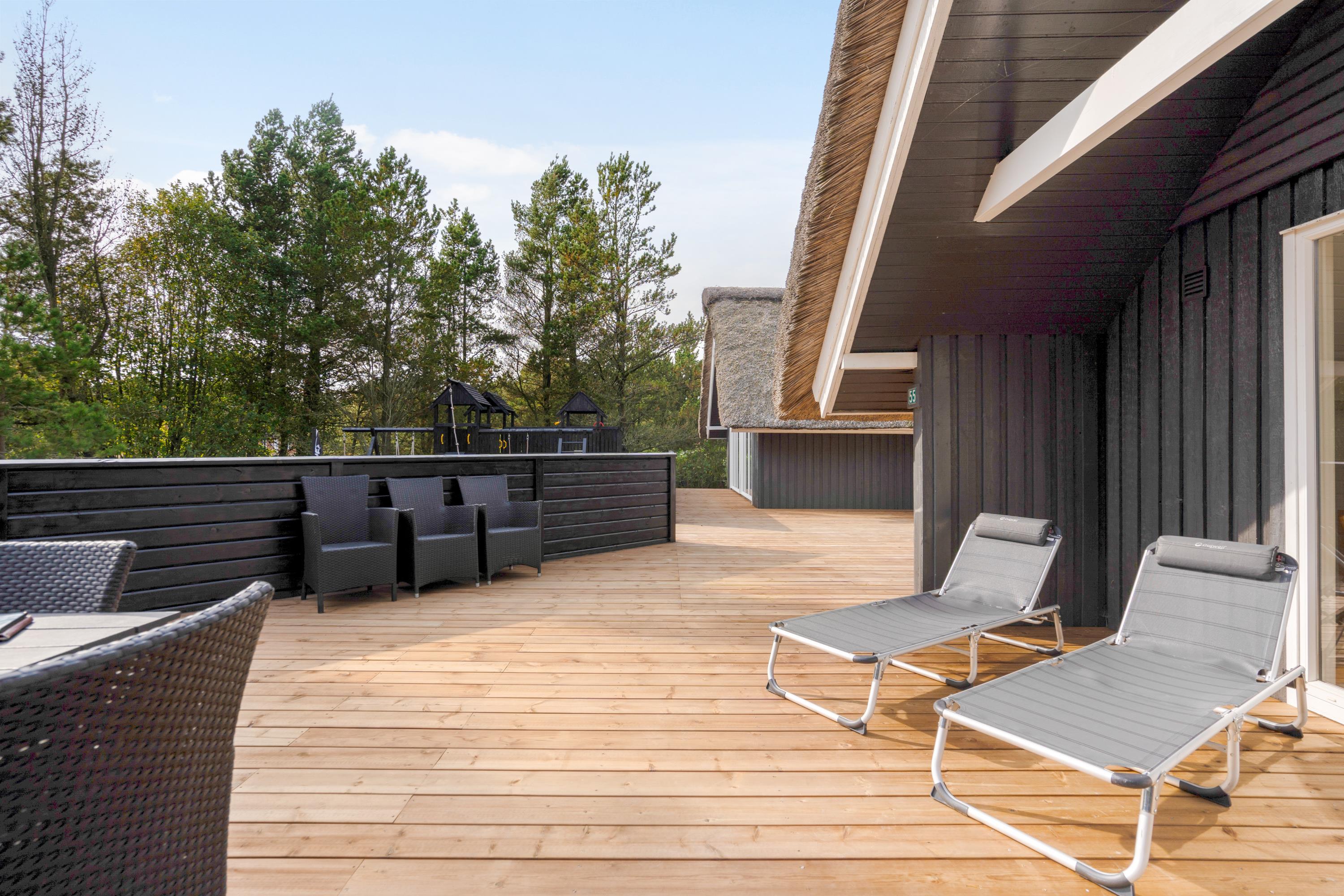 Sommerhuset har et fantastisk terrasseområde, hvor I altid kan finde jer et godt spot i solen, som I kan rykke havemøblerne og liggestolene hen til, så I rigtigt kan ligge og suge solens varme til jer.
