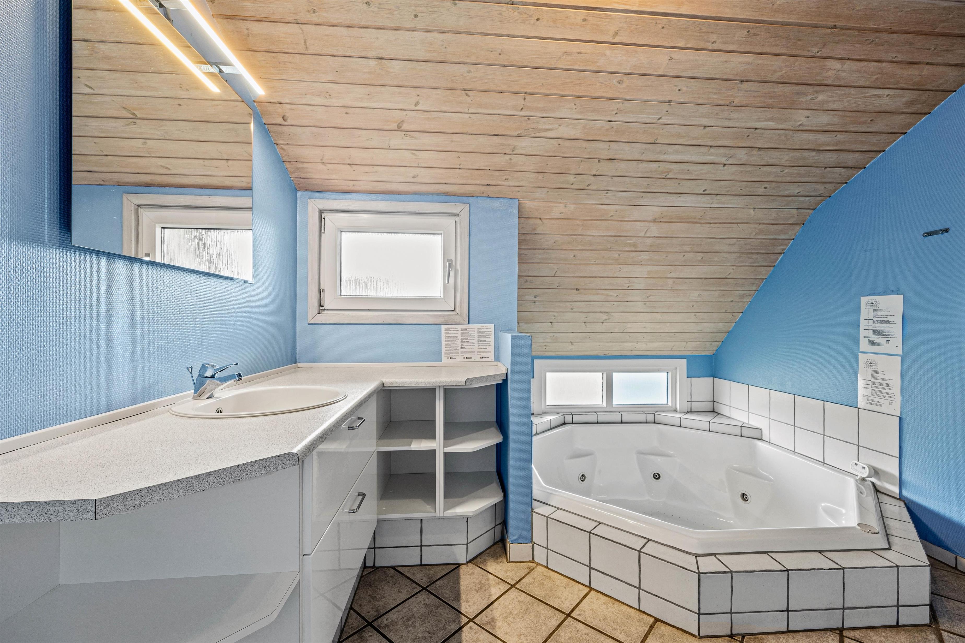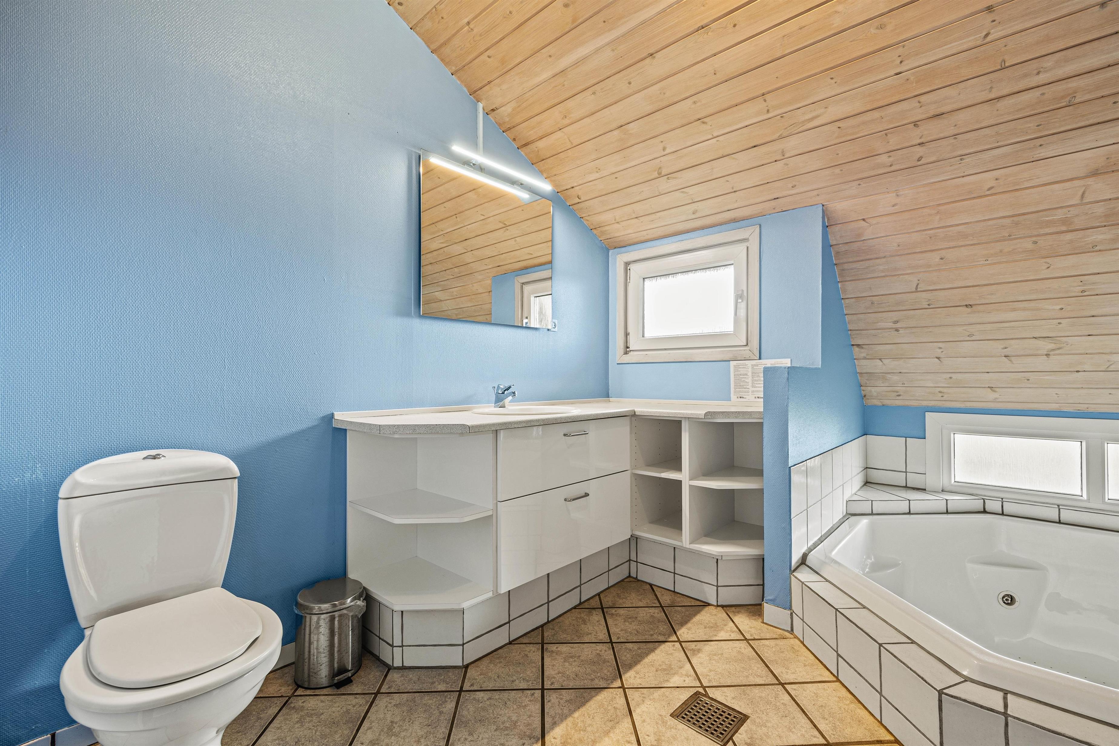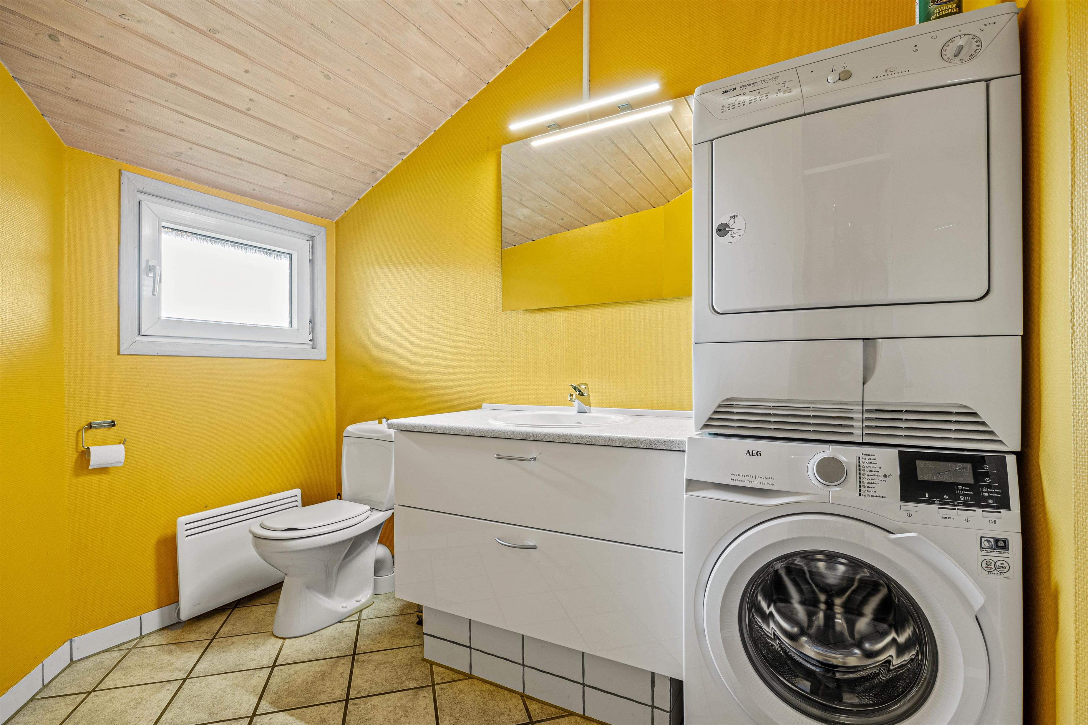 Sommerhuset råder over 2 badeværelser med gulvvarme og efter en dag i den friske havluft er det oplagt at runde af med en tur i saunaen eller en stille stund i spabadet. Her er desuden både vaskemaskine og tørretumbler, så I kan tage hånd om det praktiske undervejs på ferien.