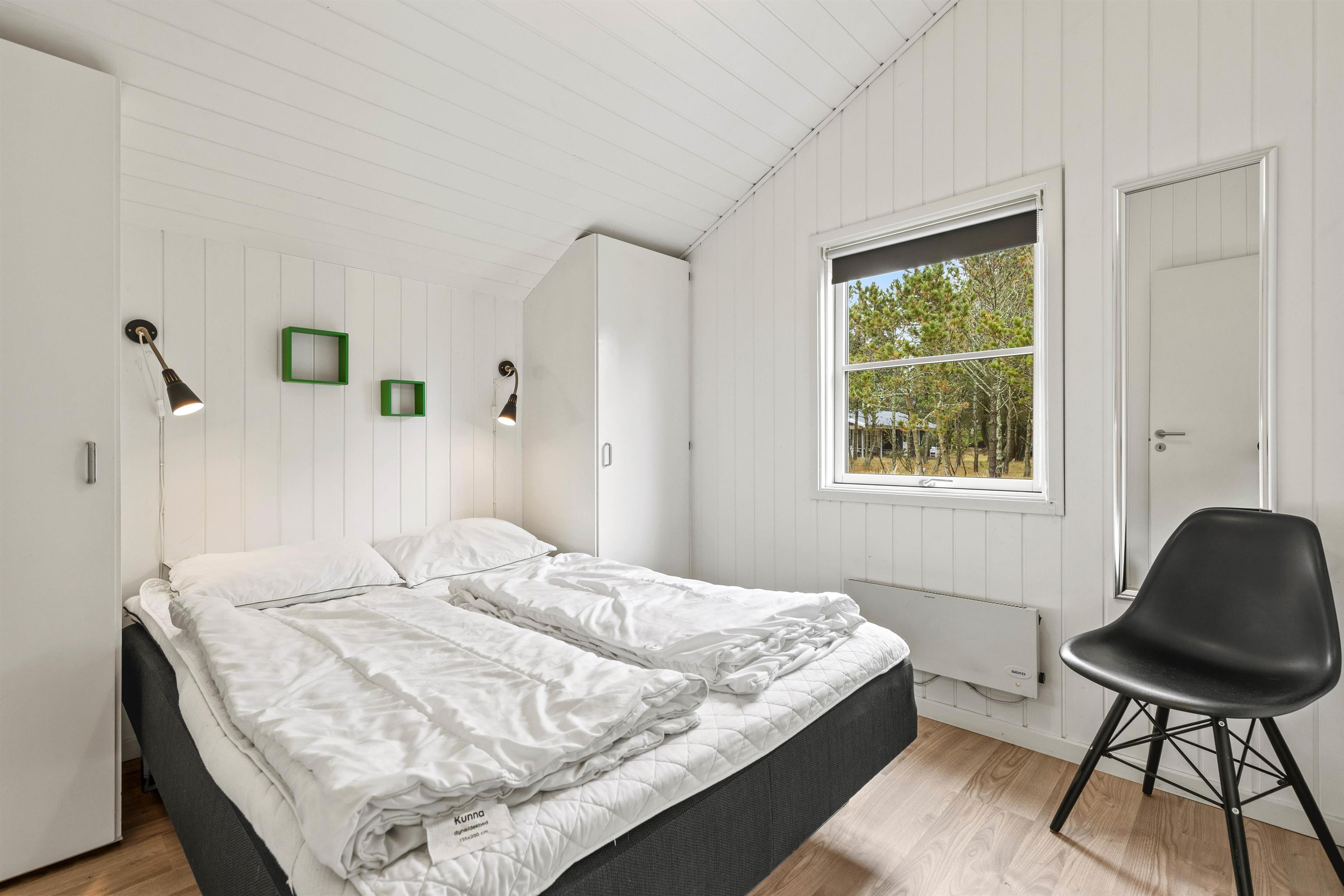 Sovepladserne fordeler sig på 4 gode soveværelser med fin skabsplads, 2 dobbeltsenge, 2 enkeltsenge og en sovesofa, som helt sikkert bliver et hit blandt de unge feriegæster.