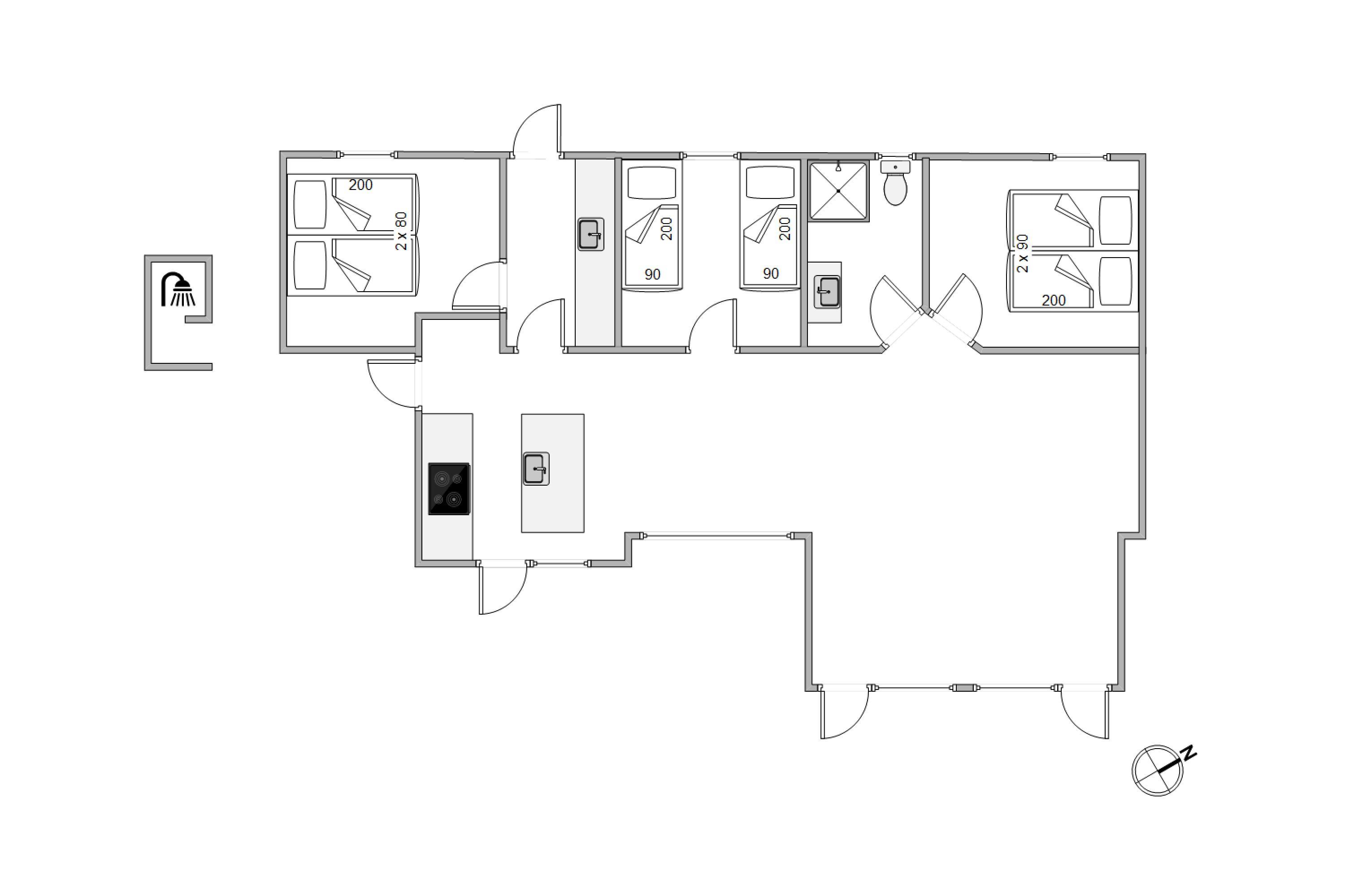 Når I har været på stranden og fået en forfriskende dukkert, kan I gå direkte hjem i den rummelige udebruser og blive skyllet af. Her er både koldt og varmt vand, og bruseren kan benyttes fra 1. april til 31. oktober.