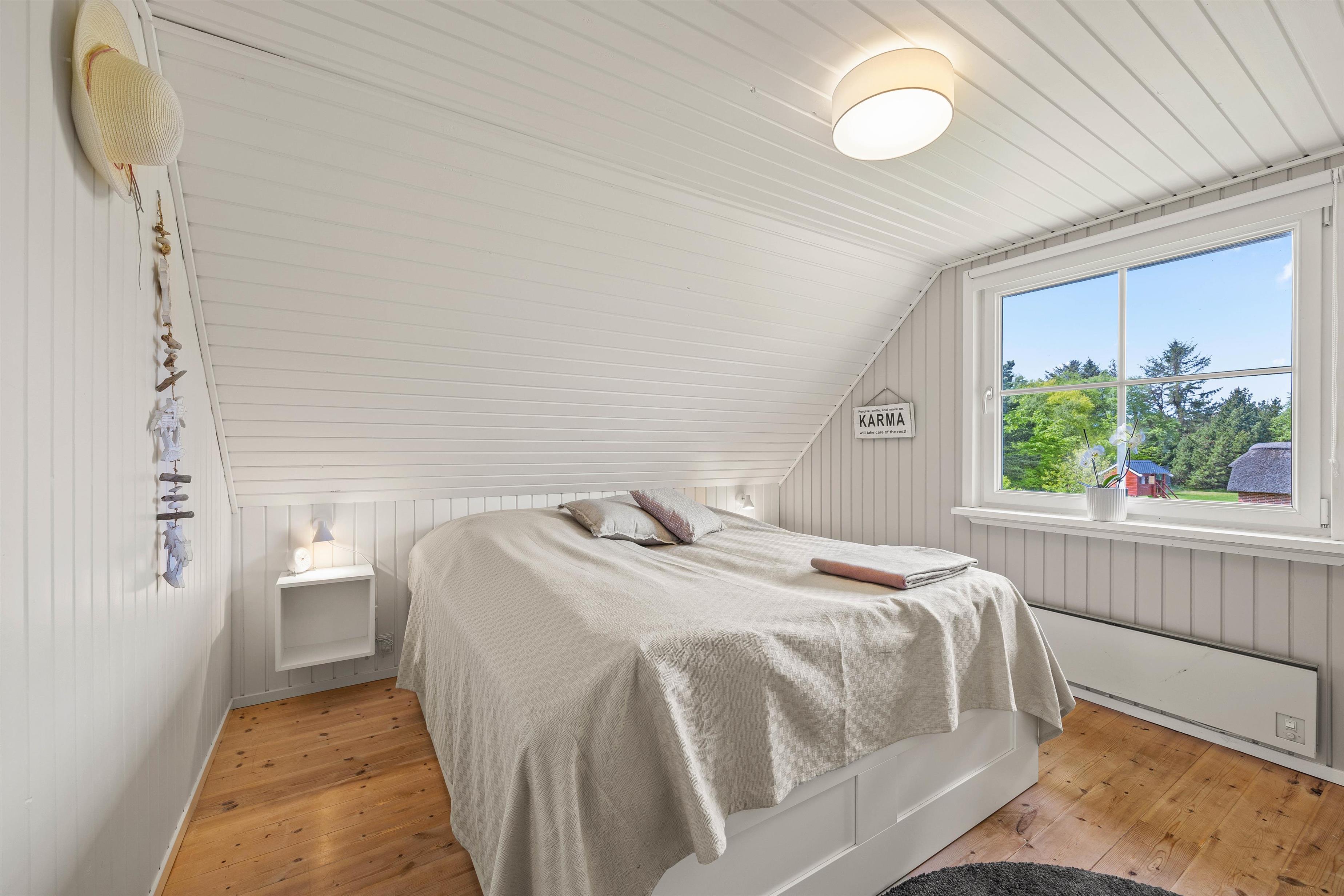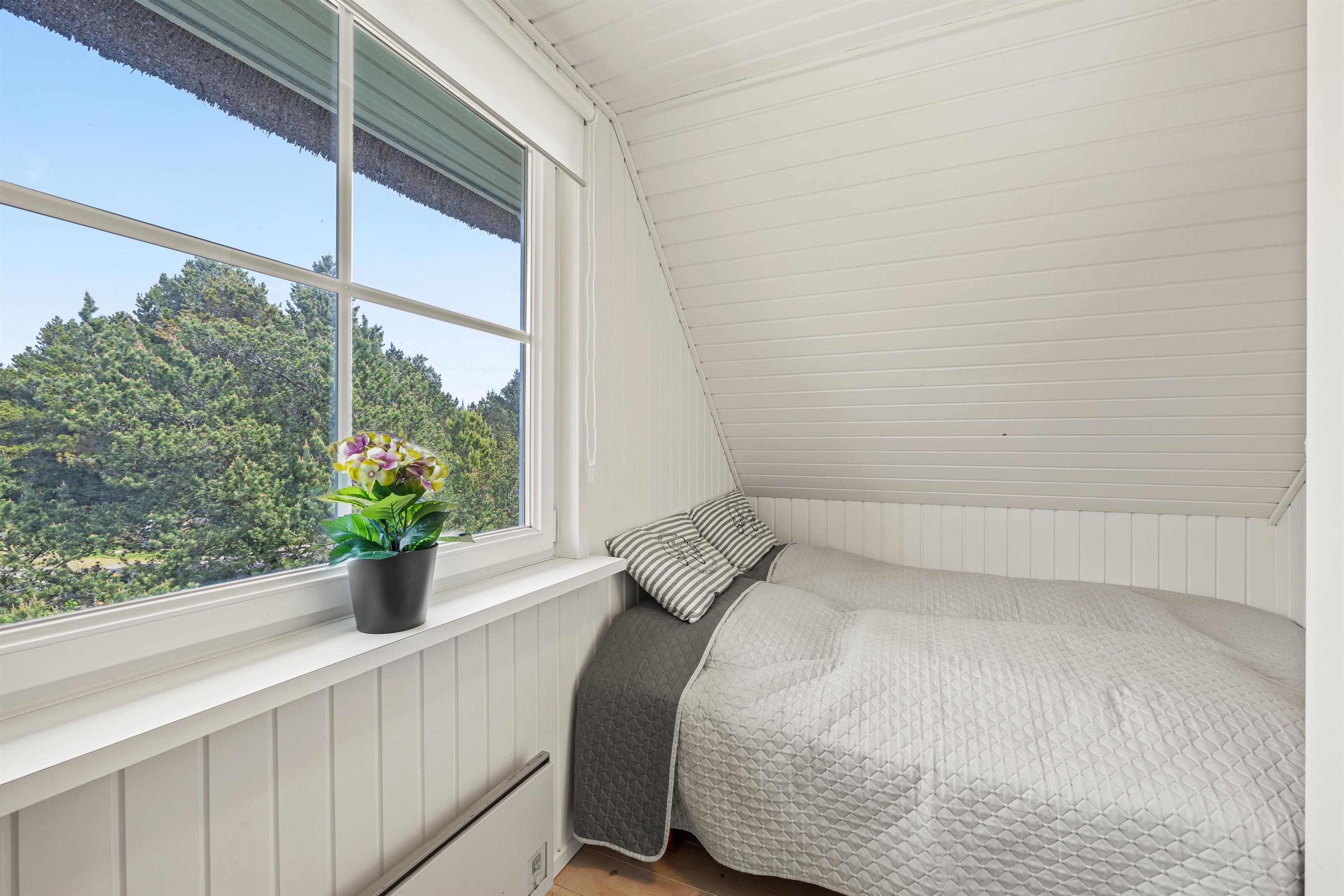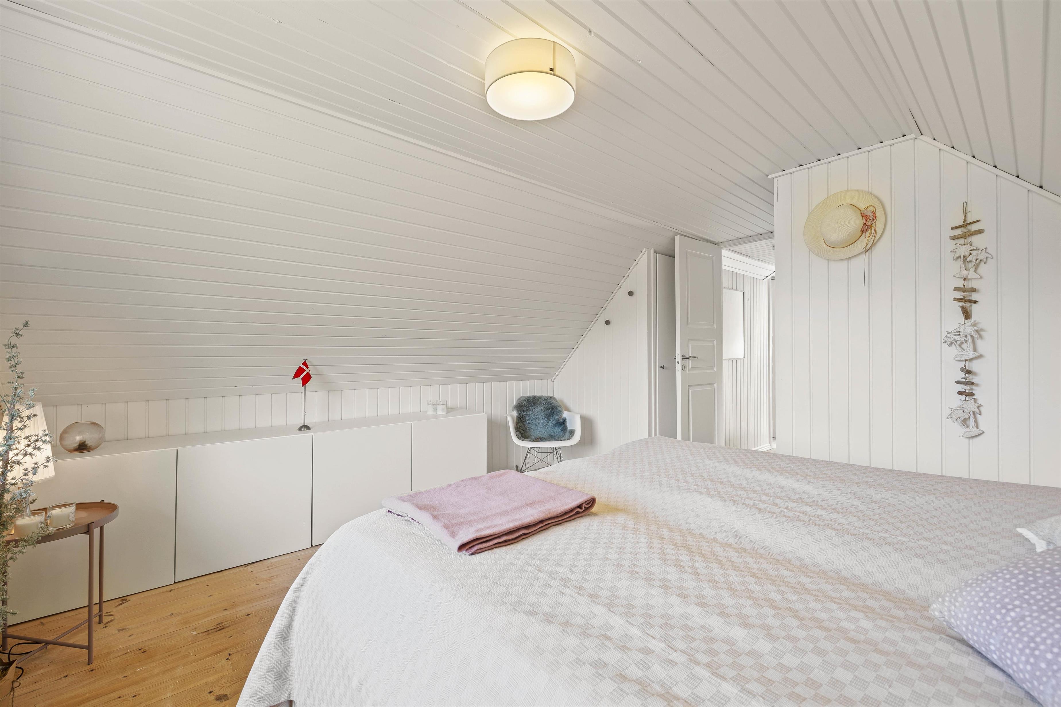 På begge etager finder I fine badeværelser med gulvvarme, og de 8 sovepladser er fordelt på 4 hyggeligt indrettede soveværelser, der alle er forsynet med dobbeltsenge.