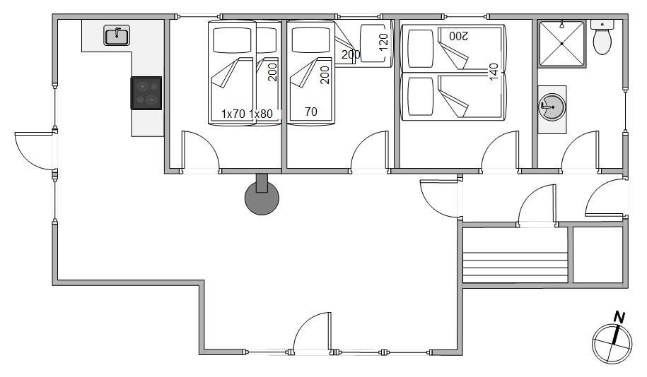 I dette sommerhus i Blåvand møder I en god kombination af traditionel charme og moderne bekvemmeligheder. De tre soveværelser er perfekte til familier eller grupper: en dobbeltseng, to enkeltsenge, en køjeseng og en halv væghængt køje sikrer hvilestunder for alle gæster. Badeværelset er udstyret med gulvvarme, der giver en behagelig varme til fødderne. Om aftenen kan I nyde hyggen fra brændeovnen, som skaber en varm atmosfære på kølige dage. Og når I har brug for afslapning, står saunaen klar.