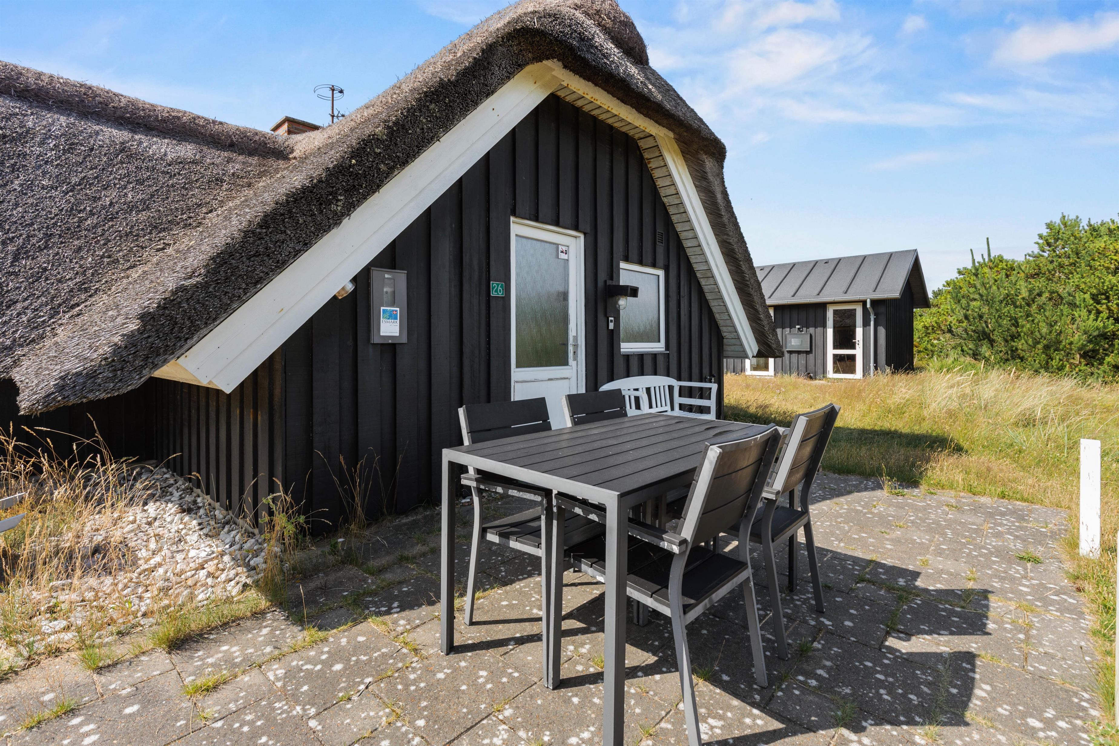 Oplev det charmerende sommerhus i Blåvand, beliggende på Skippervej 26. Dette hyggelige tilflugtssted er et godt valg for en afslappende ferie ved den danske vestkyst. Med et boligareal på 76m2 er der plads til op til 4 voksne og 2 børn, hvor afslapning og hygge går hånd i hånd under det charmerende stråtag. Lad jer fortrylle af den uspolerede natur, der omgiver sommerhuset, og nyd den nære afstand til stranden, der blot er 200 meter væk.