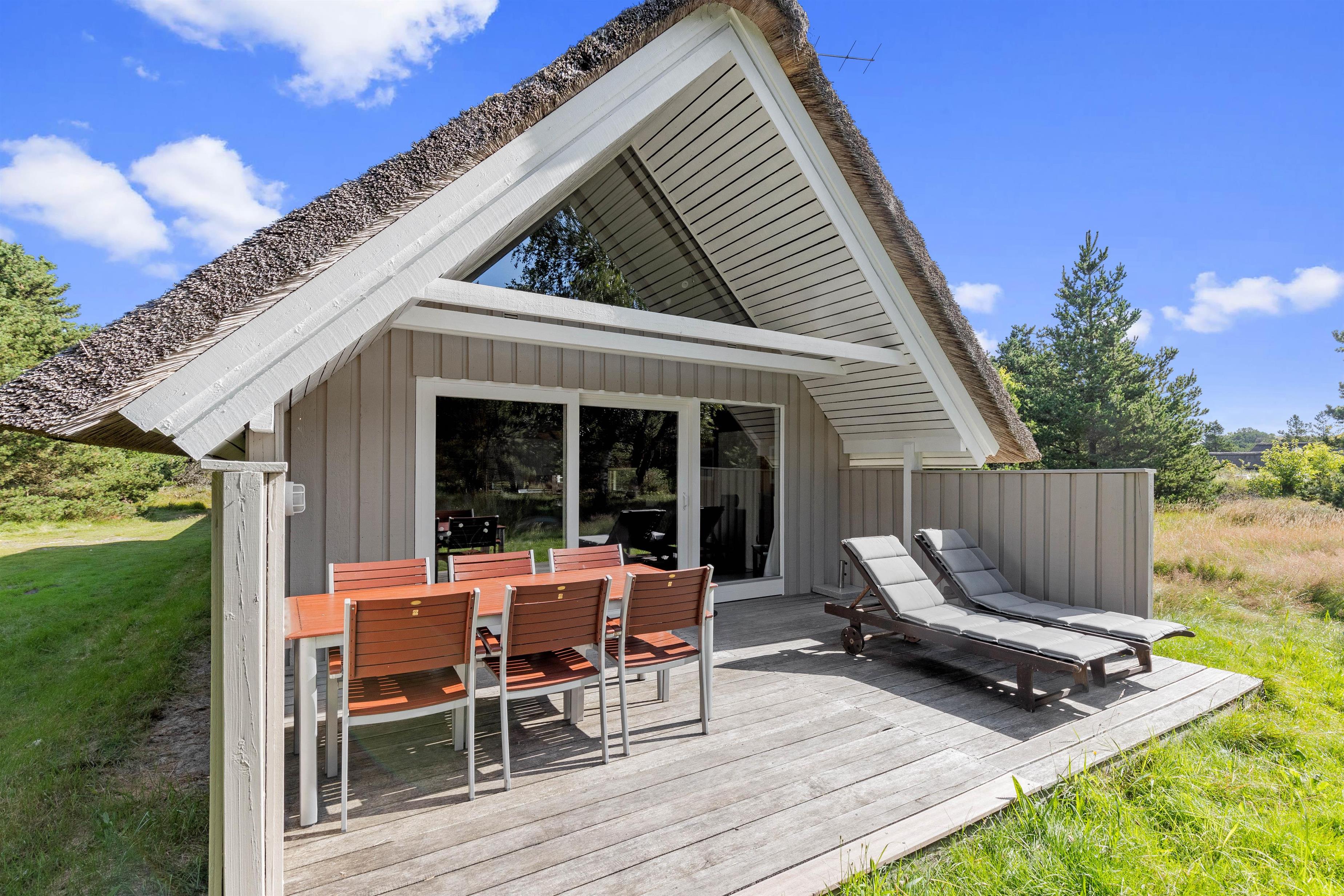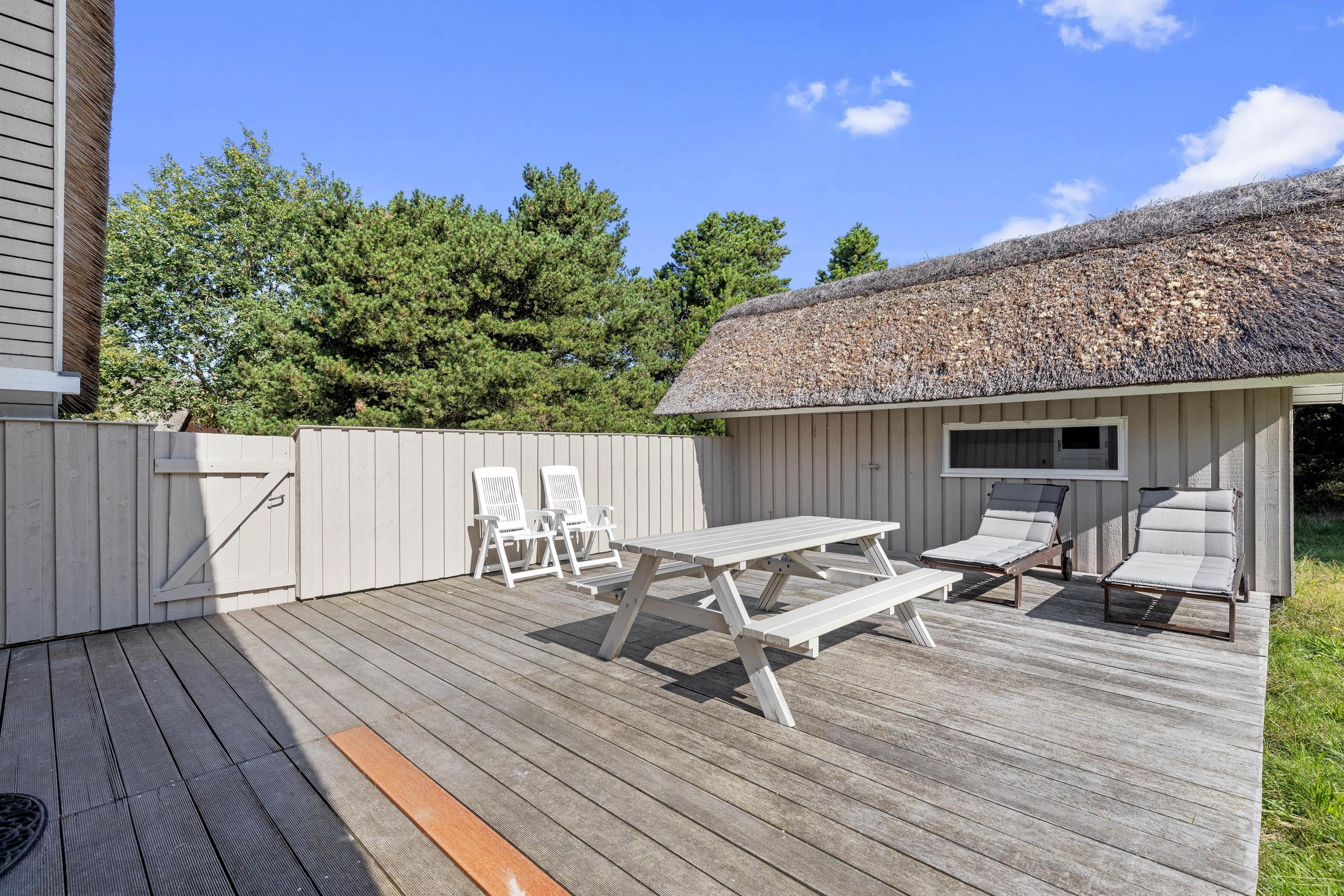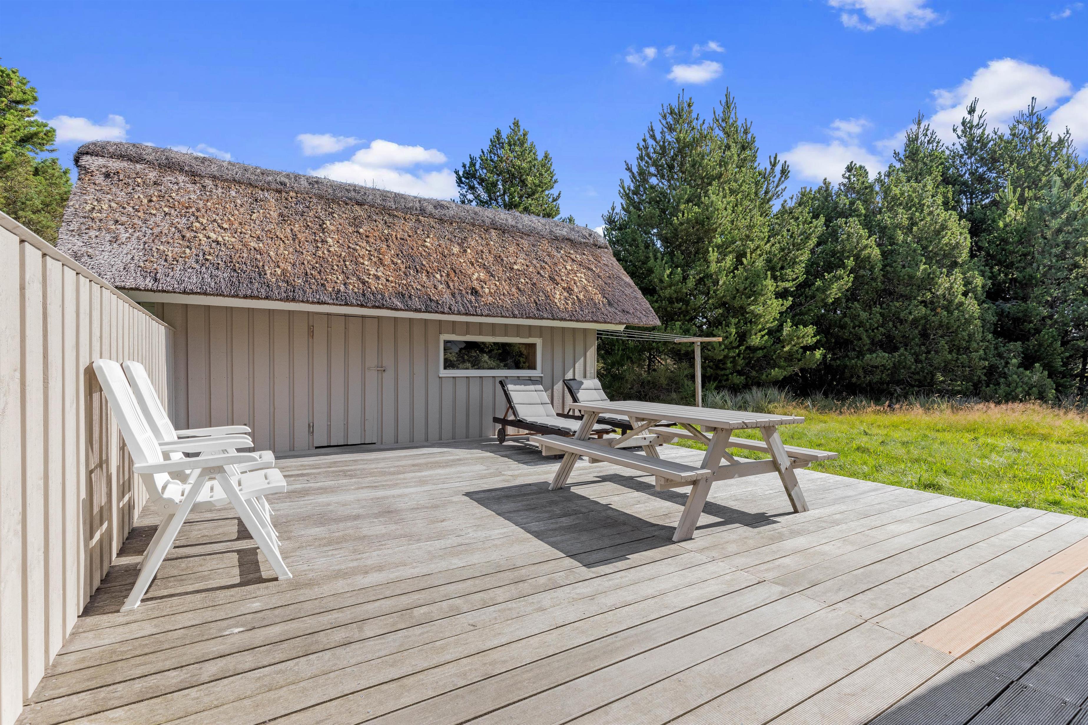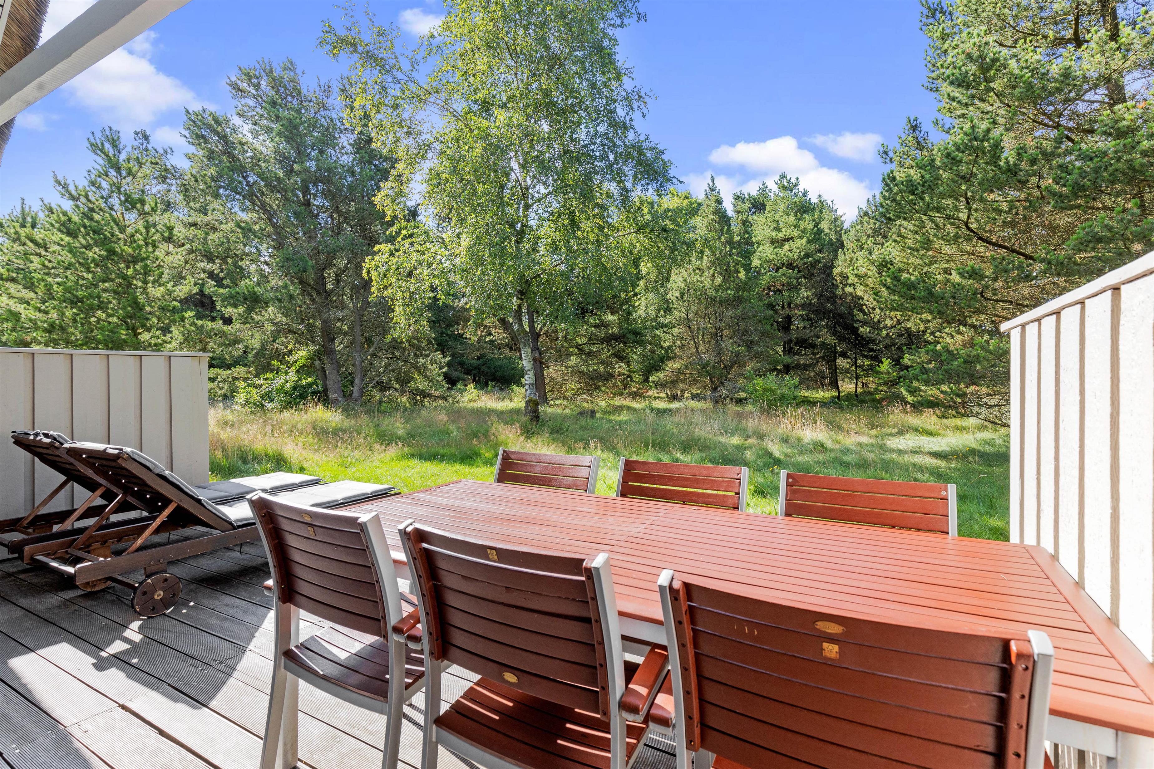 Sommerhuset på Sandtoftevej 31 befinder sig på en ugenert grund langt væk fra forstyrrelser og larm, så I vil kunne nyde jeres ferie i ro og mag. Huset har hele 2 terrasser, hvor den ene er delvist overdækket, og I kan også rykke ind i skyggen, når I vil have en pause fra solen. Terrasserne er selvfølgelig udstyret med diverse havemøbler, liggestole og en grill.