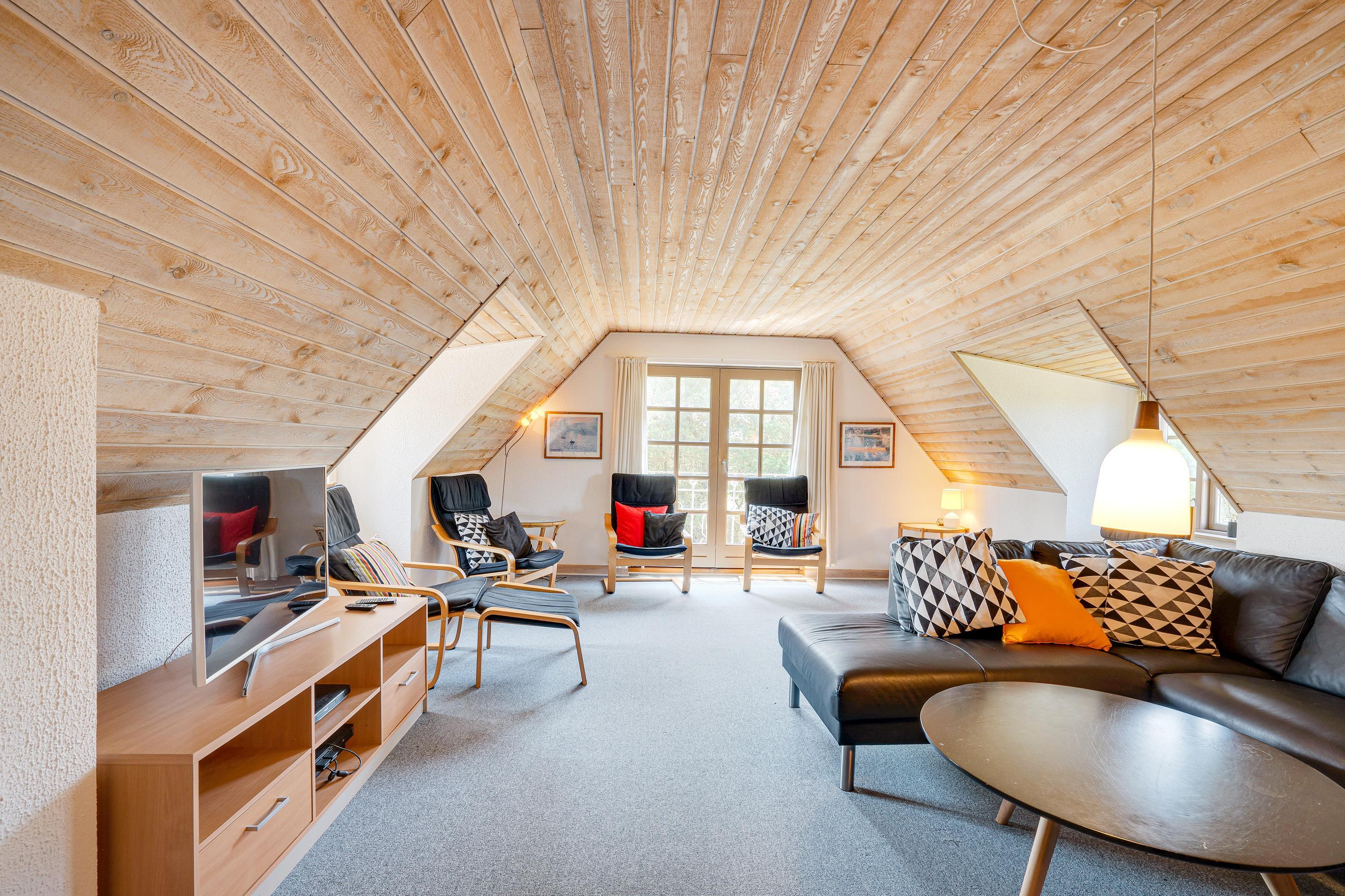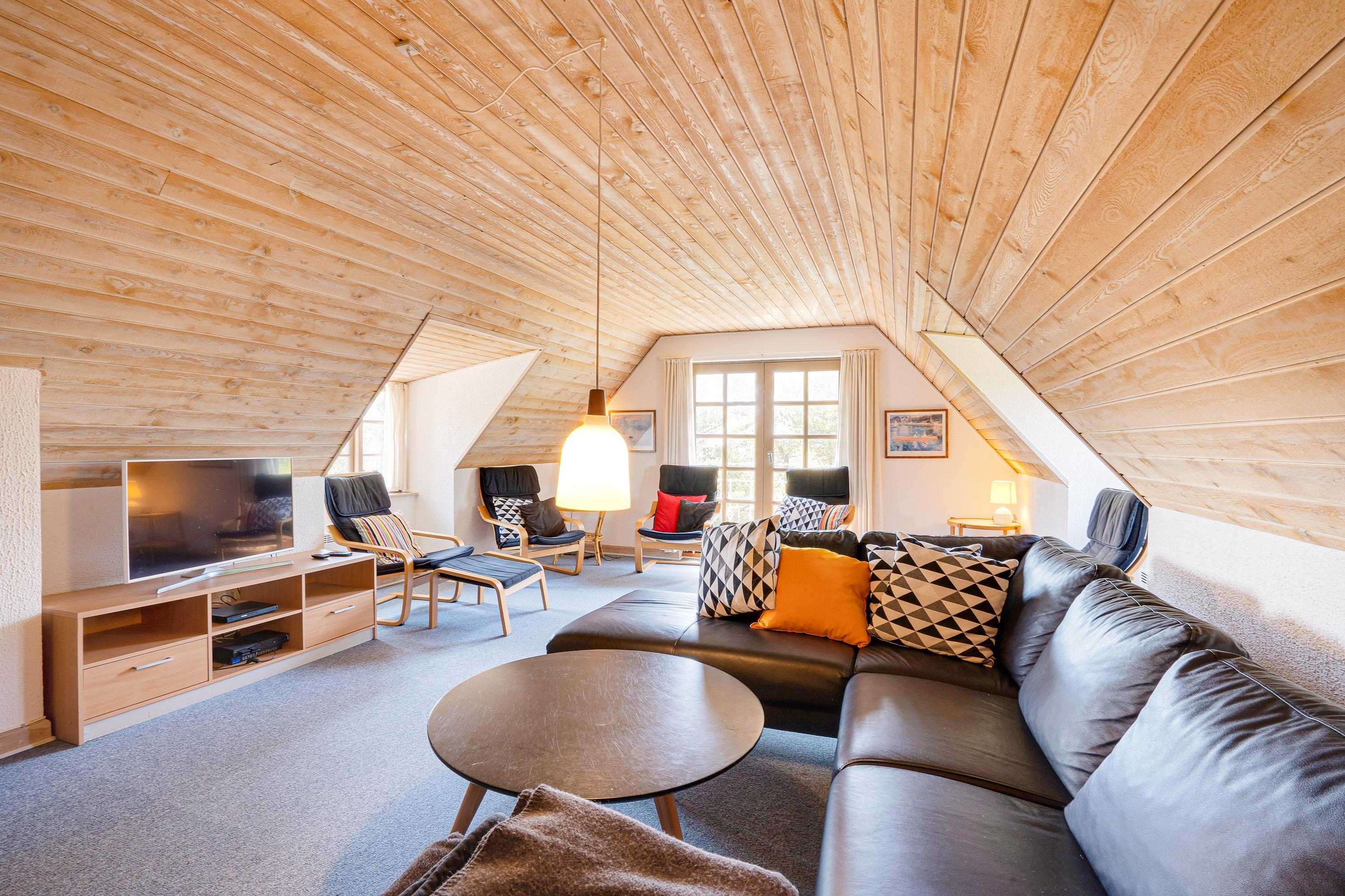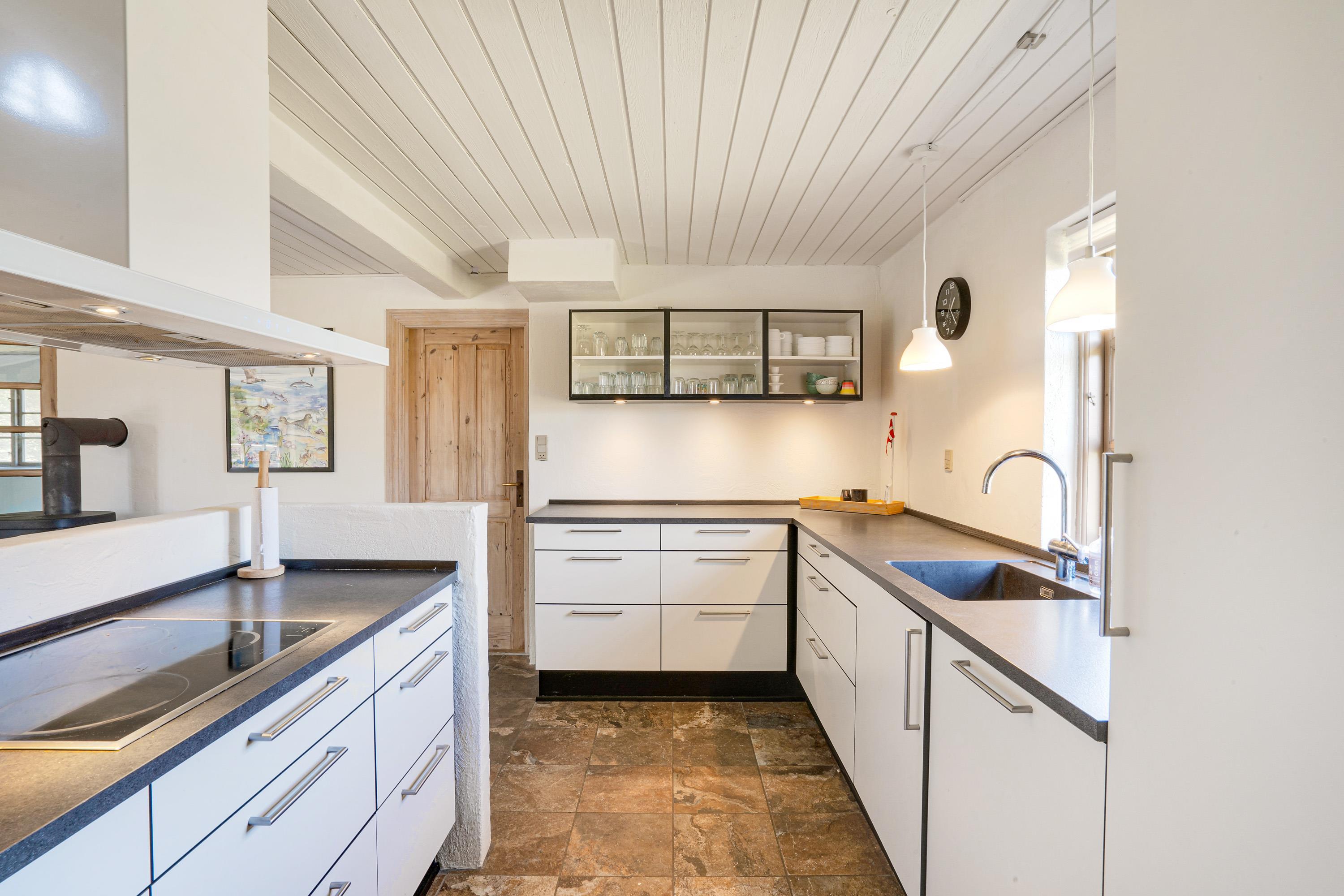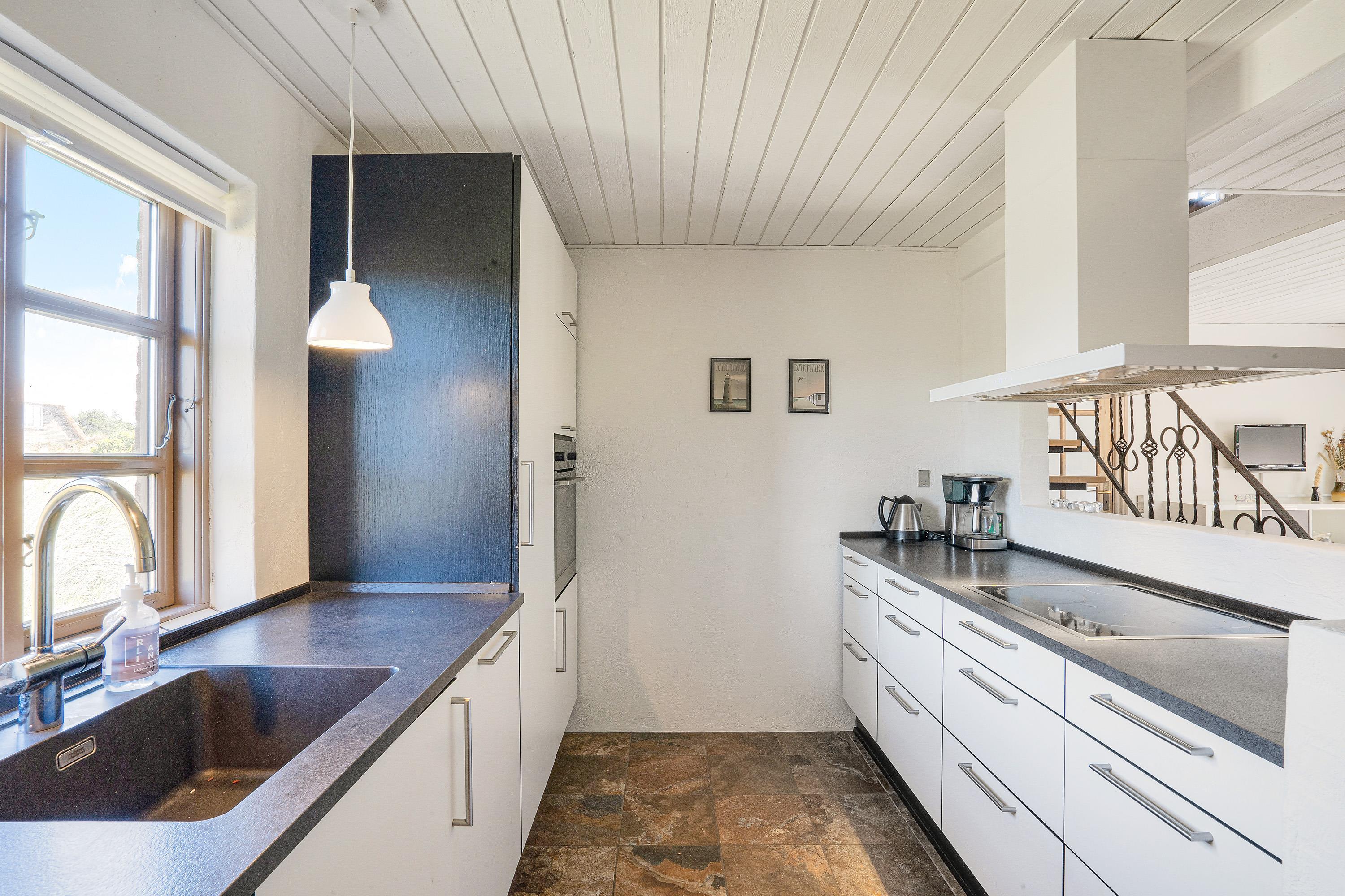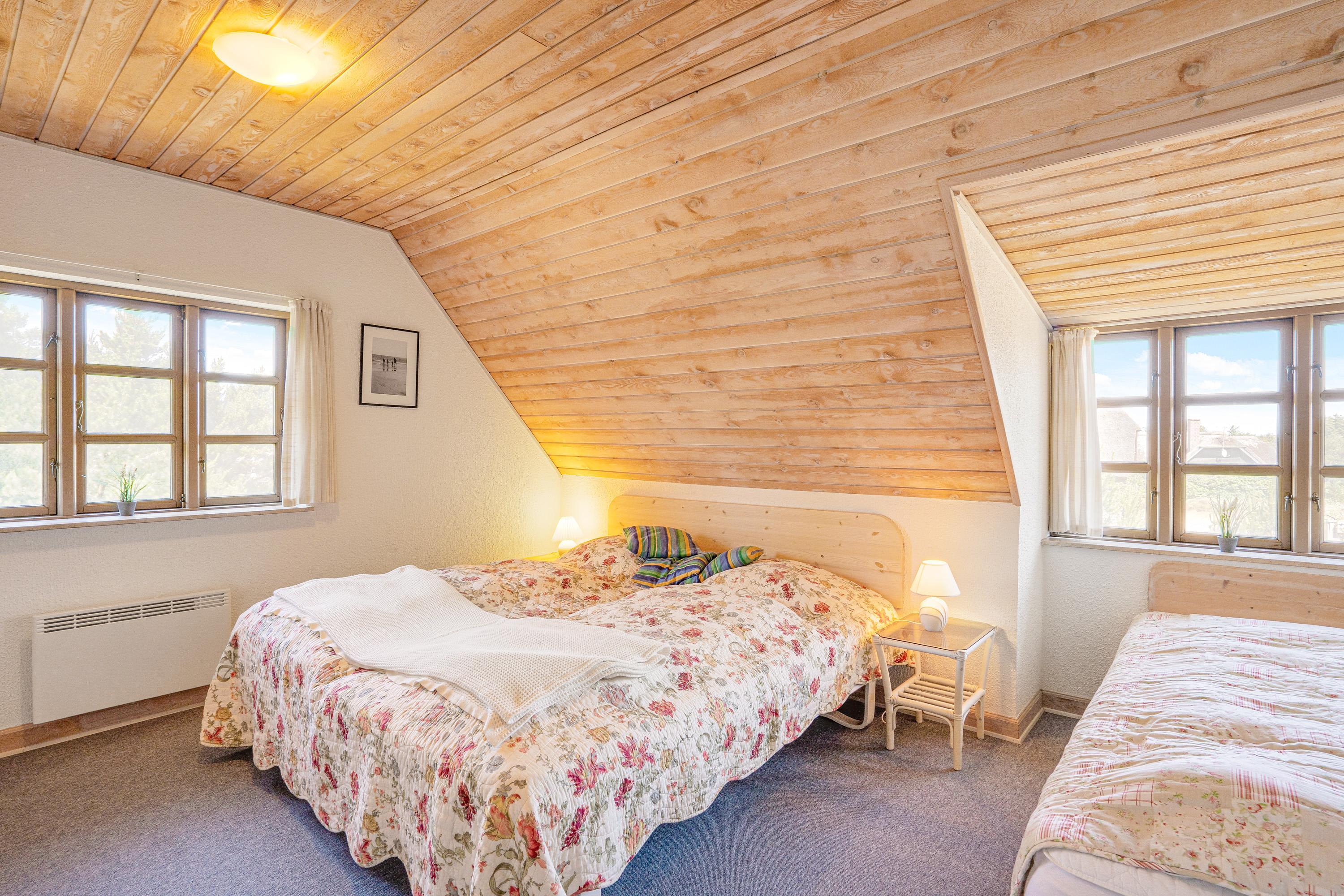 Sommerhuset er indrettet i 2 plan, og både i stueetagen og på førstesalen er der lagt op til mange hyggelige feriestunder. I stueetagen kan I samles i køkkenet til madlavning og omkring spisebordet til skønne måltider. Her sørger brændeovnen for at fuldende den hyggelige feriestemning. På førstesalen er der en opholdsstue, hvor I kan sætte jer til rette i sofaen til en god film.