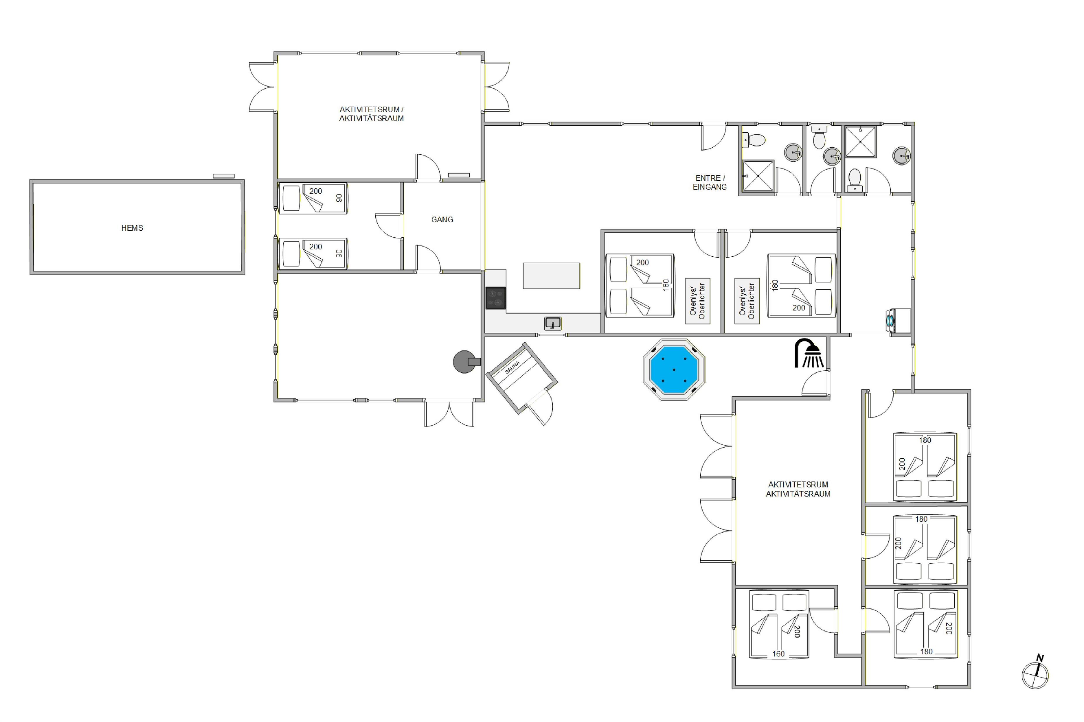 I det 313 kvadratmeter store sommerhus er der god plads til alle feriegæster. Om aftenen, når I er ved at være løbet tør for energi, er der hele 7 soveværelser, der alle er indrettet med dobbeltsenge, som I kan søge mod, så I kan få samlet ny energi.