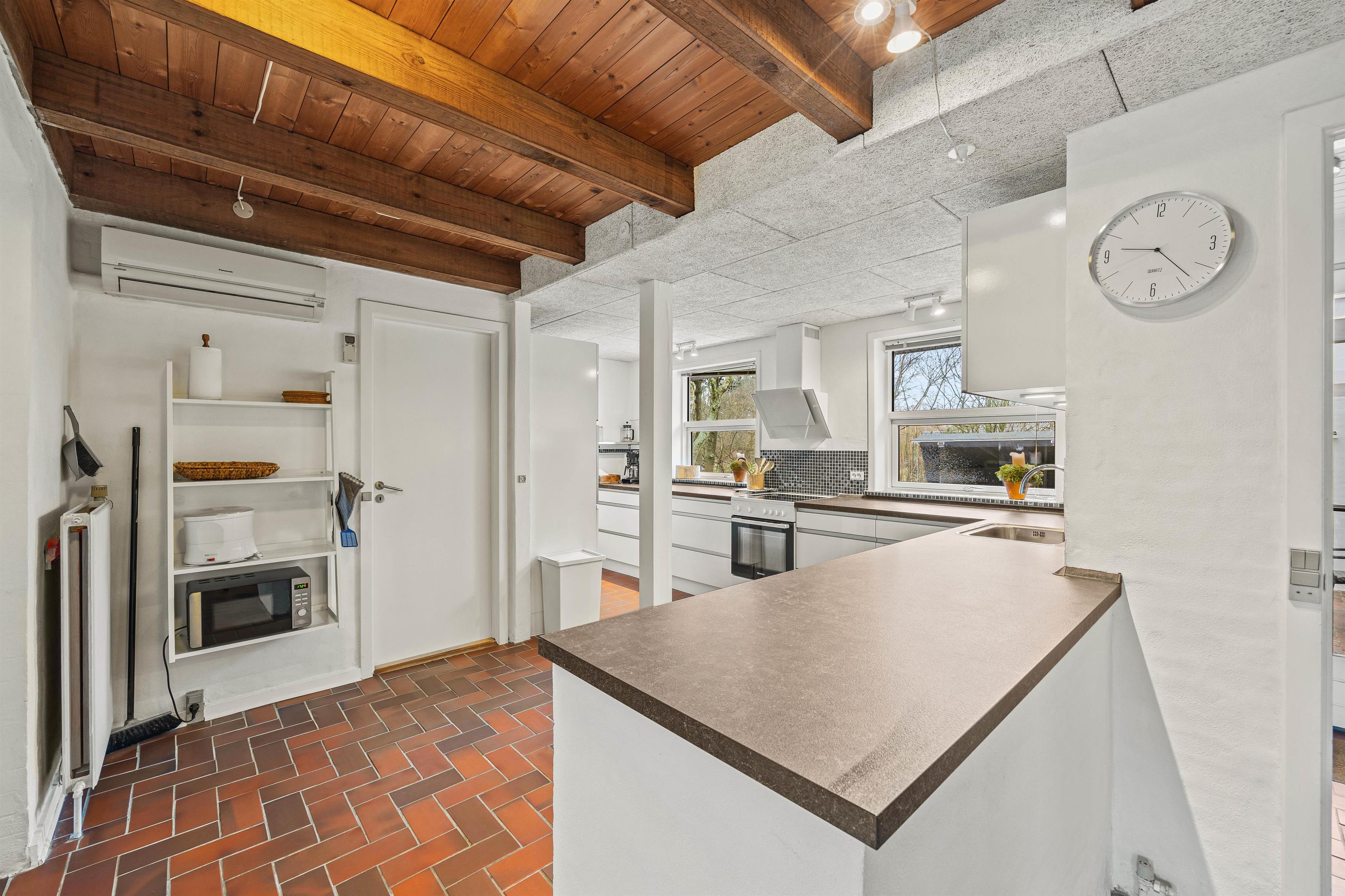 Derudover er det store åbne opholdsrum et helt fantastisk sted, hvor I vil komme til at tilbringe mange timer. Køkken, spiseplads og stue er i åben forbindelse, så I kan være sammen, selvom I har gang i hvert jeres. I det veludstyrede køkken med bl.a. 2 ovne kan I lave lækker mad, som I senere skal nyde omkring bordet. Efter maden klarer opvaskemaskinen oprydningen, så tiden kan bruges på hygge og samvær. Nyd aftenerne sammen med en quiz eller en god film, mens ilden knitrer i pejsen. På de kolde dage kan I også gøre brug af den energibesparende varmepumpe. Der er gulvvarme under klinkerne i hele underetagen undtagen i soveværelserne.