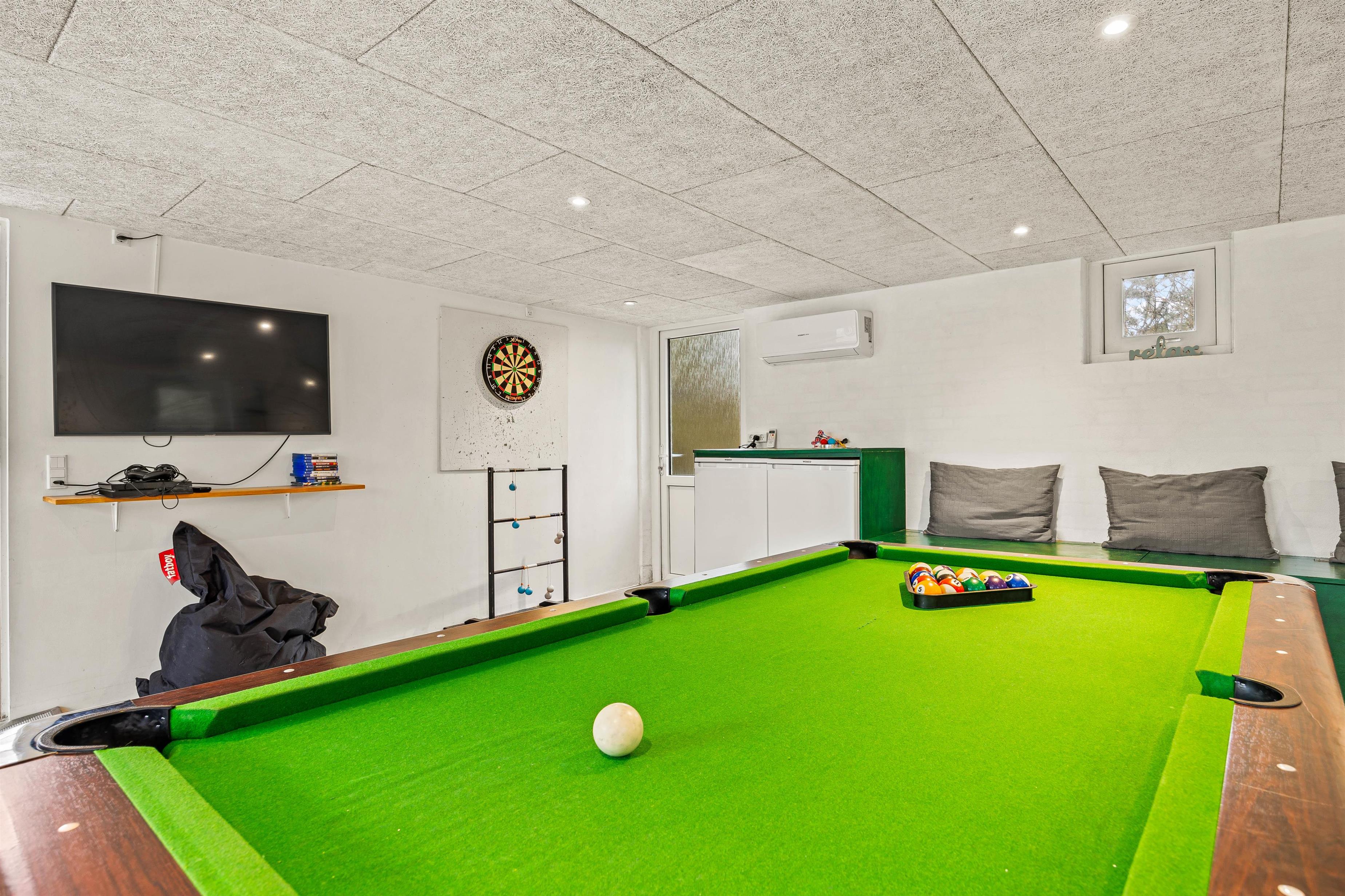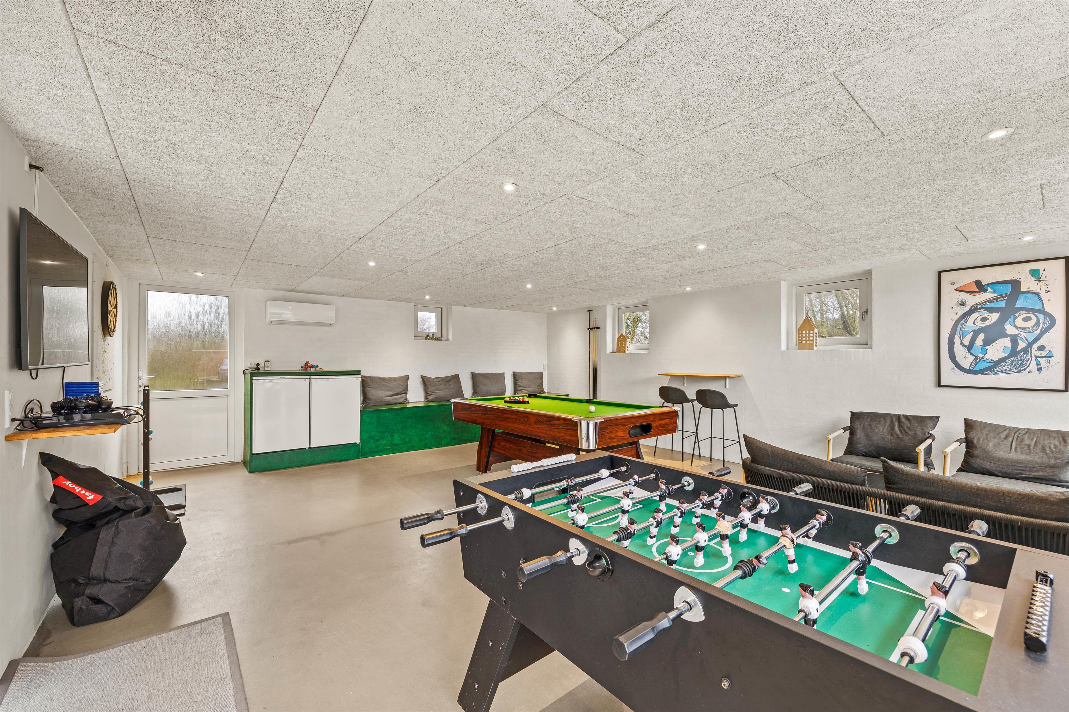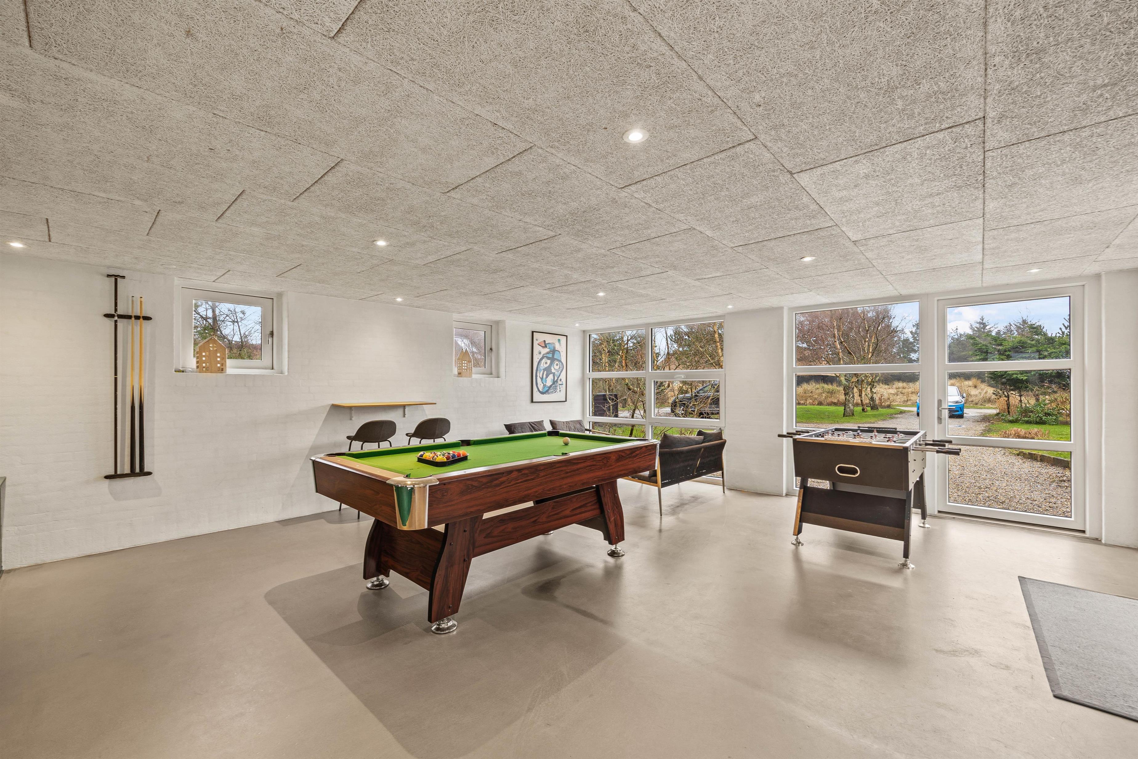 Et stort og rummeligt feriehus i to plan, hvor I straks mærker varmen og de hjemlige fornemmelser. Her er kræset omkring hyggen og takket være udestuen og de store vinduespartier, strømmer lyset ind. Feriehuset er fyldt med skønne kroge såsom udestuen, der forlænger sommerhalvåret. Aktivitetsrummet er udstyret med alt, hjertet begærer, for her findes alt fra poolbord, spillekonsol, dart og bordfodbold – så det er bare med at finde feriens mester.