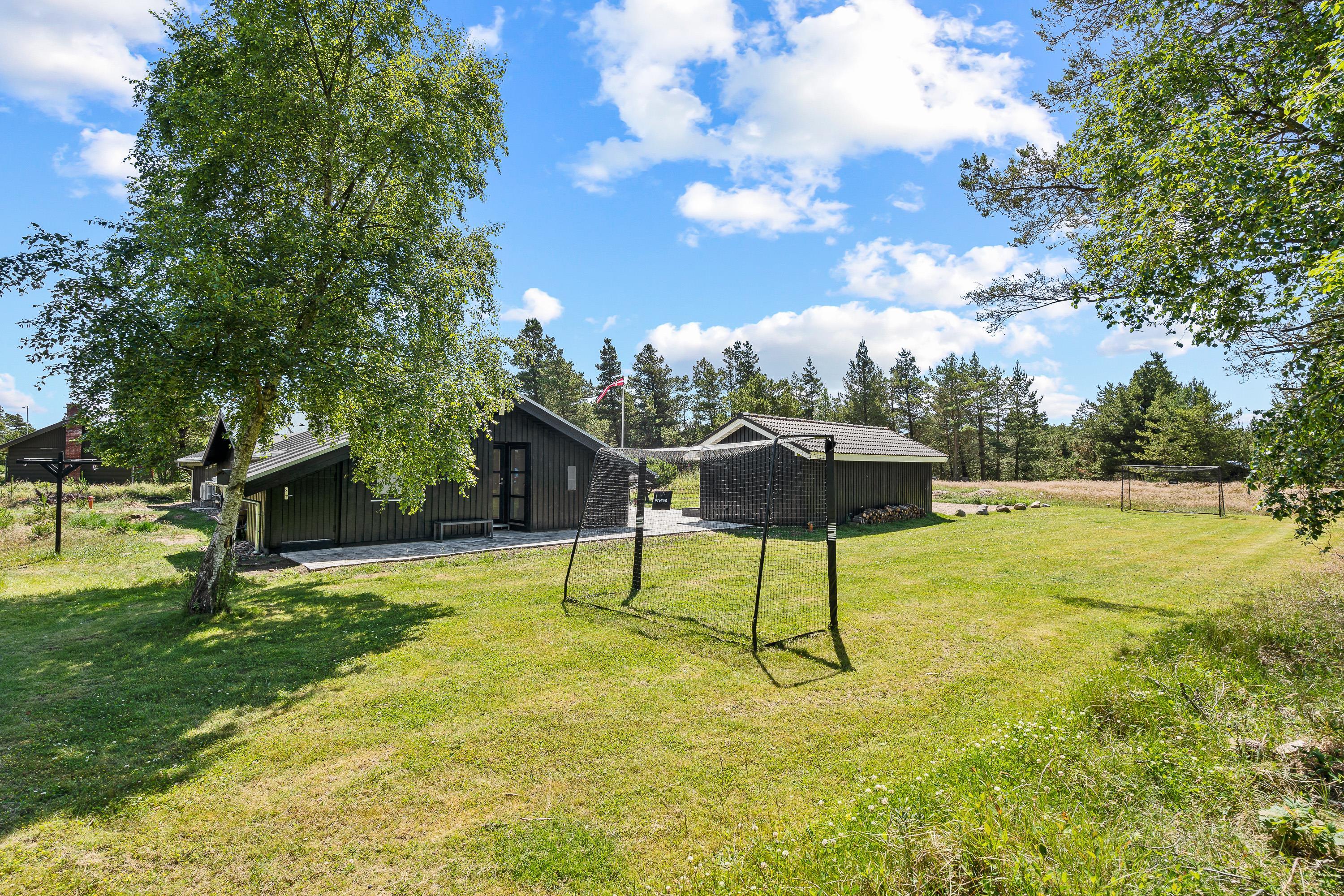 På udeområdet er der tænkt på feriens yngste gæster, da der både er et gyngestativ og en sandkasse, som de kan få glæde af på ferien. Desuden er der også fodboldmål, hvor I kan spille en fodboldkamp eller to i løbet af ferien – hvem udgør mon feriens bedste fodboldhold?