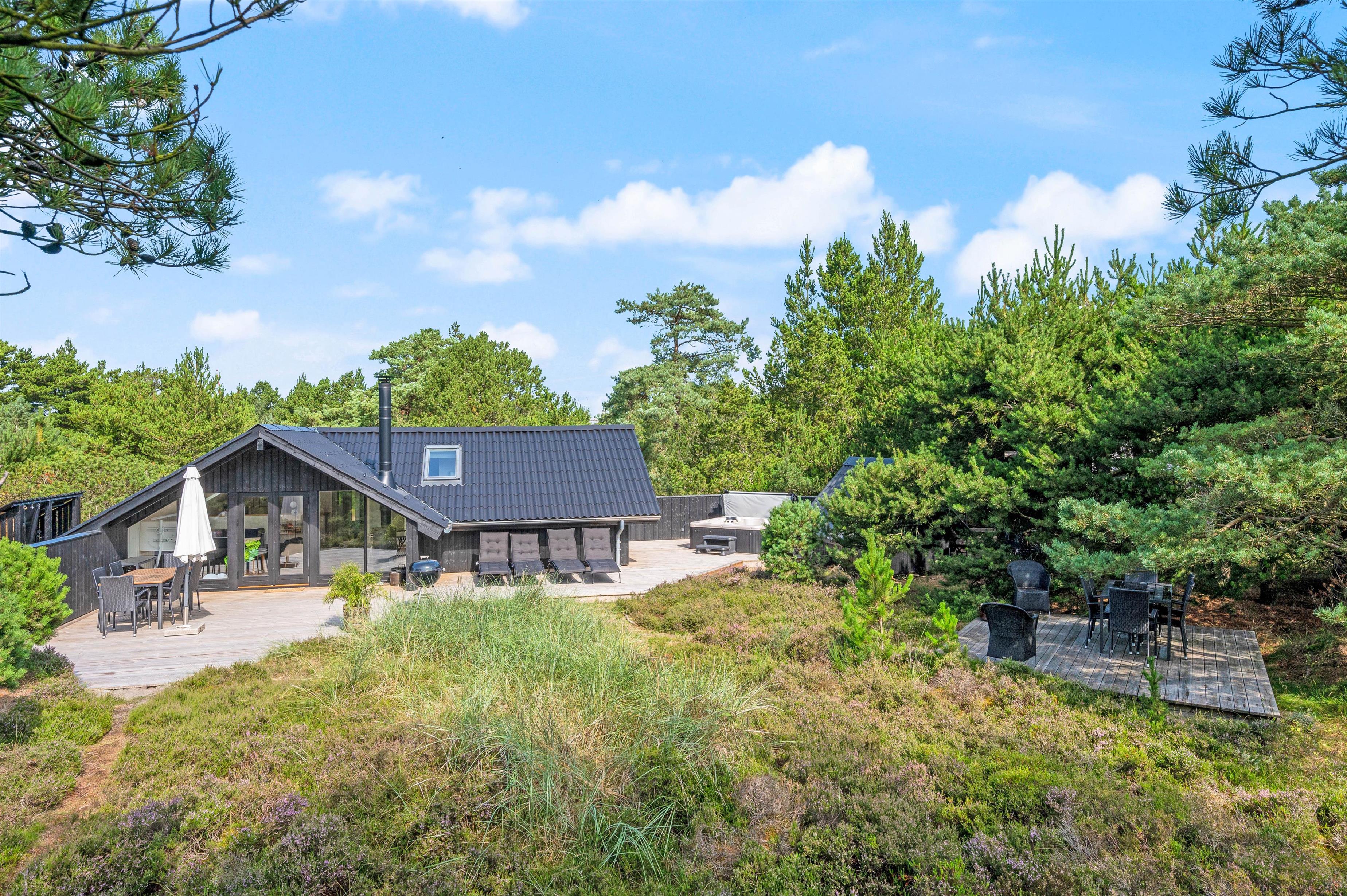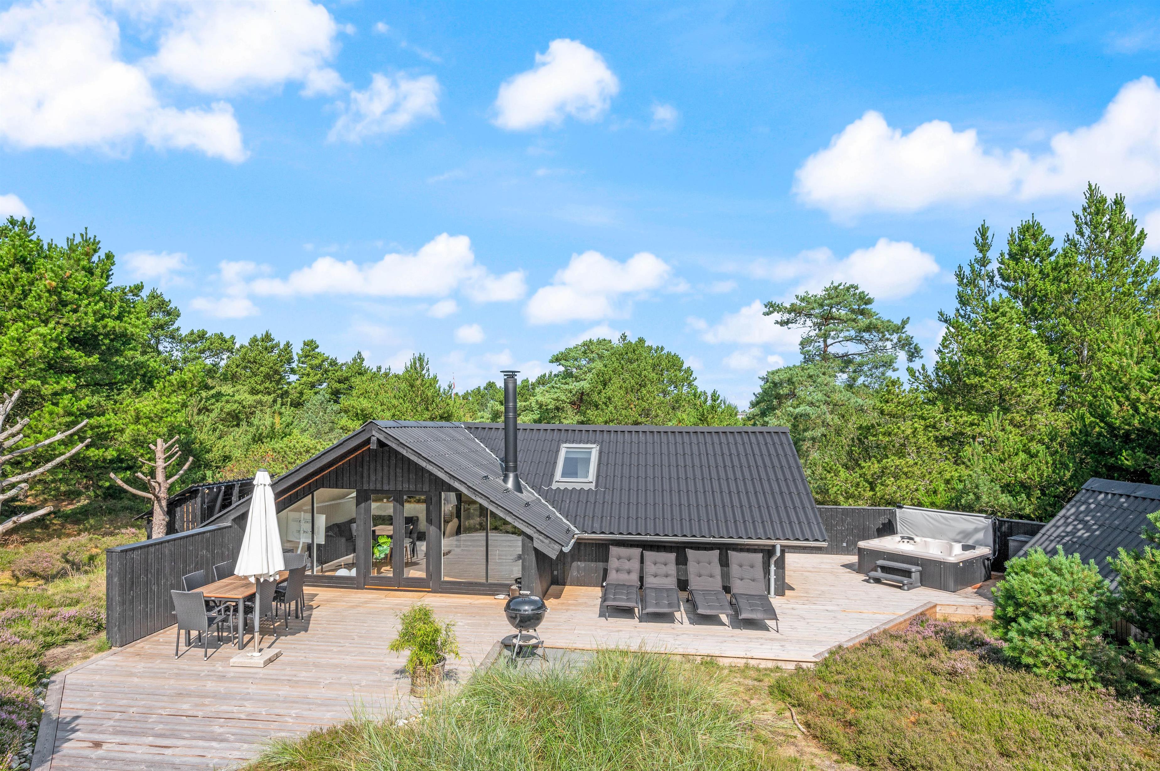 Også udendørs er dette sommerhus en skøn oplevelse. På sommerhusets udeområde venter jer nemlig en velgørende udespa, hvor I kan slappe af i det boblende vand under åben himmel – I bør bestemt prøve det under stjernehimmelen efter mørkets frembrud. Derudover er der en udebruser, som kan anvendes i perioden 1. april til 31. oktober.