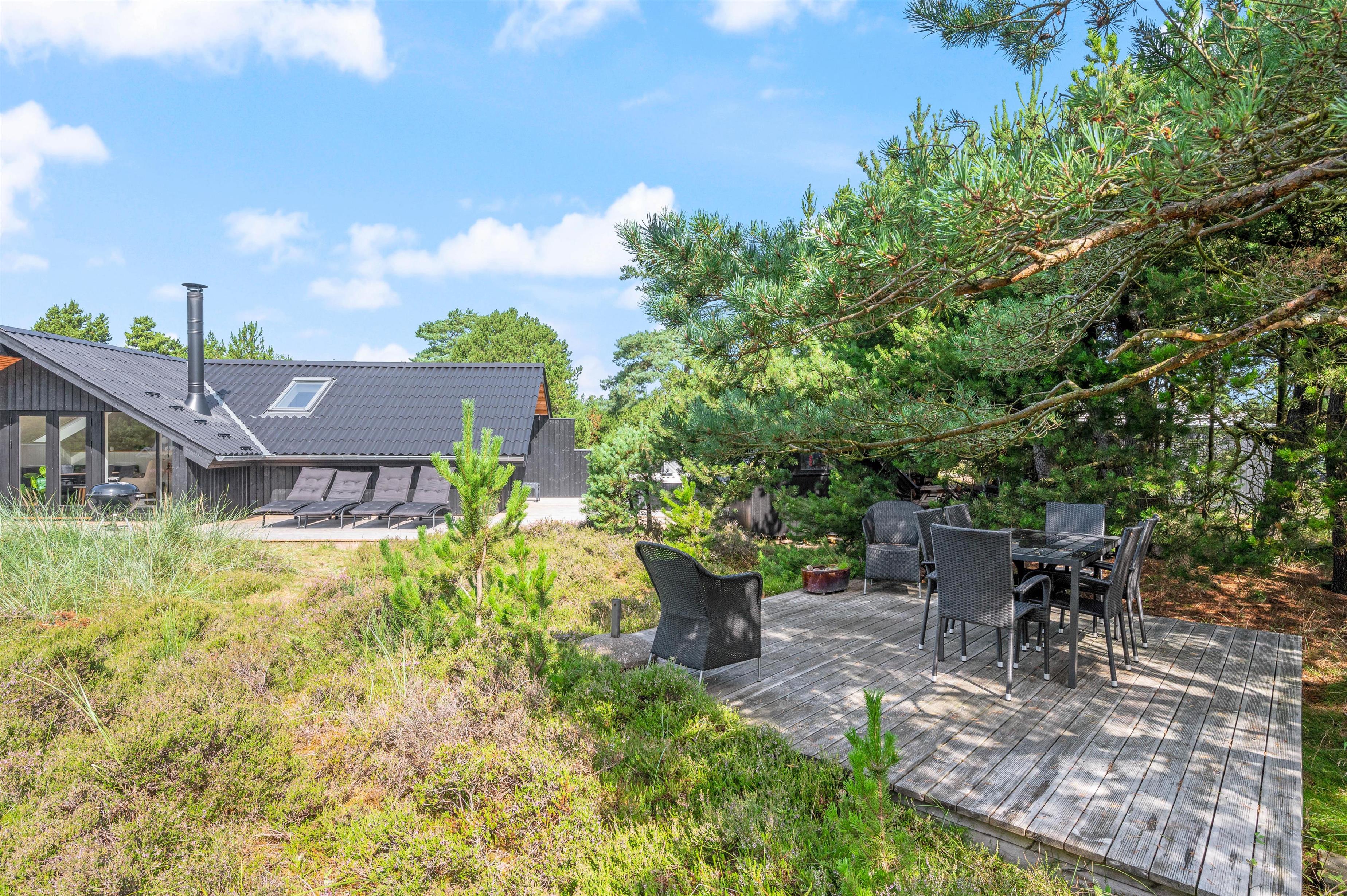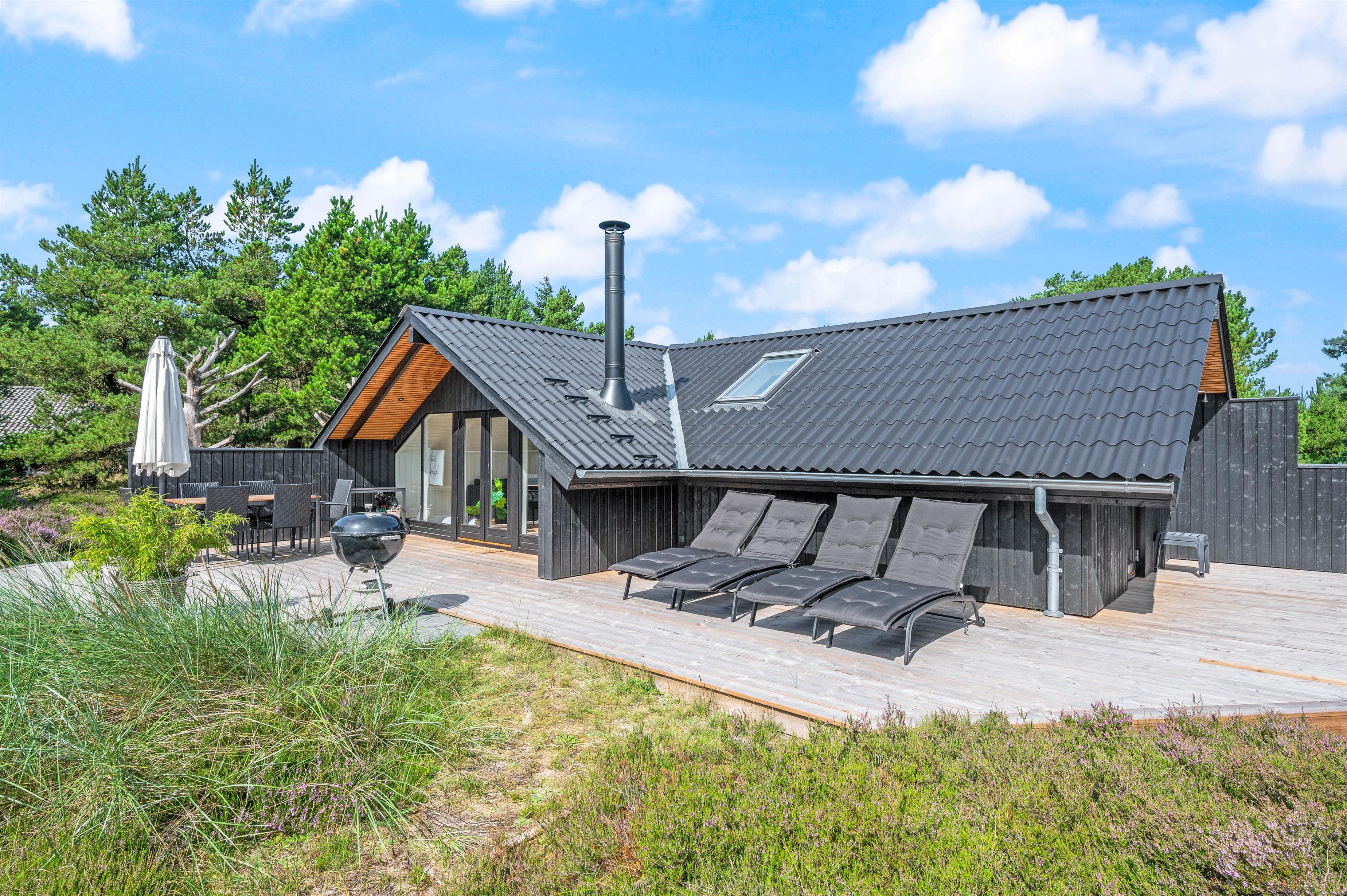 I kan også slappe af på terrassen, hvor I har havemøbler og liggestole til rådighed, som I kan sætte jer godt til rette i. Om aftenen kan I tænde op i grillen, tilberede lækre bøffer og nyde en dejlig aften på terrassen.