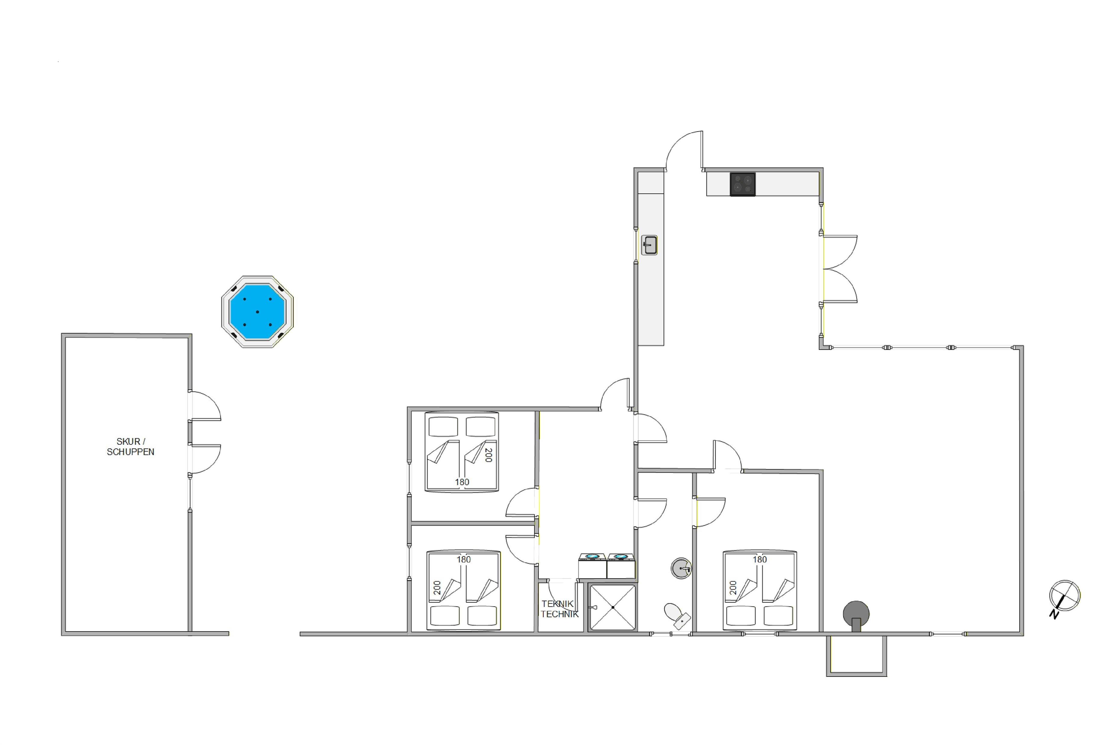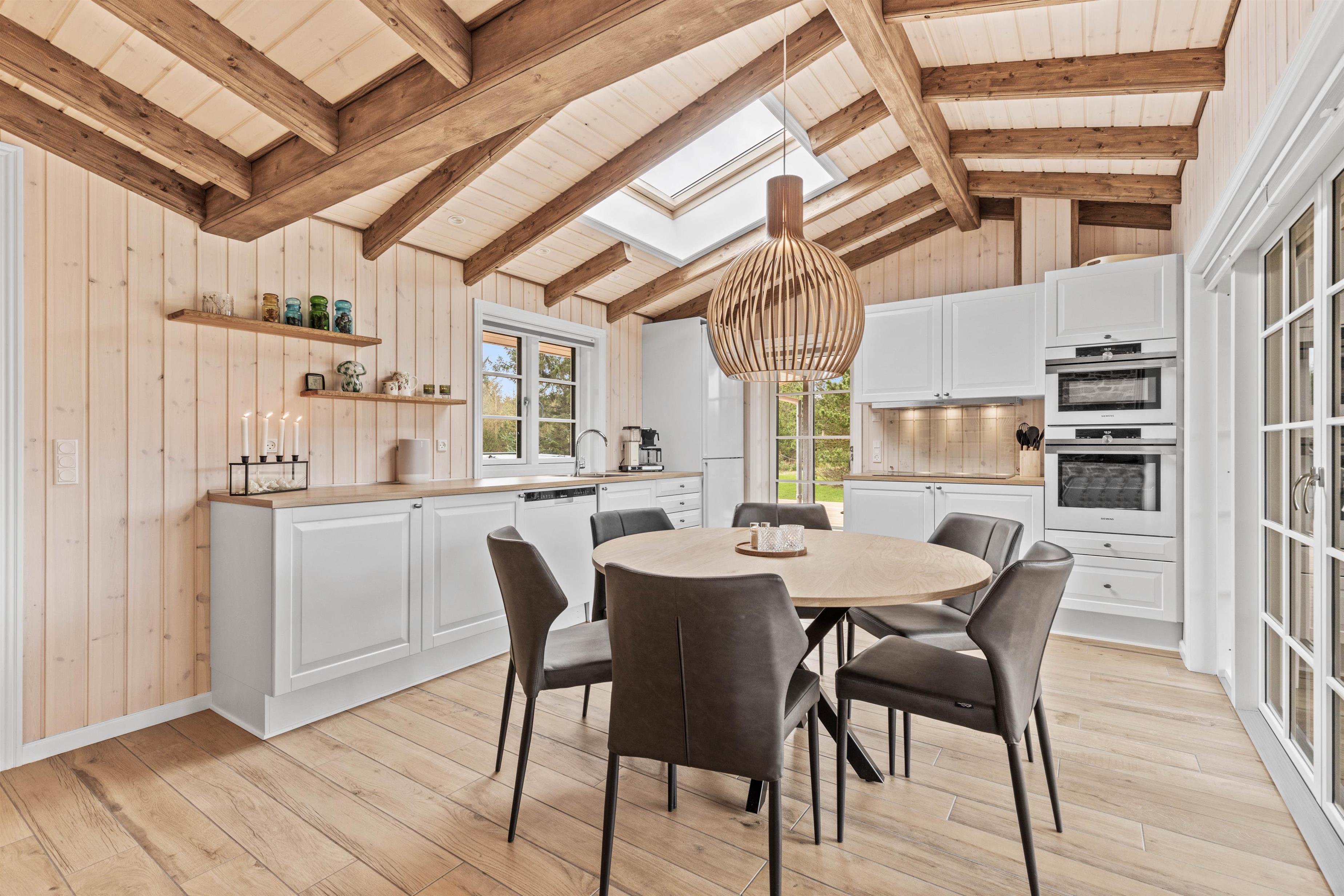 Moderne faciliteter som opvaskemaskine, vaskemaskine, tørretumbler og energibesparende varmepumpe er også til rådighed for jer i dette sommerhus.