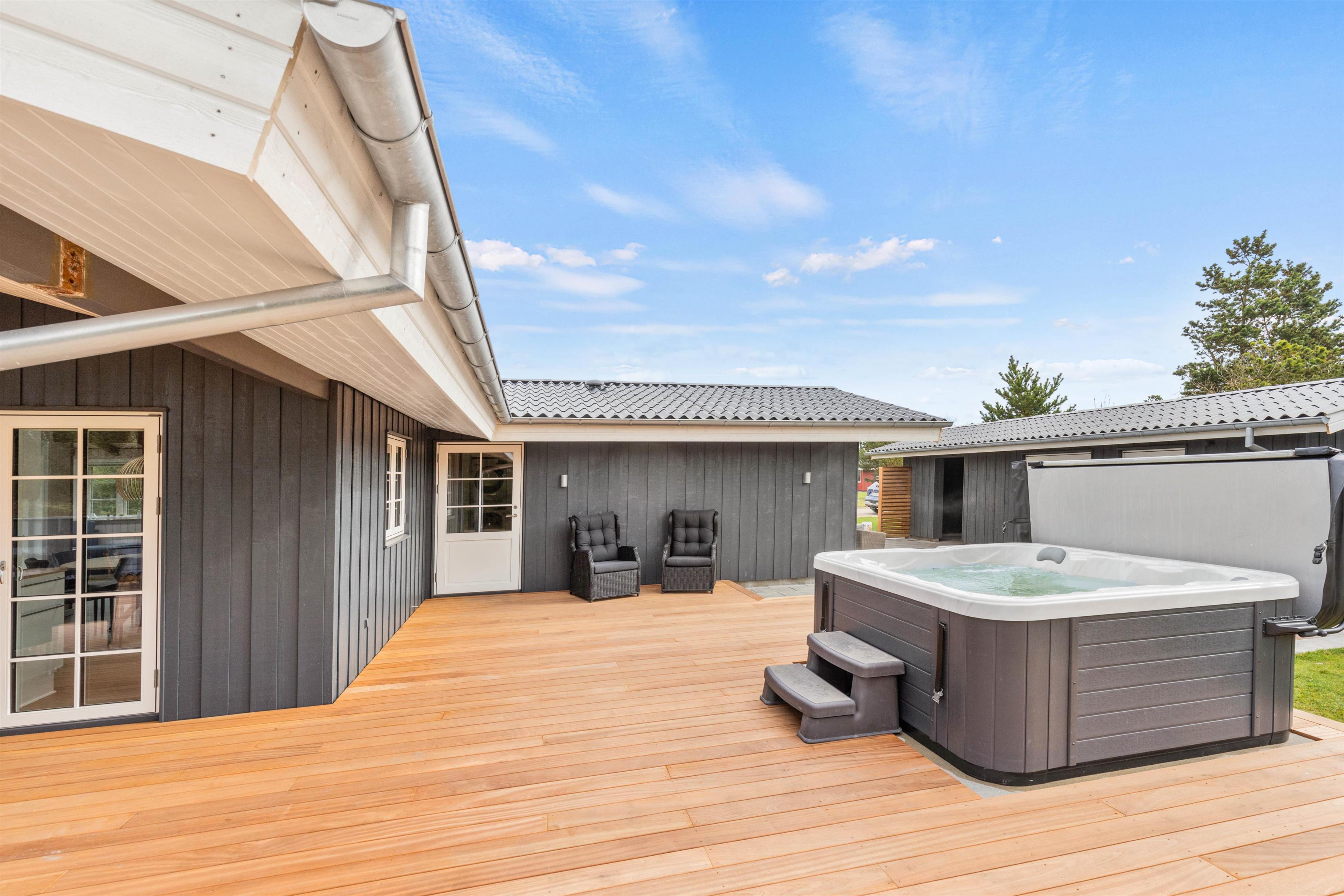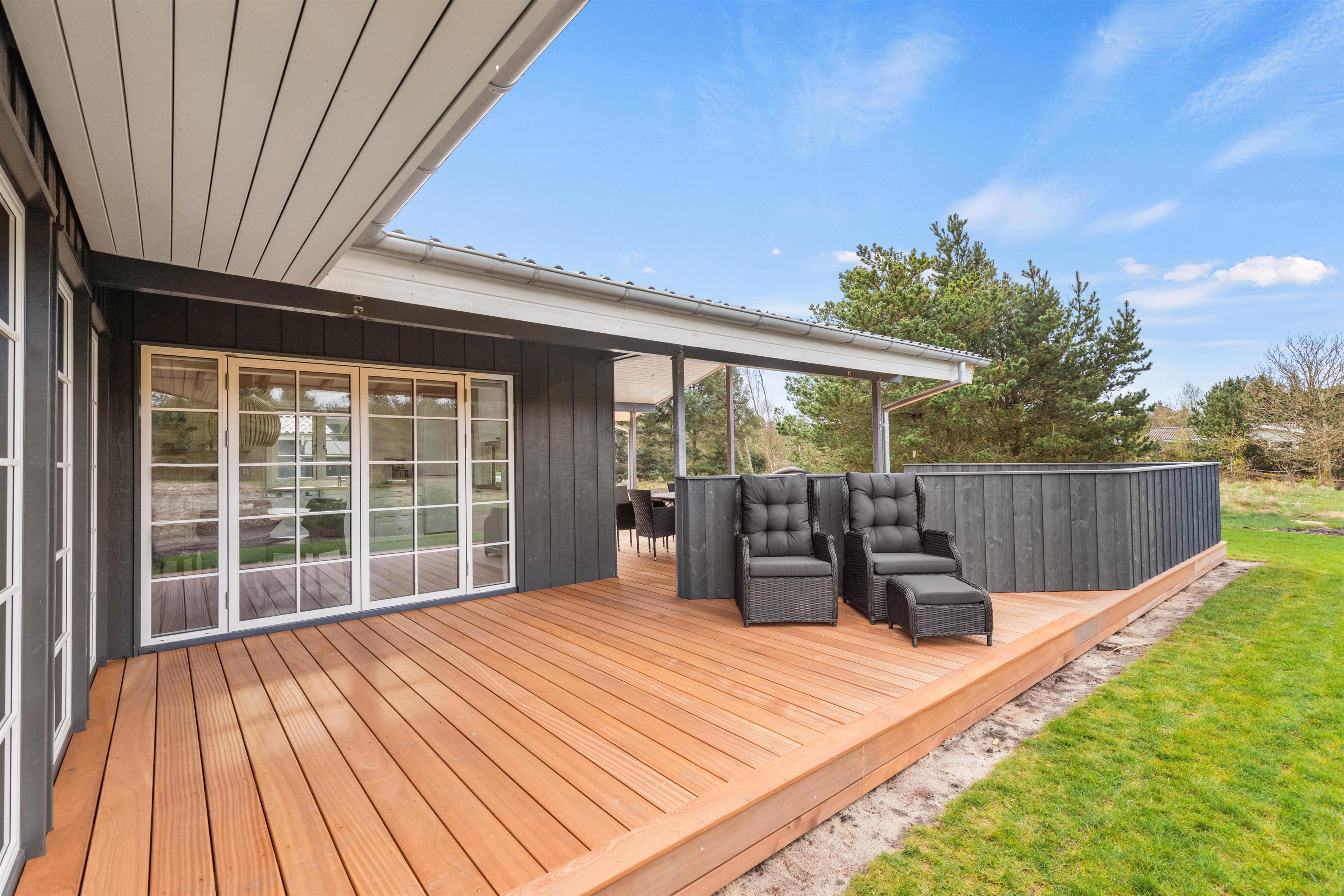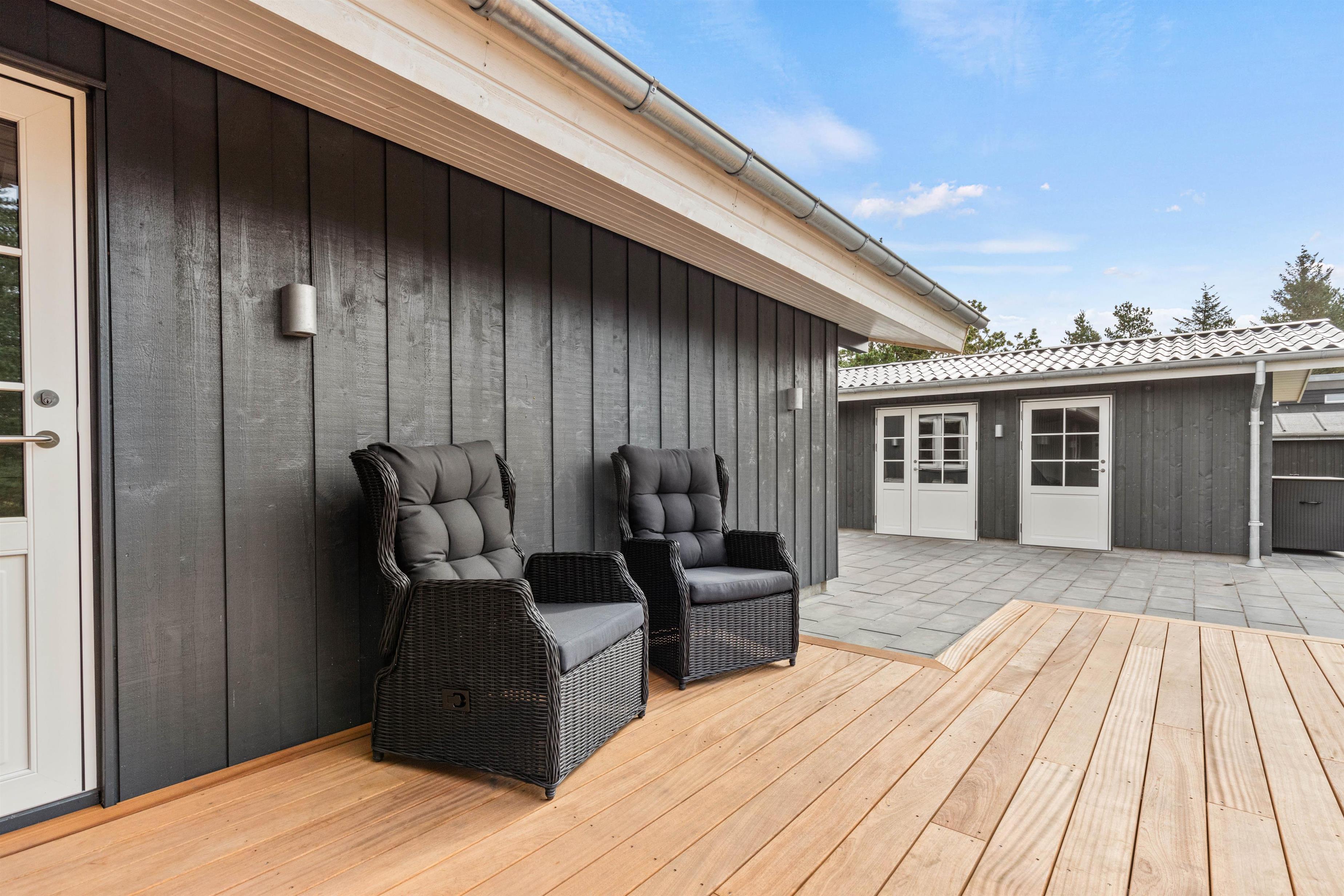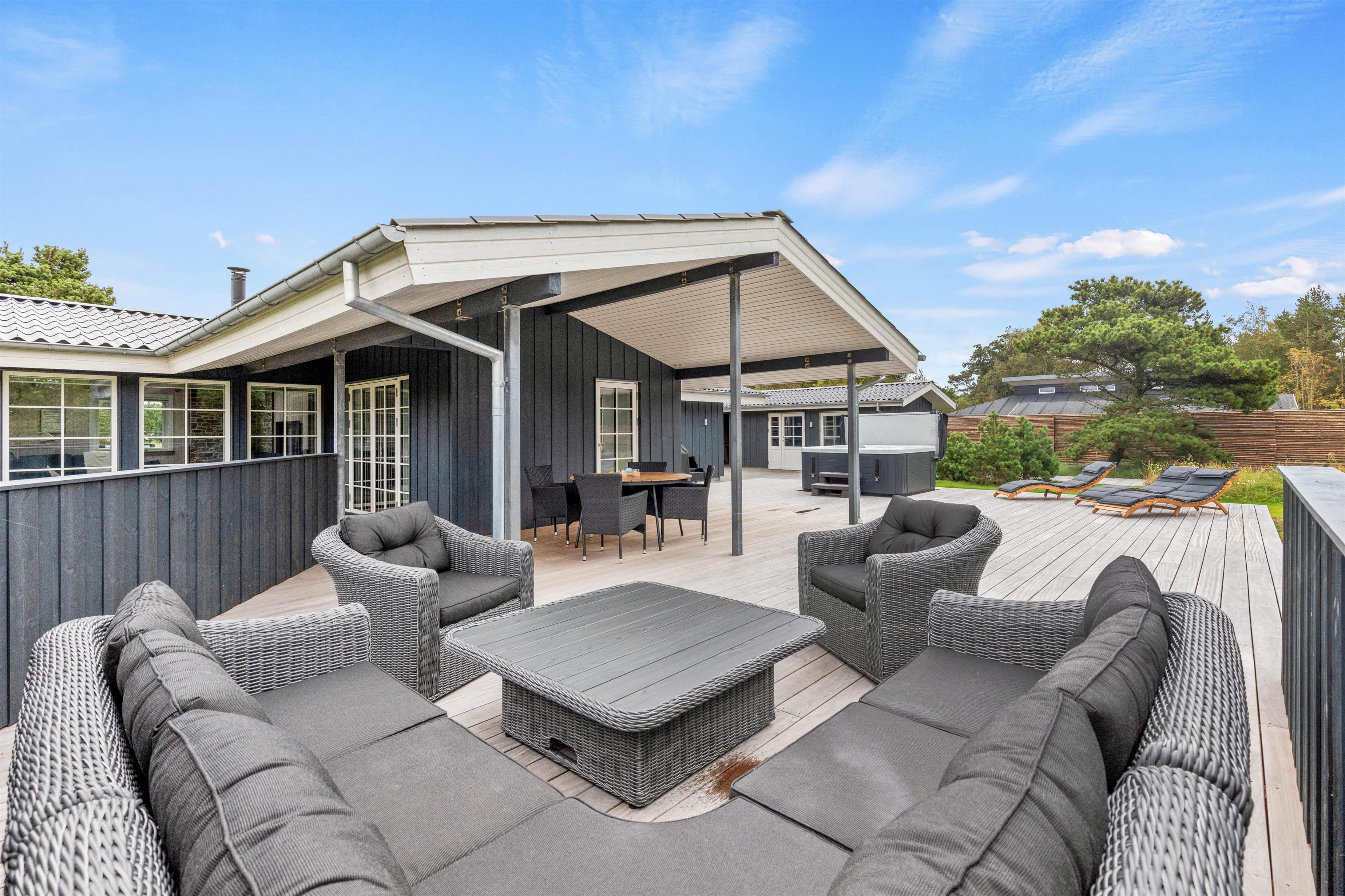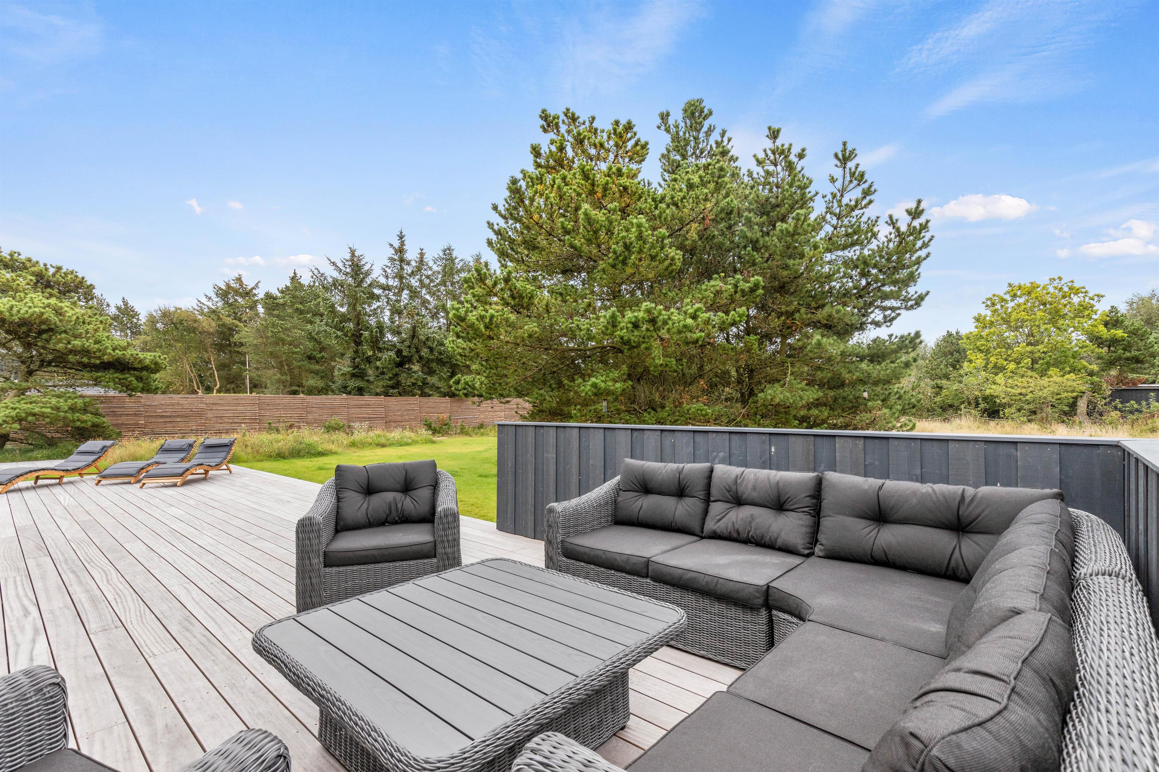 Nyd opholdet på terrassen i komfortable liggestole, eller udnyt det overdækkede område til at indtage morgenmaden udendørs. På den 2.500 kvadratmeter store naturgrund kan både børn og voksne brænde energi af med boldspil eller et vikingespil. Afslut dagen med at tænde op i grillen, og nyd et godt glas vin. Eller måske var det noget med en tur i udespaen også efter mørkets frembrud, så I kan nyde den smukke stjernehimmel over Blåvand, mens kroppen blødes op, og sjælen finder ro...?