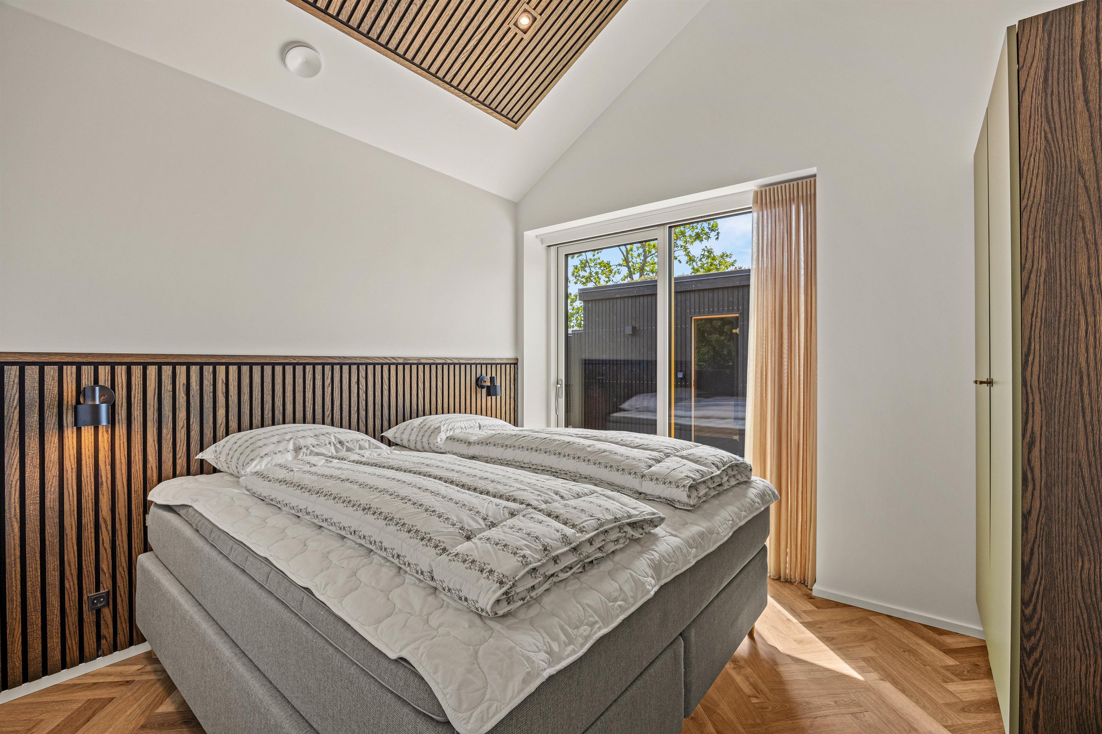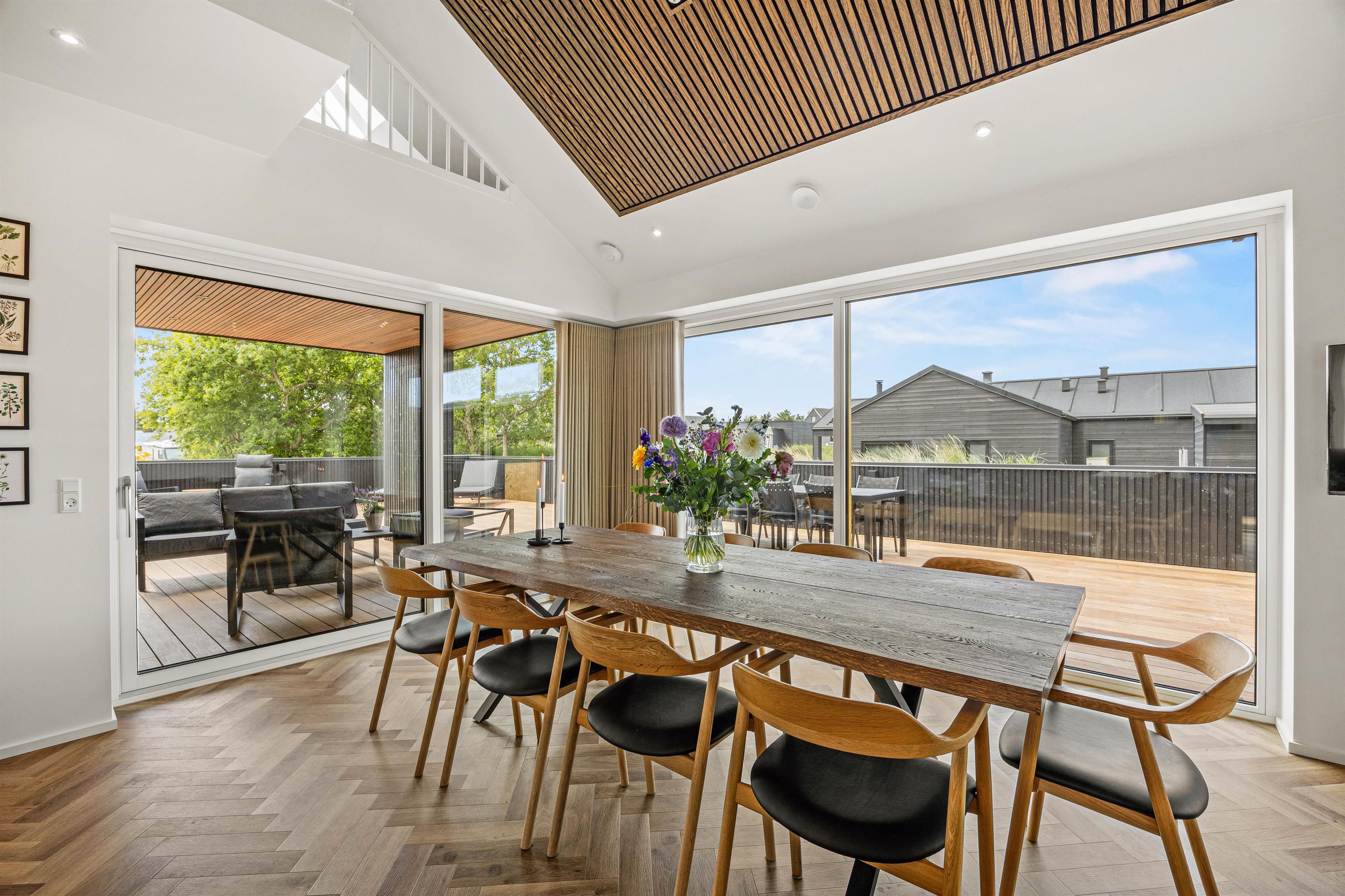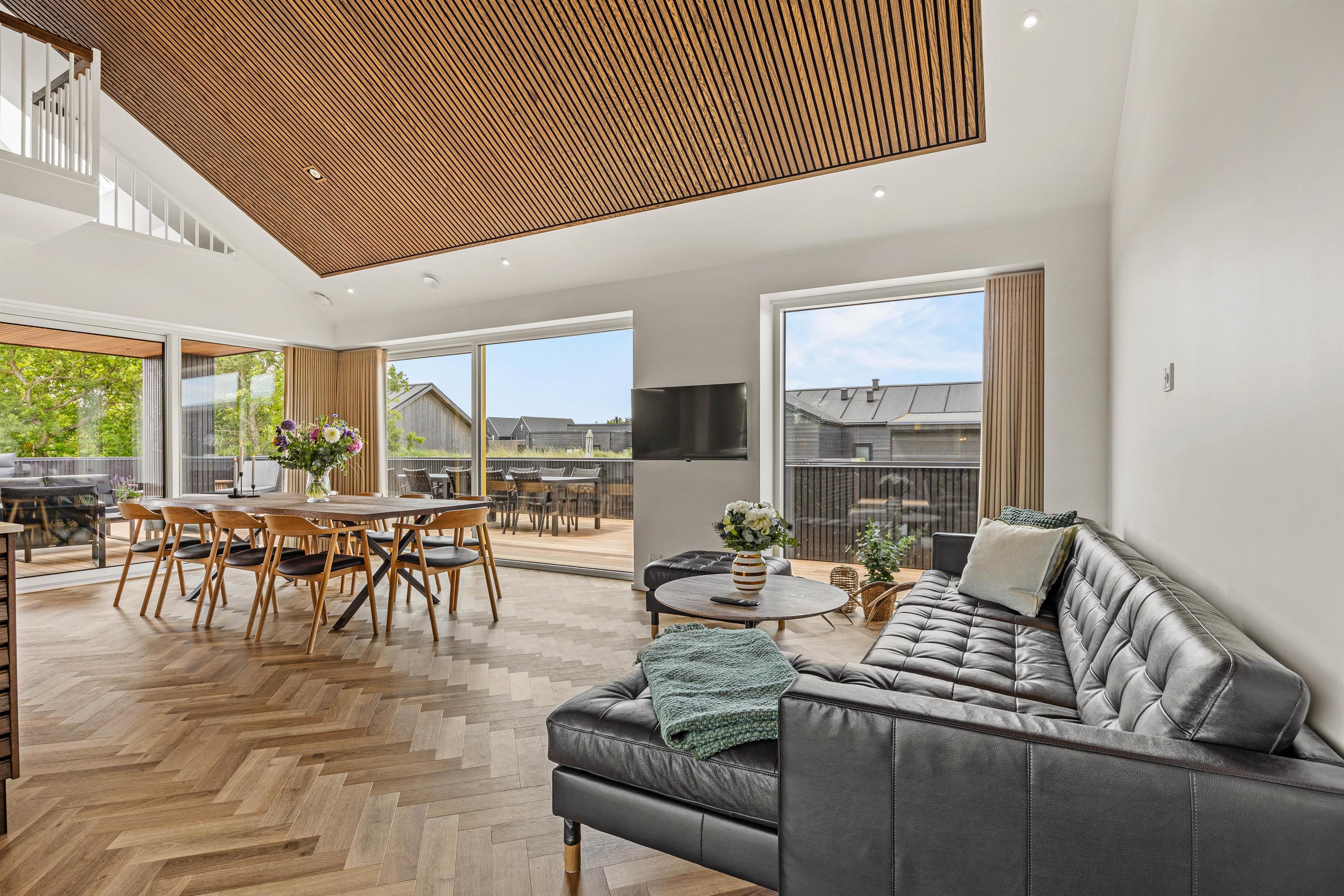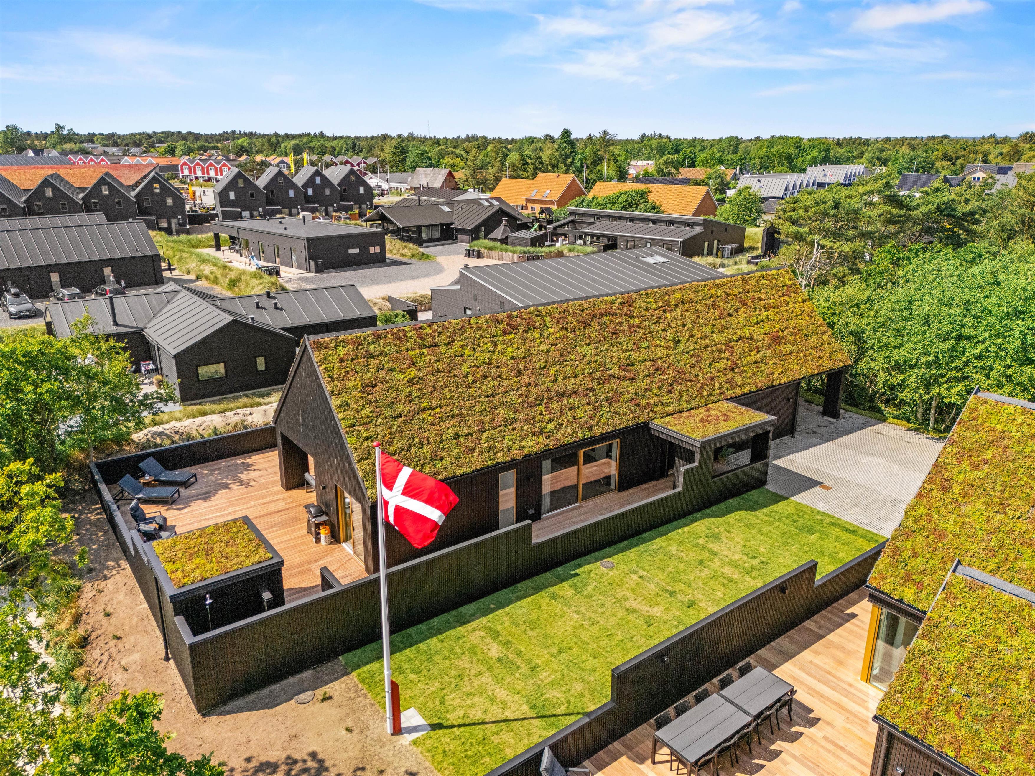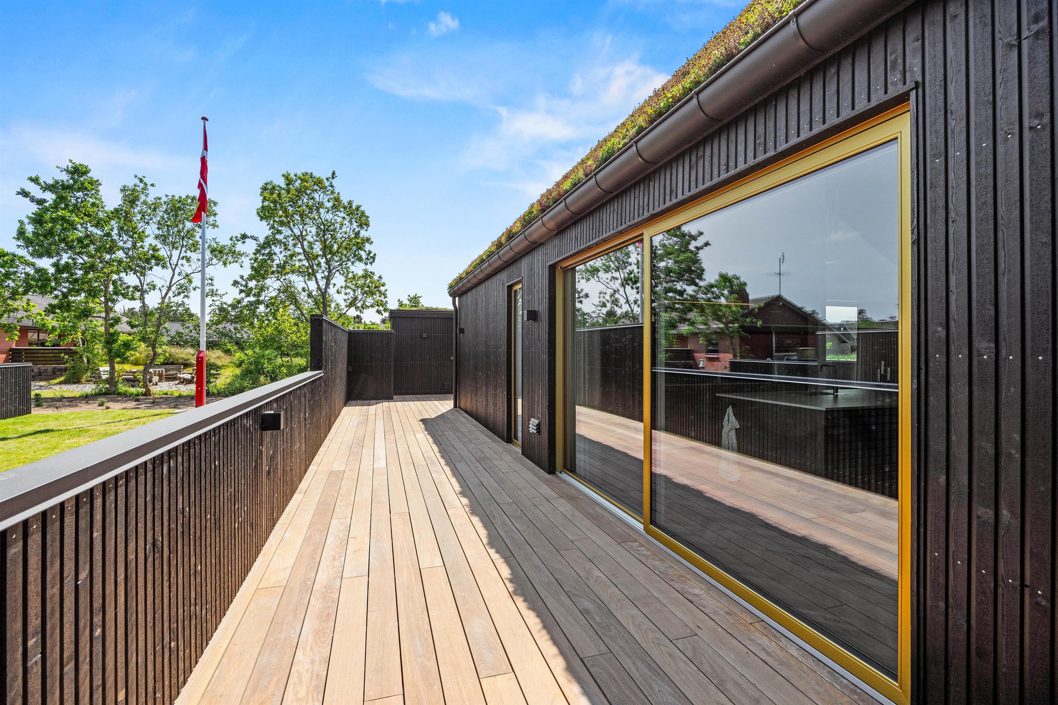 I får ikke kun et gennemført luksuriøst indre, men også et helt fantastisk udeområde med en stor, delvist overdækket terrasse, som danner rammerne om udendørs aktiviteter. Her kan I nyde morgenkaffen eller slappe af i solen efter en dag fyldt med aktiviteter. Havemøbler, liggestole og gasgrillen står klar til jer.