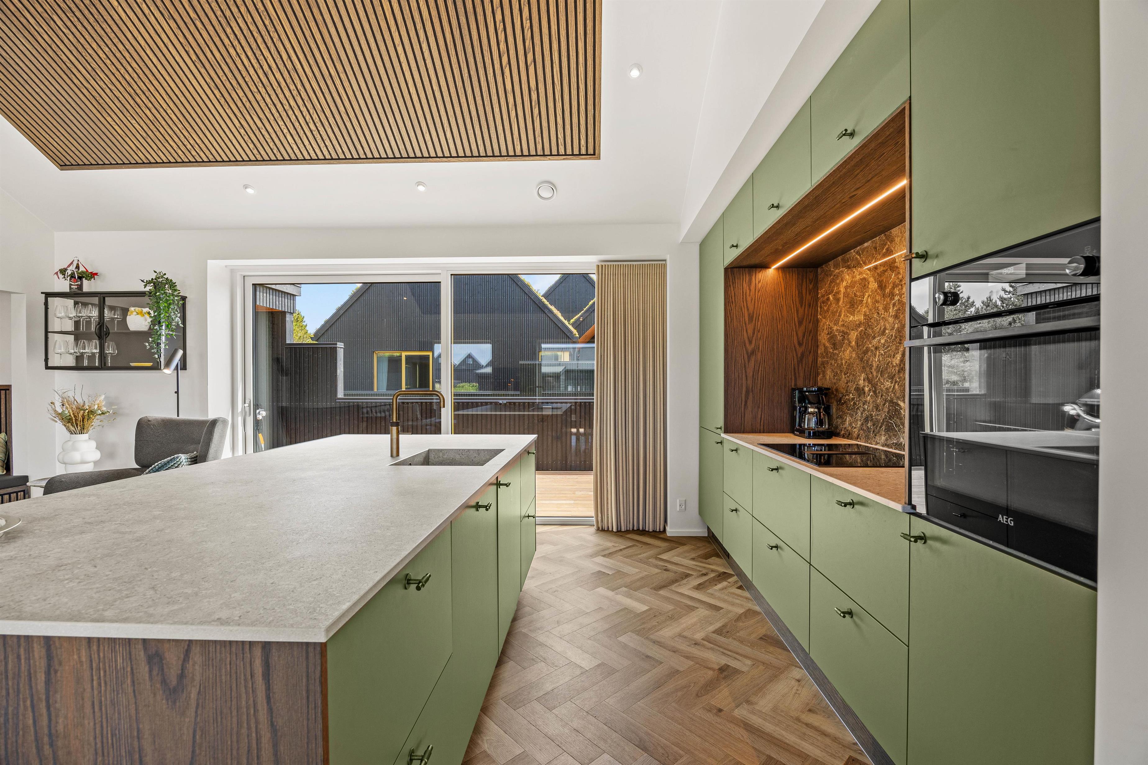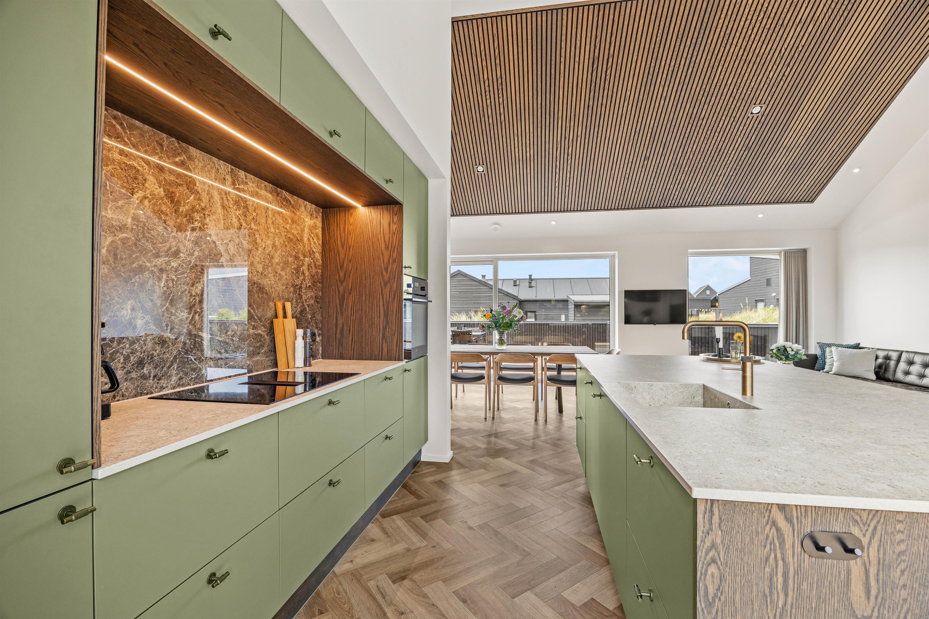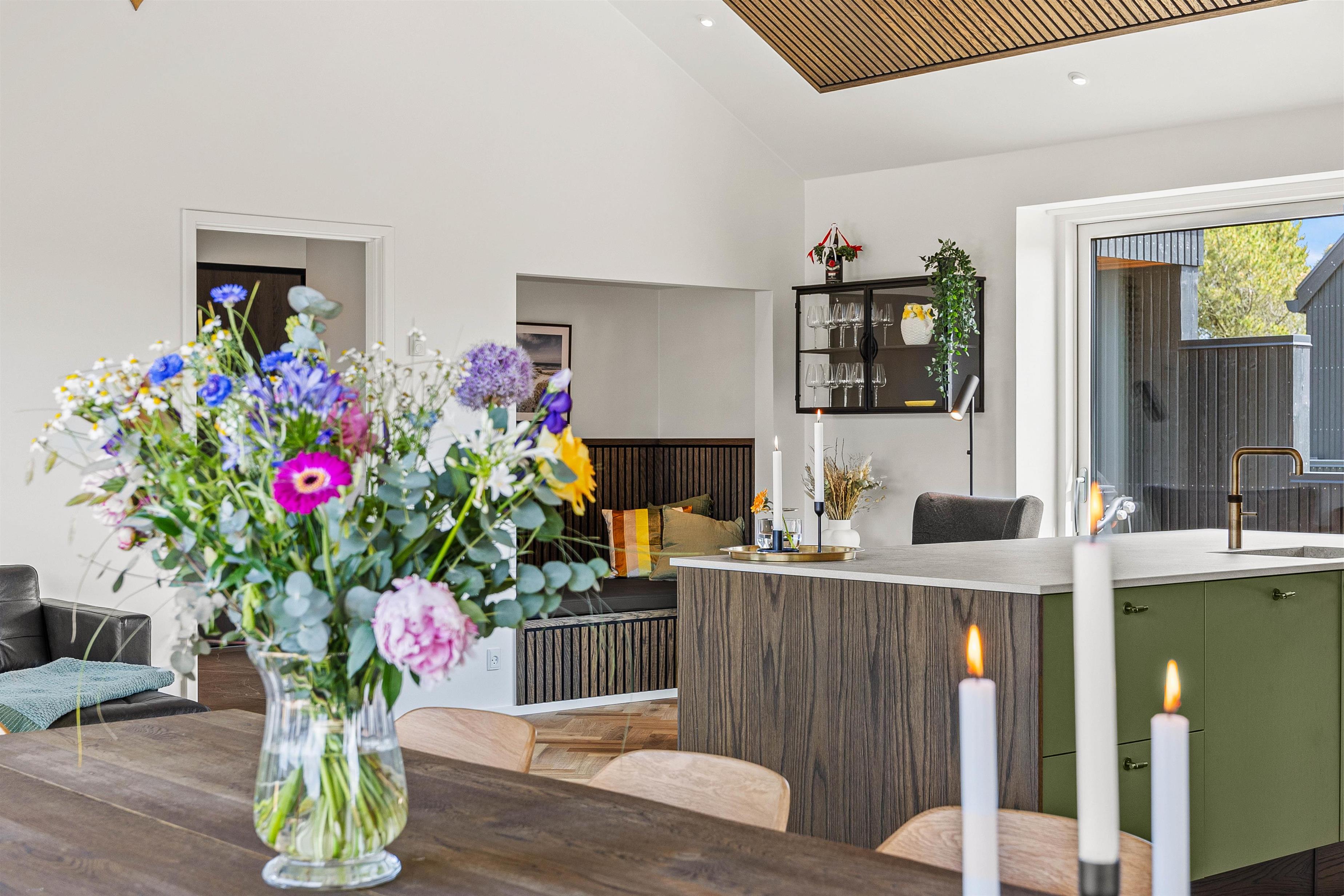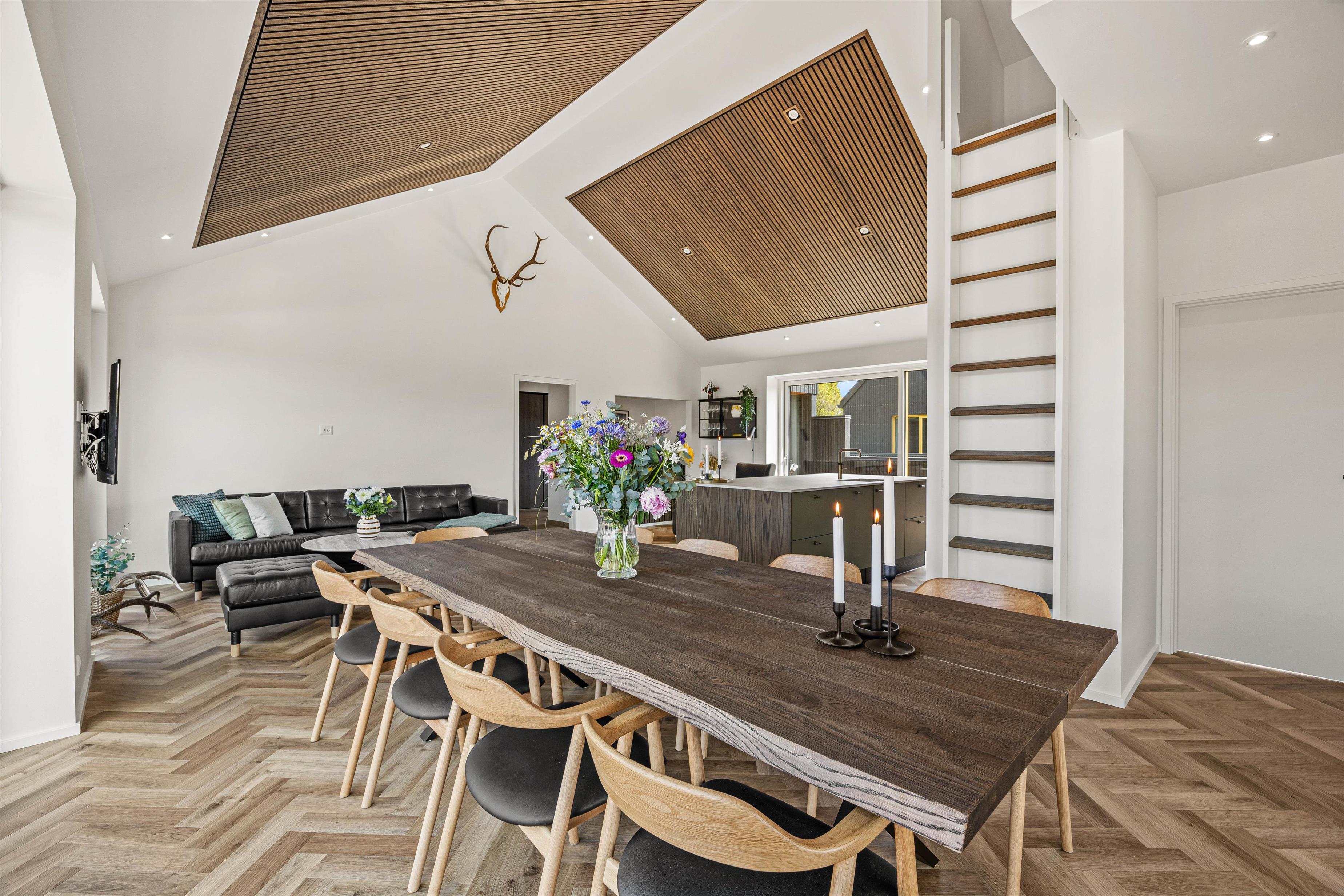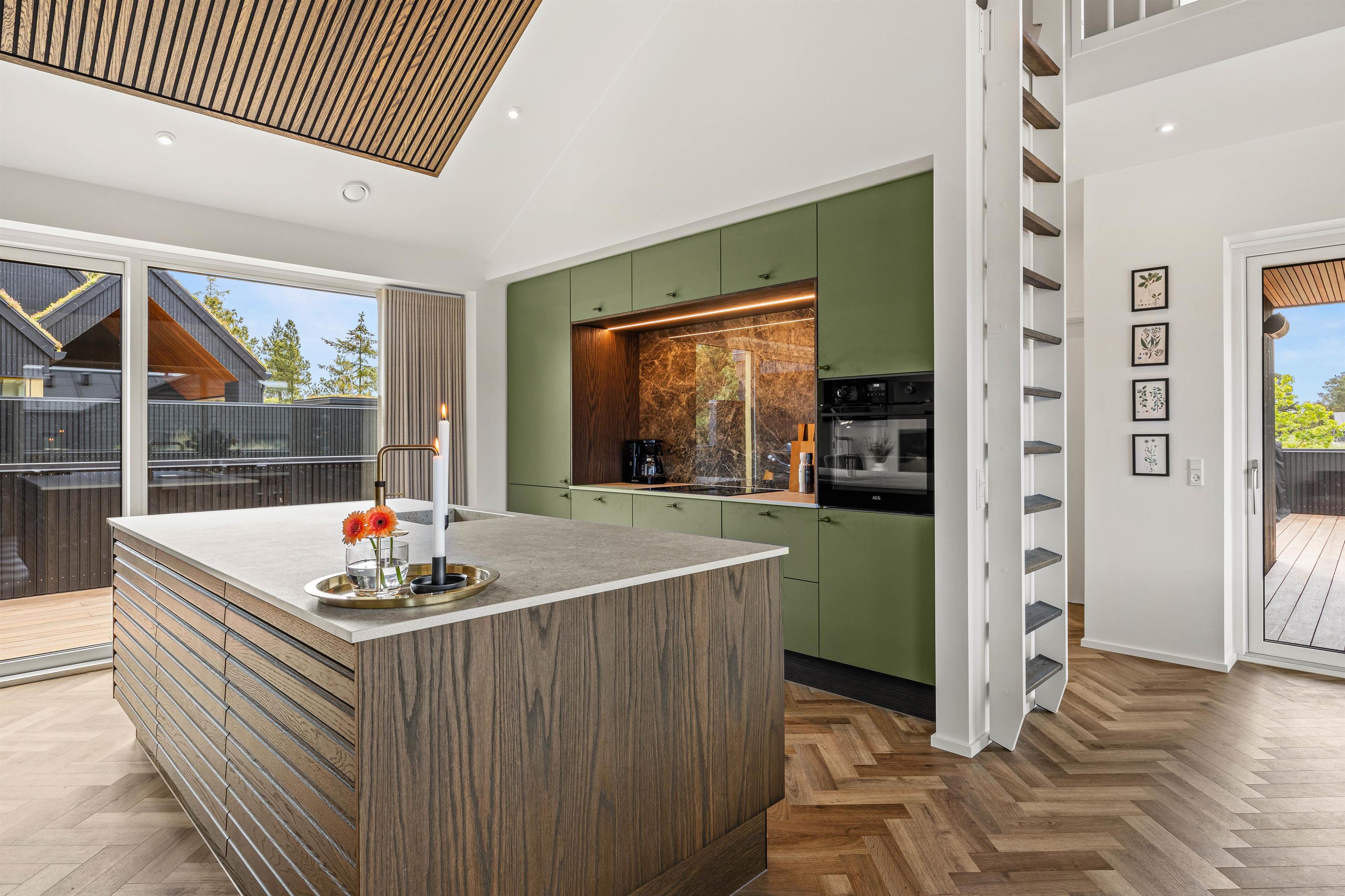 Hjerterummet er det åbne alrum, hvor køkken og stue smelter sammen. Her er lyst og og god plads til familielivet – uanset om I skal lave dejlig mad i det veludstyrede køkken, spille brætspil eller slappe af i sofaen med en god film. Fra det rummelige alrum er der direkte udgang til den fantastiske terrasse.