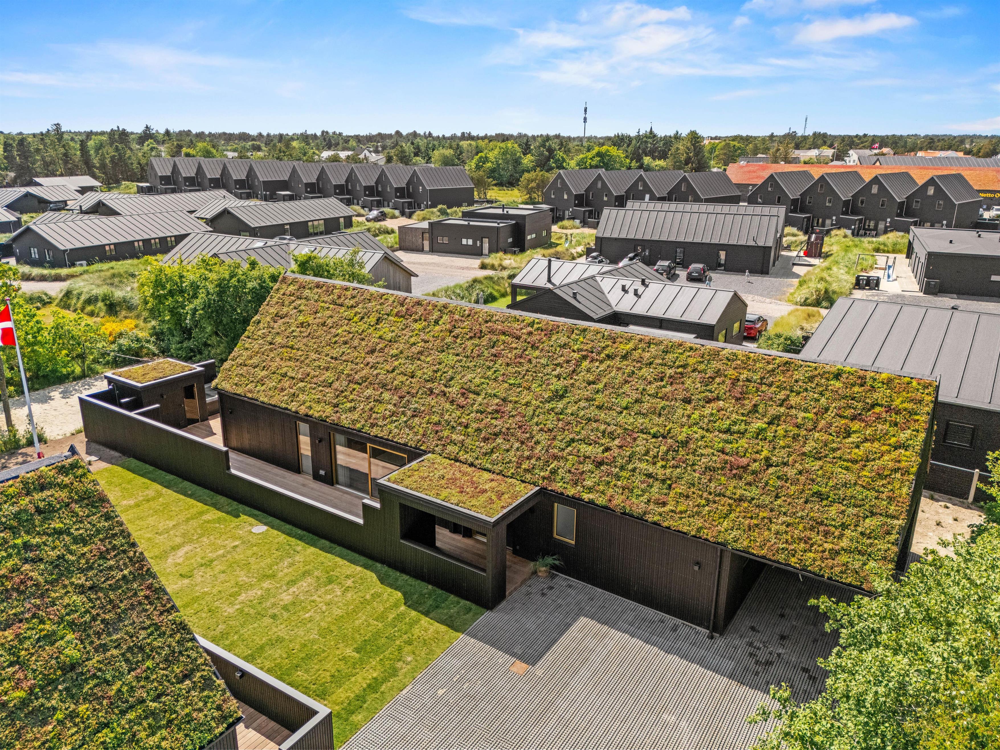 Det nybyggede sommerhus har den ideelle beliggenhed til en ferie, der skal byde på lidt af det hele. Fra Midtbyvej 8A er der 1500 meter til stranden og kun 350 meter til nærmeste indkøbsmuligheder, butikker og restauranter. Blåvandshuk Fyr er et oplagt udflugtsmål ved kysten, hvor I kan blive blæst godt igennem af vestenvinden og se ud over det åbne hav.