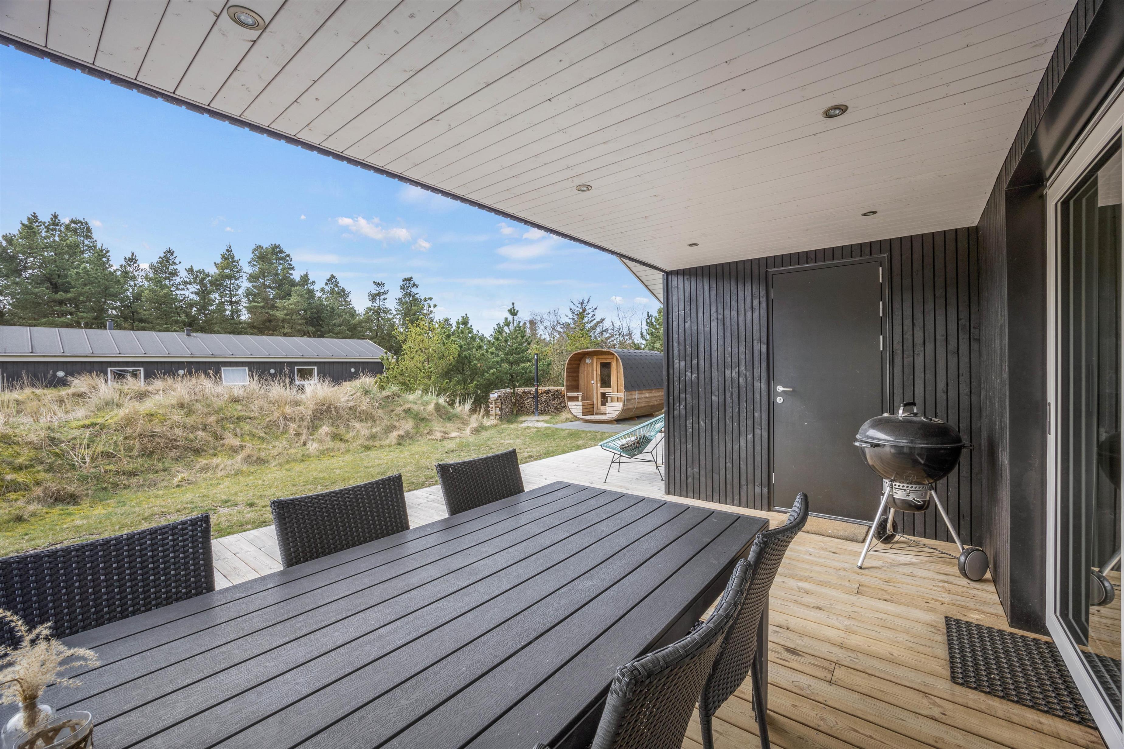 Huset har både en overdækket og en åben terrasse, hvor alle kan finde deres plads i solen. Der er både sørget for havemøbler, liggestole og en grill, så I kan slappe af i det gode vejr og de naturskønne omgivelser.