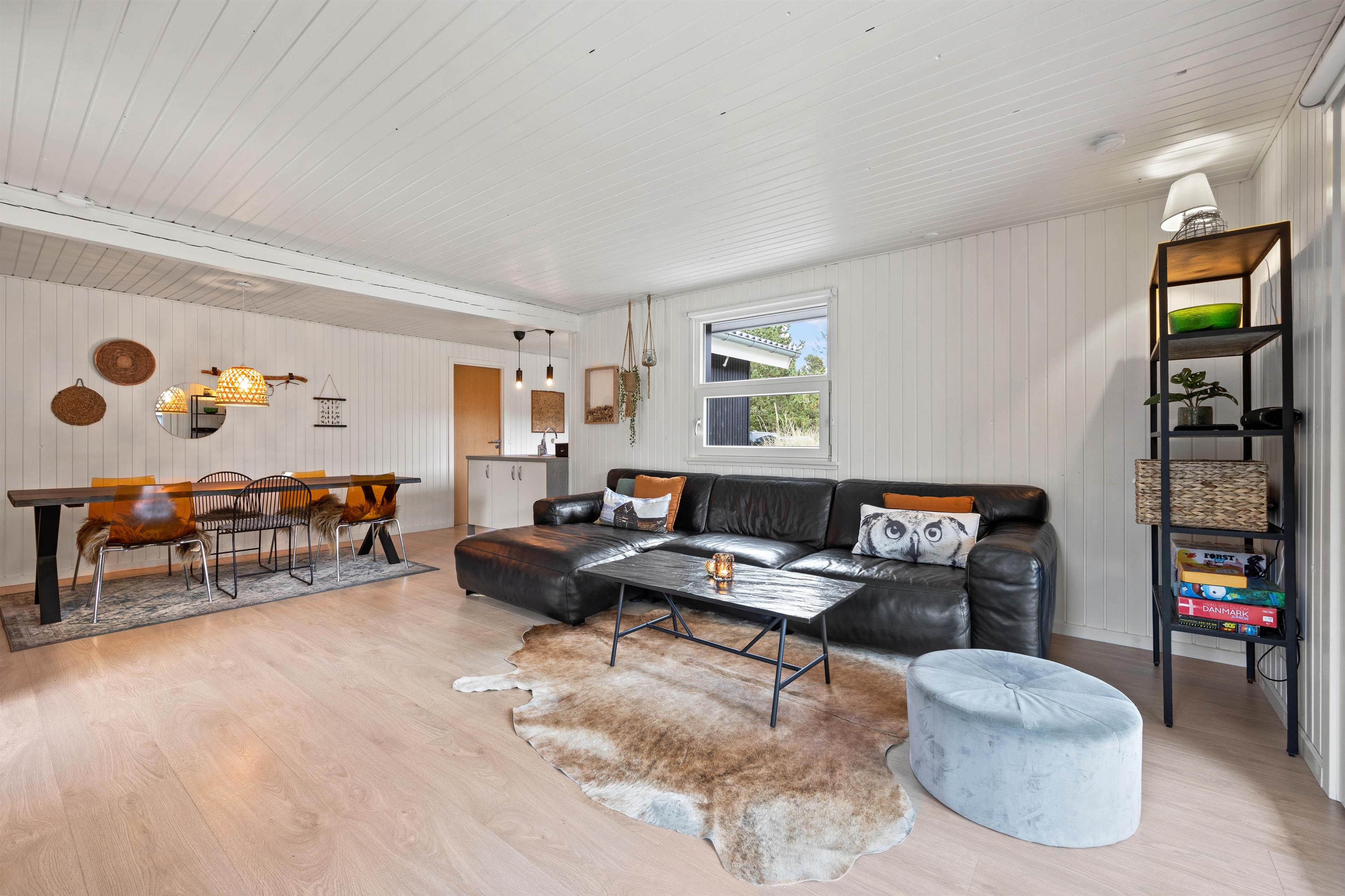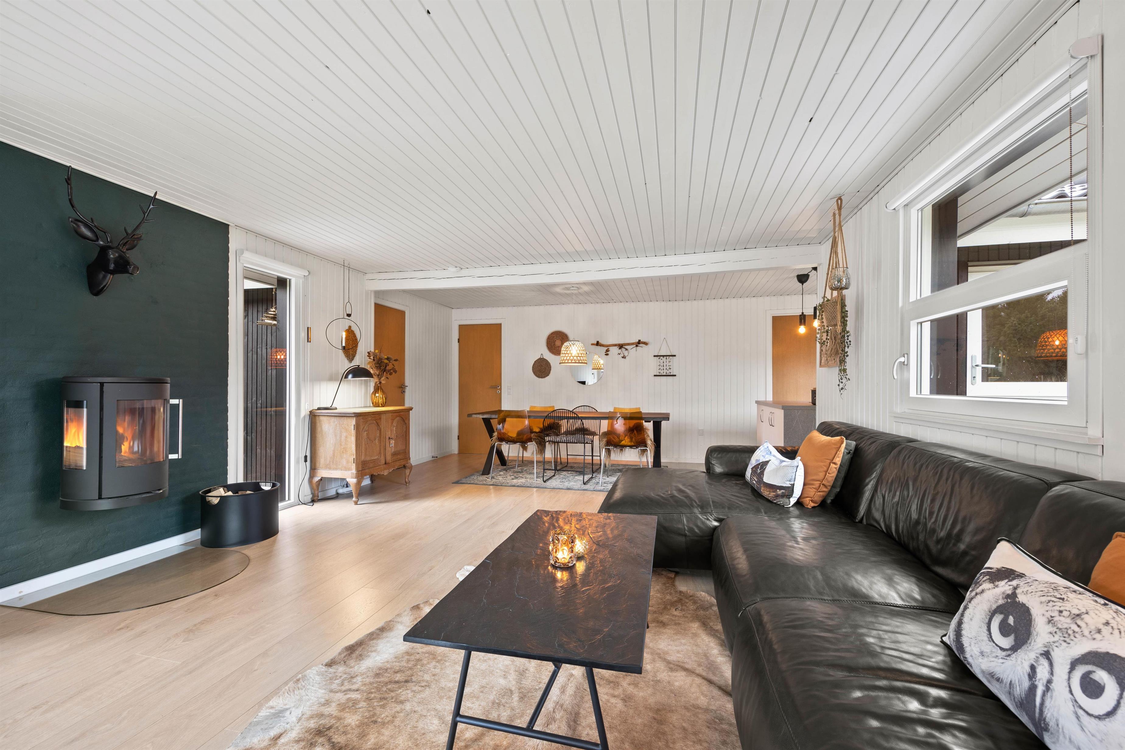 Det hyggelige feriehus på Sandtoftevej 62 leder straks tankerne hen på en dejlig sommerhusferie i det grønne. Indvendigt vil I blive budt velkommen af en lys og venlig indretning der skaber en imødekommende atmosfære. Stue og køkken er slået sammen til ét stort opholdsrum, og her kan hele familien samles til et hyggeligt kortspil, spændende filmaftener og gode måltider.