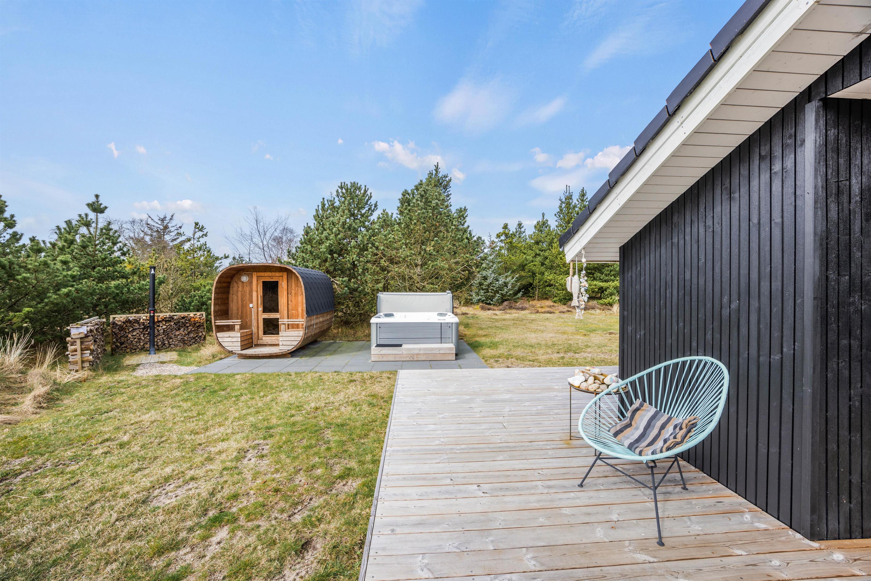 I det naturskønne Blåvand ligger dette hyggelige i 2021 nyrenoverede feriehus til 6 personer. Det sorte træhus har en helt speciel charme over sig både udvendigt og indvendigt, og der er lagt op til en afstressende sommerhusferie med wellness i herlige omgivelser.