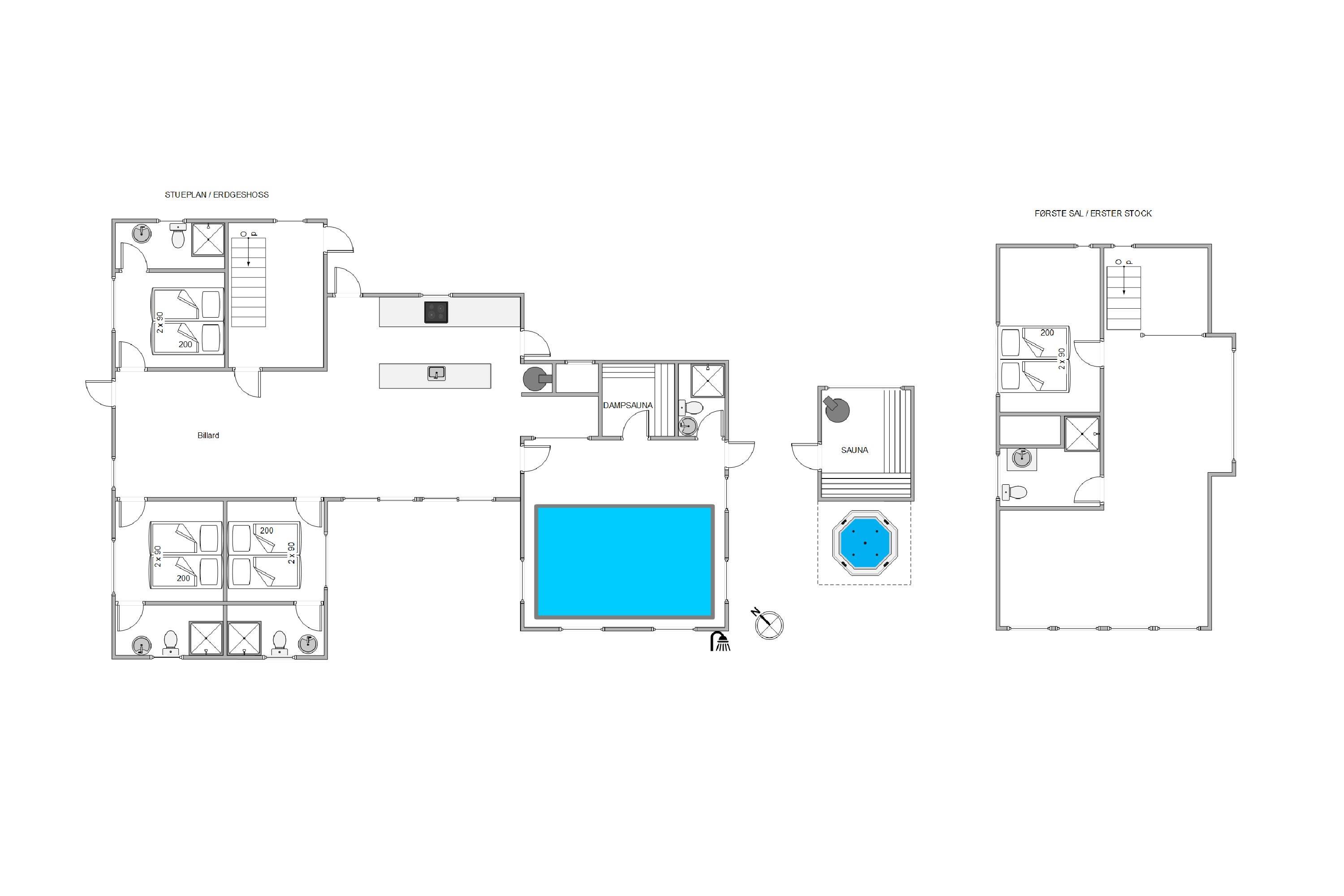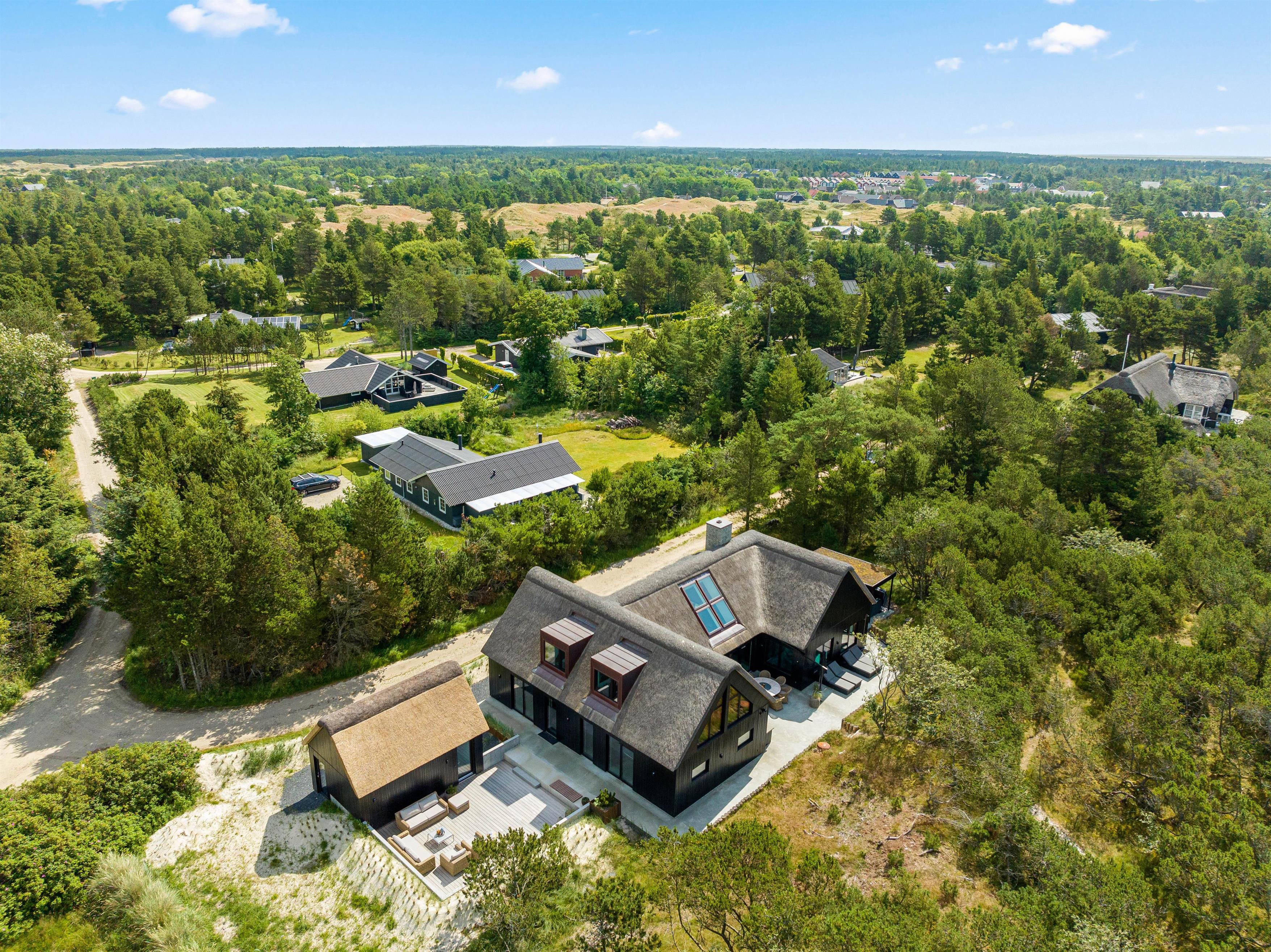 På en kæmpestor naturgrund i smukke omgivelser blot 500 meter fra Blåvand centrum, venter dette luksushus på at blive udforsket af jer. Dette 5+-stjernede luksushus er opført i 2022, og har et boligareal på 235 m2 fordelt på 2 etager. Her er der plads til, at 8 personer kan tilbringe en uges ferie i lækre omgivelser. Glæd jer til en tur i swimmingpoolen, eller et slag billard i aktivitetsrummet. Her er mulighederne mange!