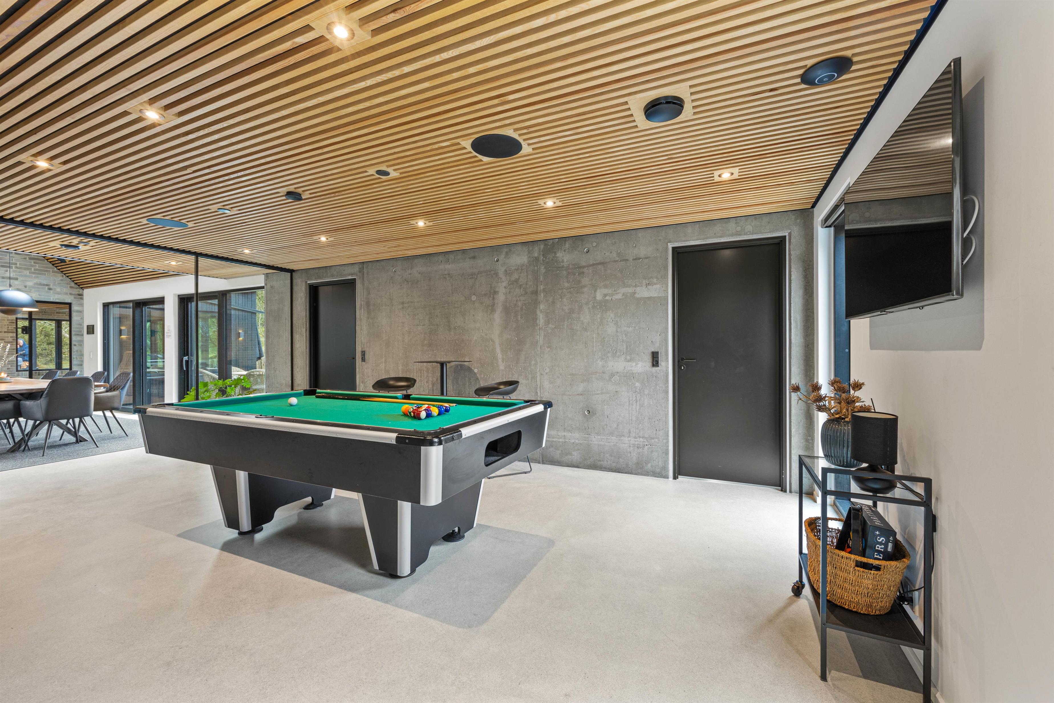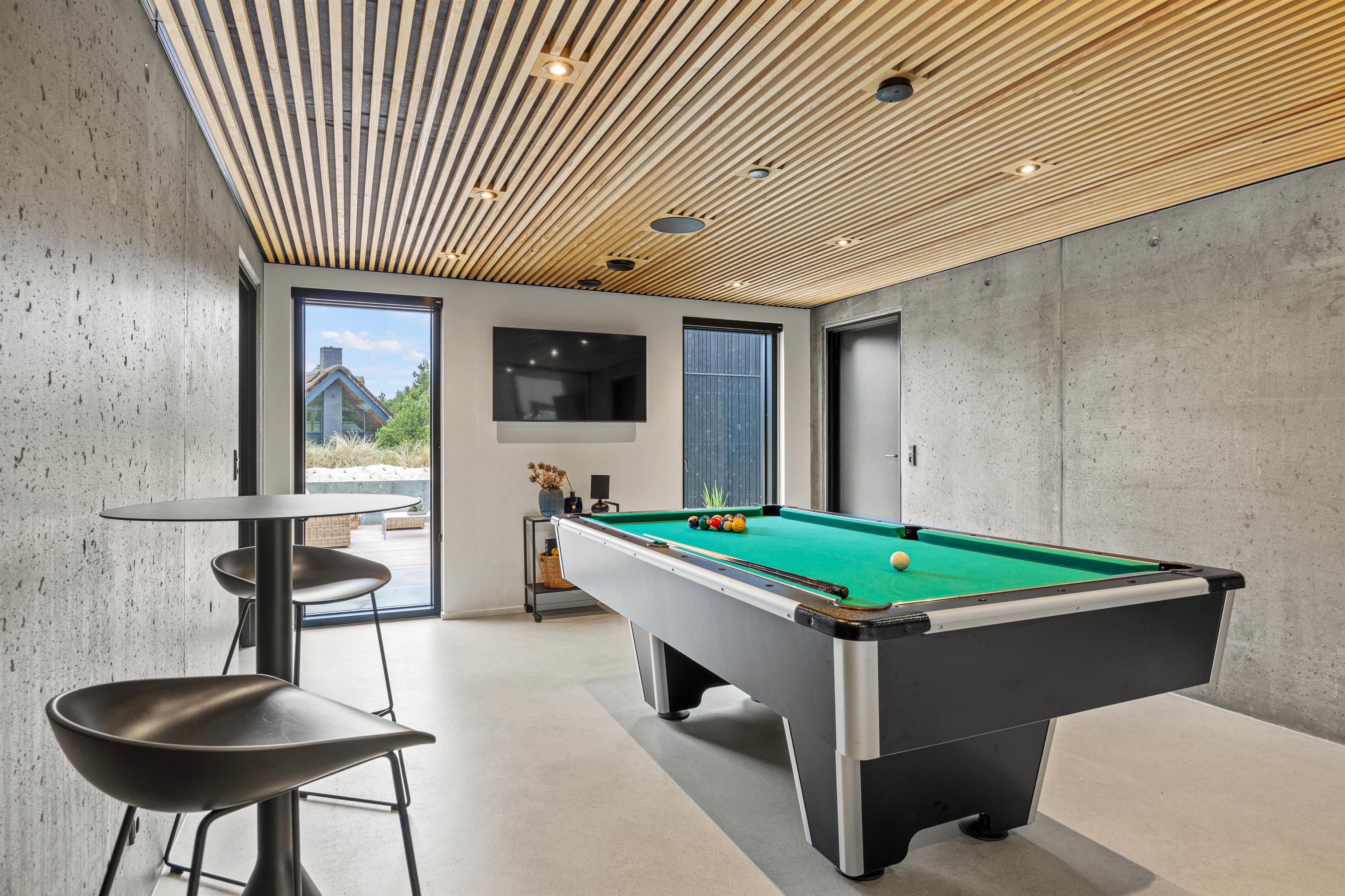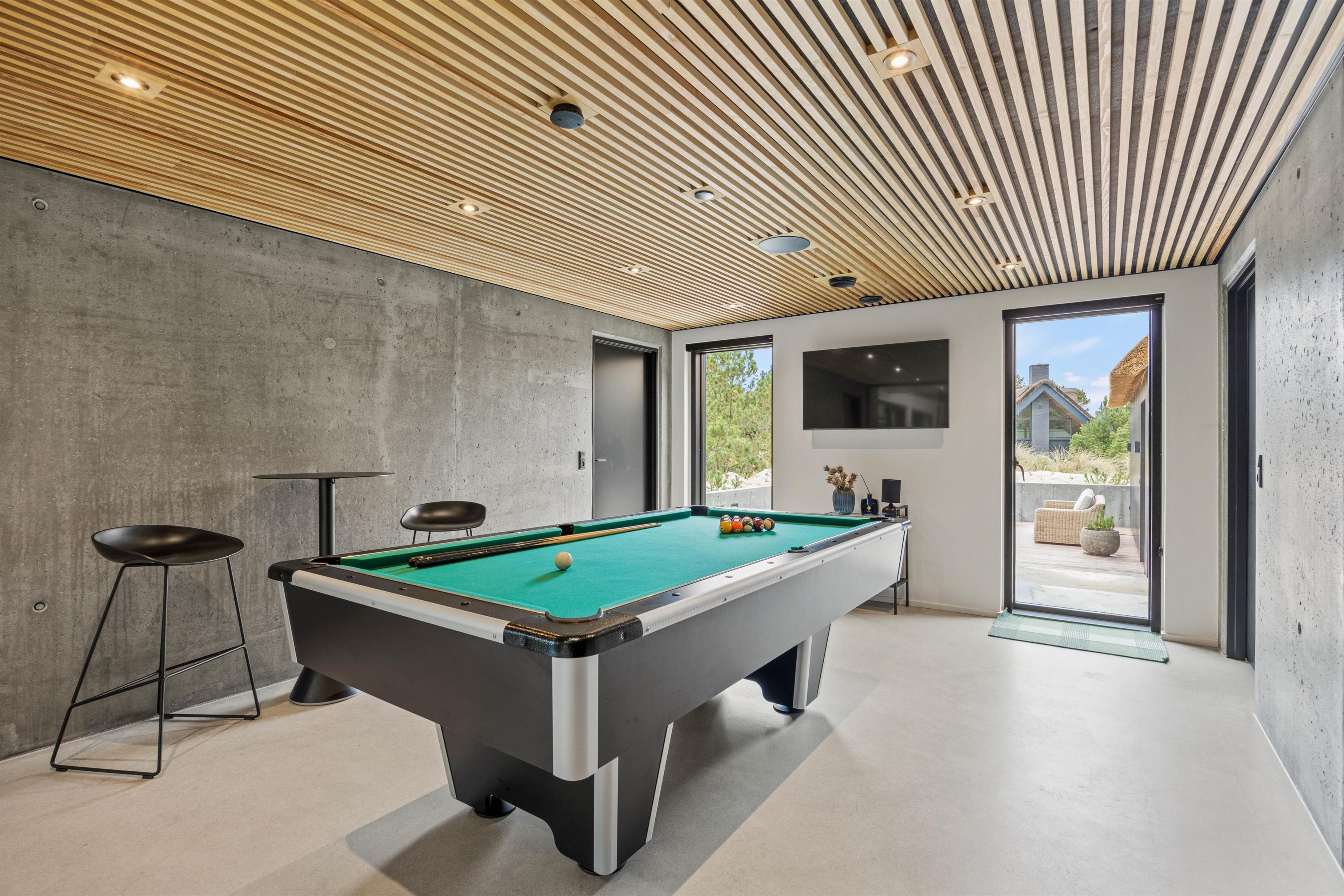 Det rummelige aktivitetsrum med billardbord i åben forbindelse med køkkenalrummet indbyder til familiære turneringer og mange timers sjov og leg.