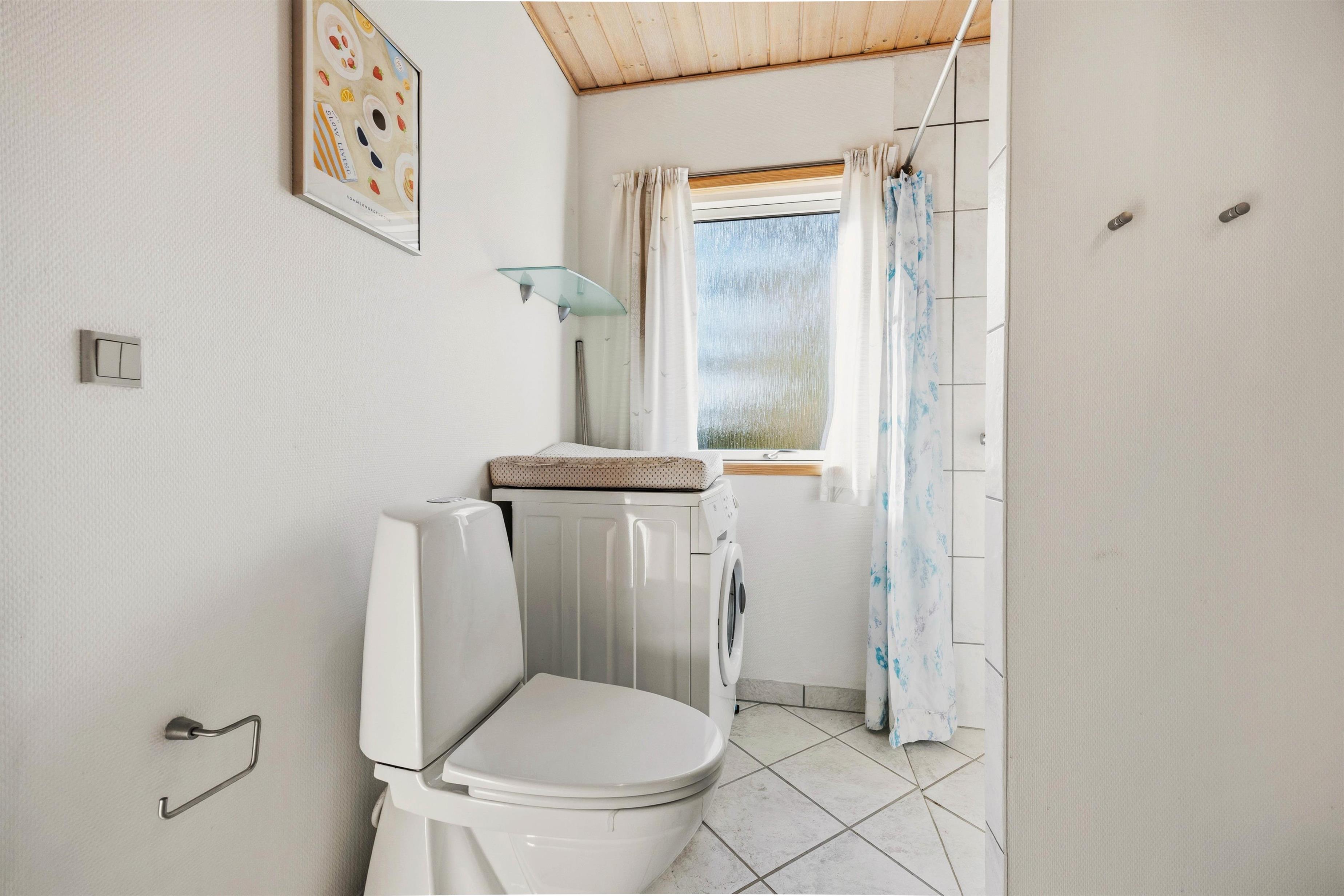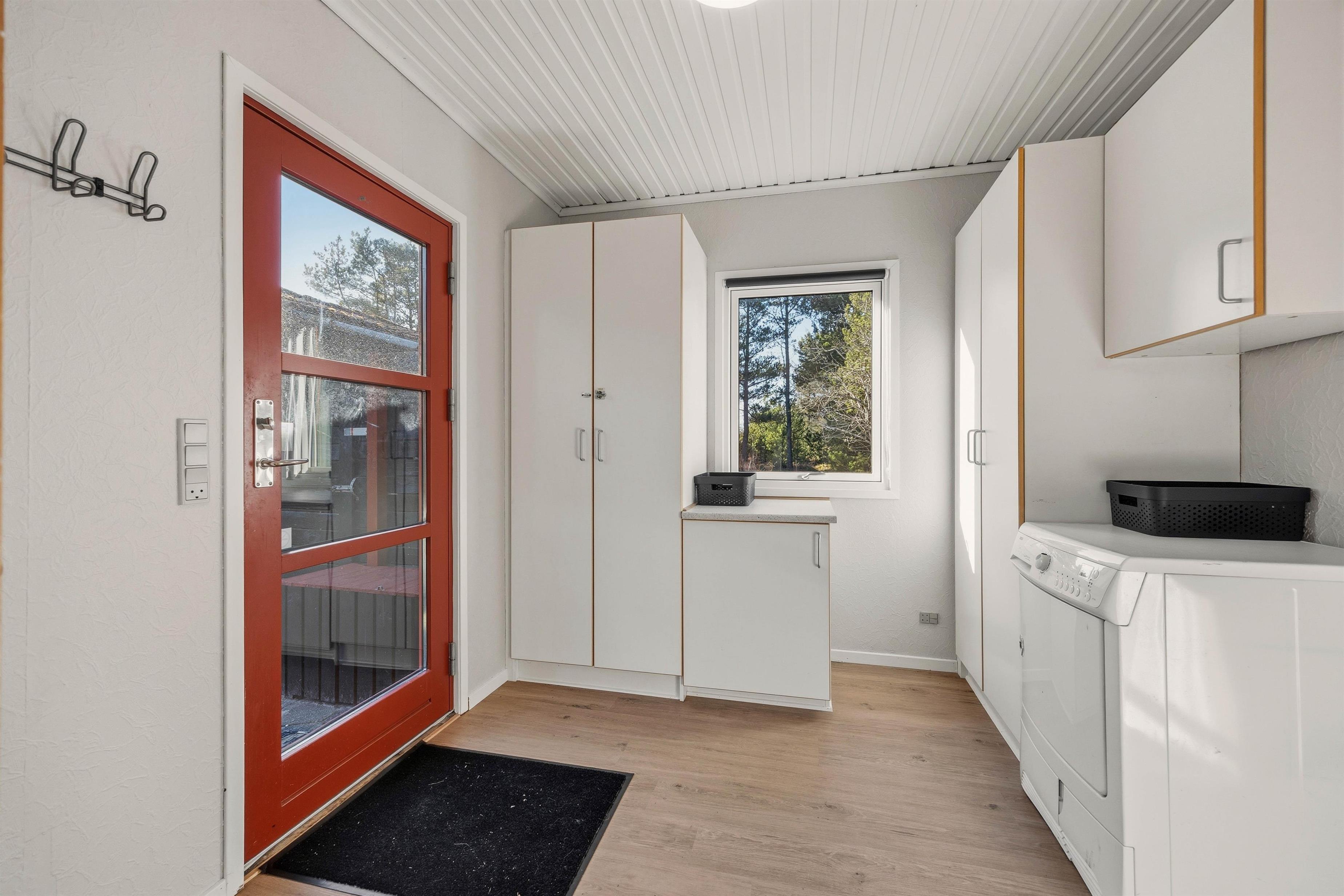 De 3 soveværelser er alle indrettet med dobbeltsenge, og i badeværelset med gulvvarme er der også en vaskemaskine, så man kan vaske tøjet, hvis det er blevet beskidt eller vådt på strandturen. Et godt sparetip: brug varmepumpen til opvarmning og spar på el-omkostningerne.