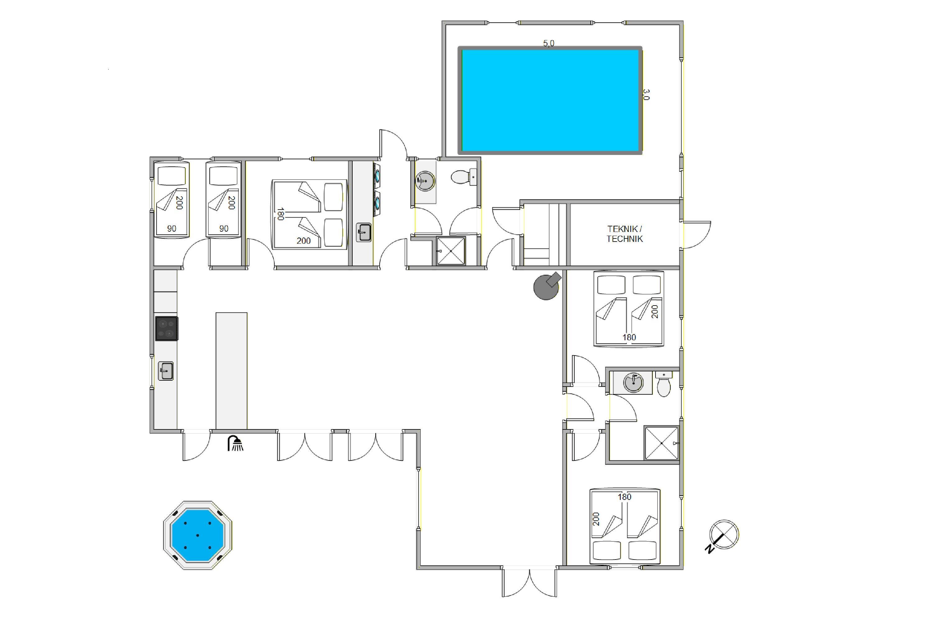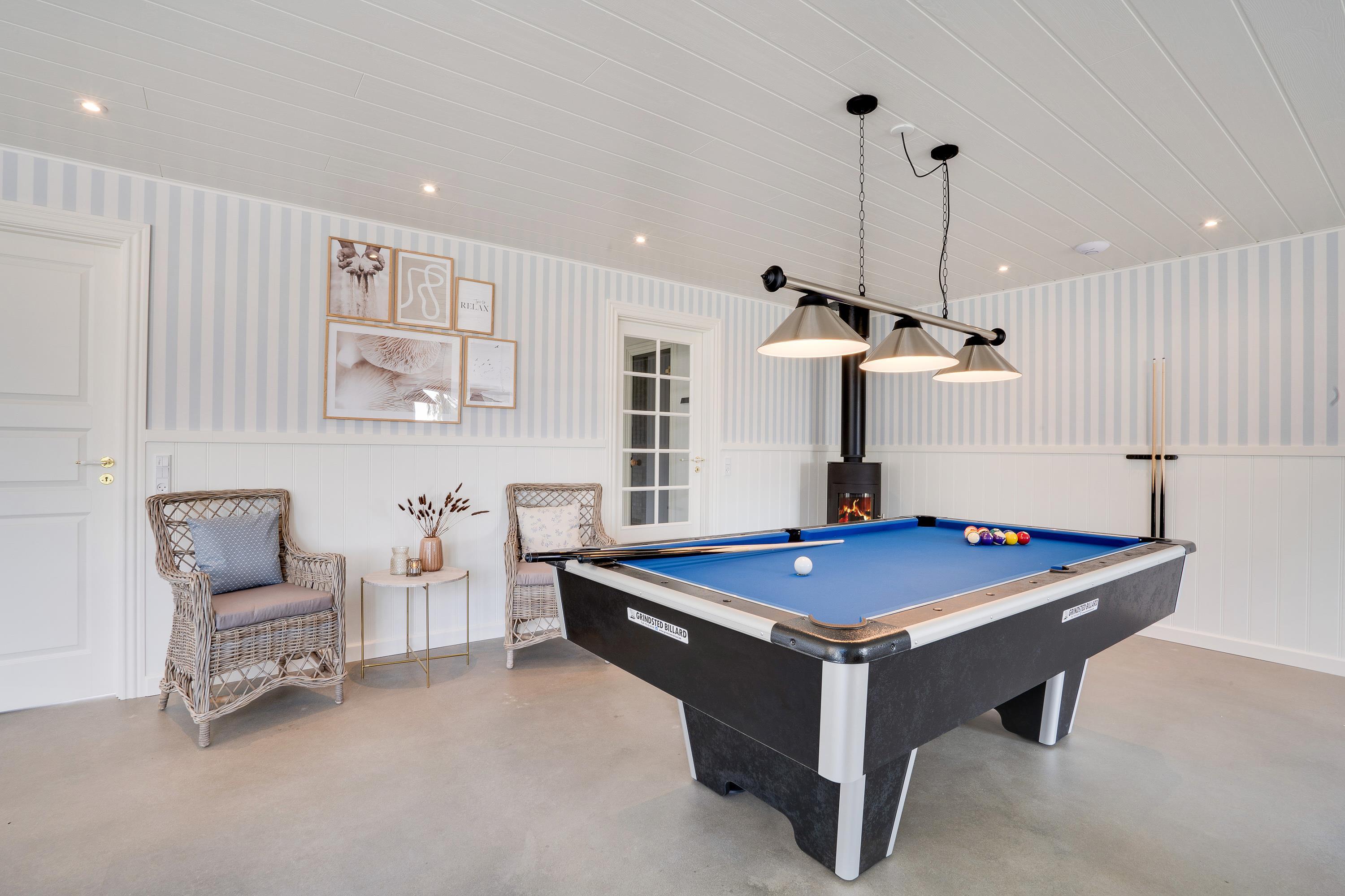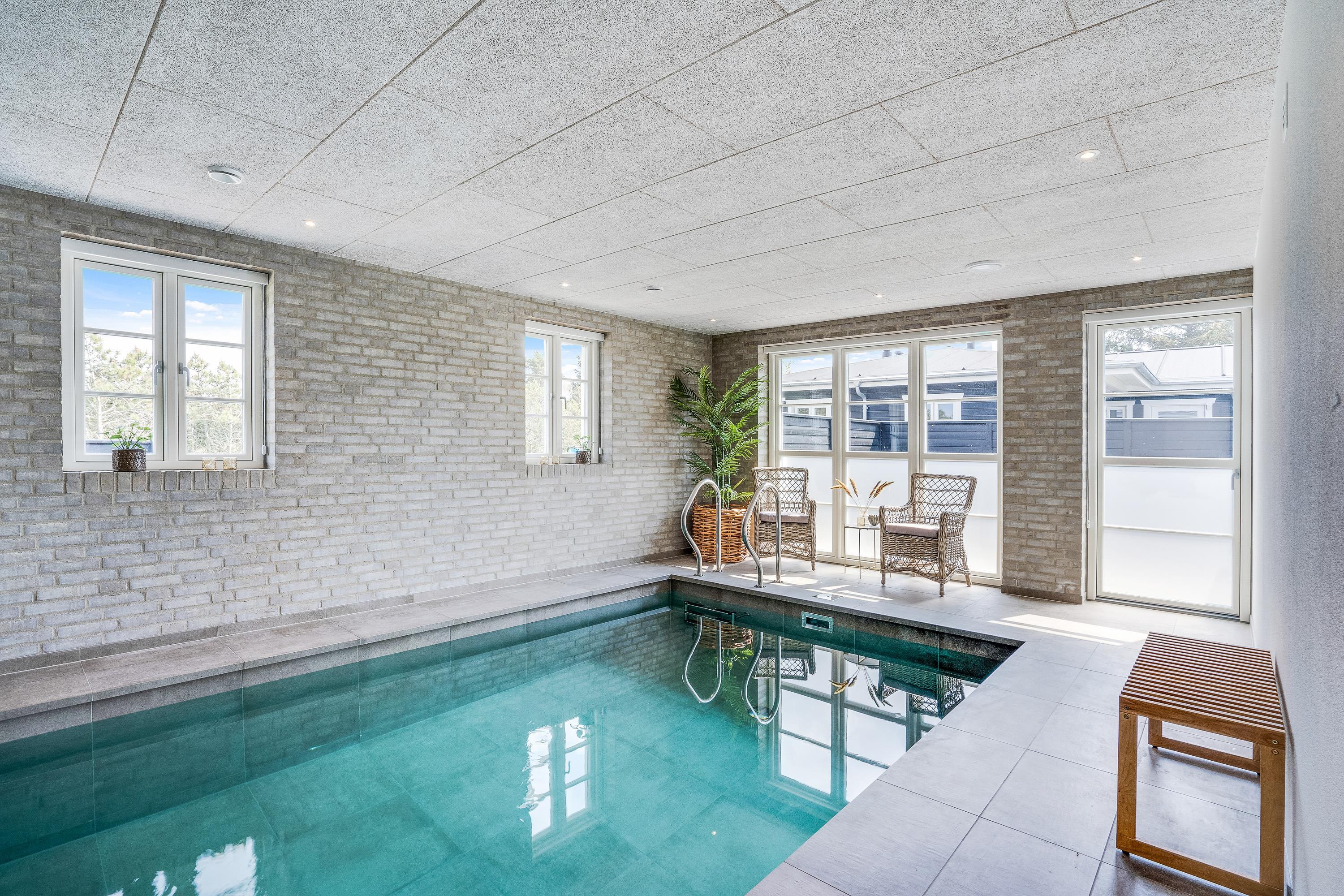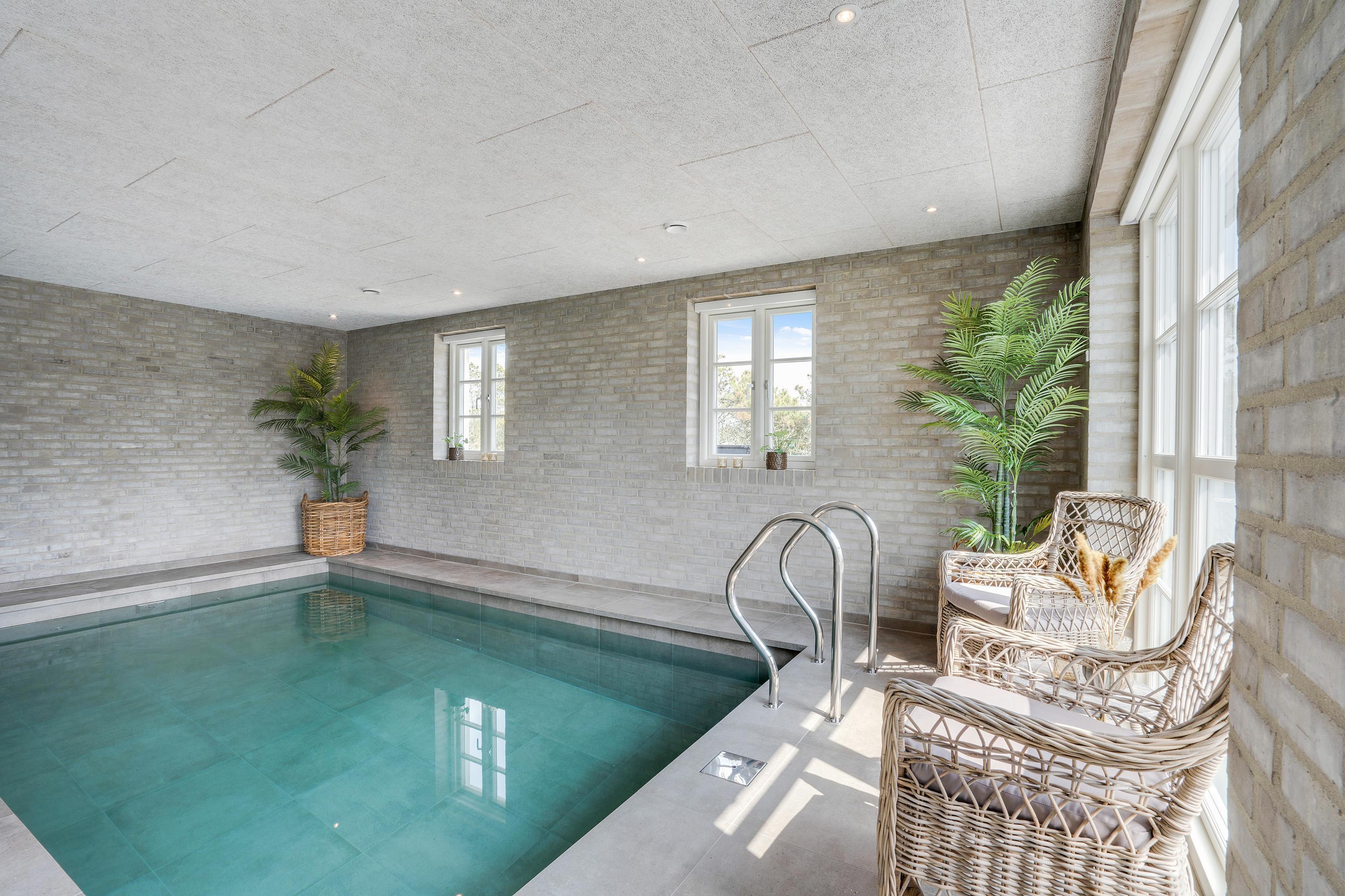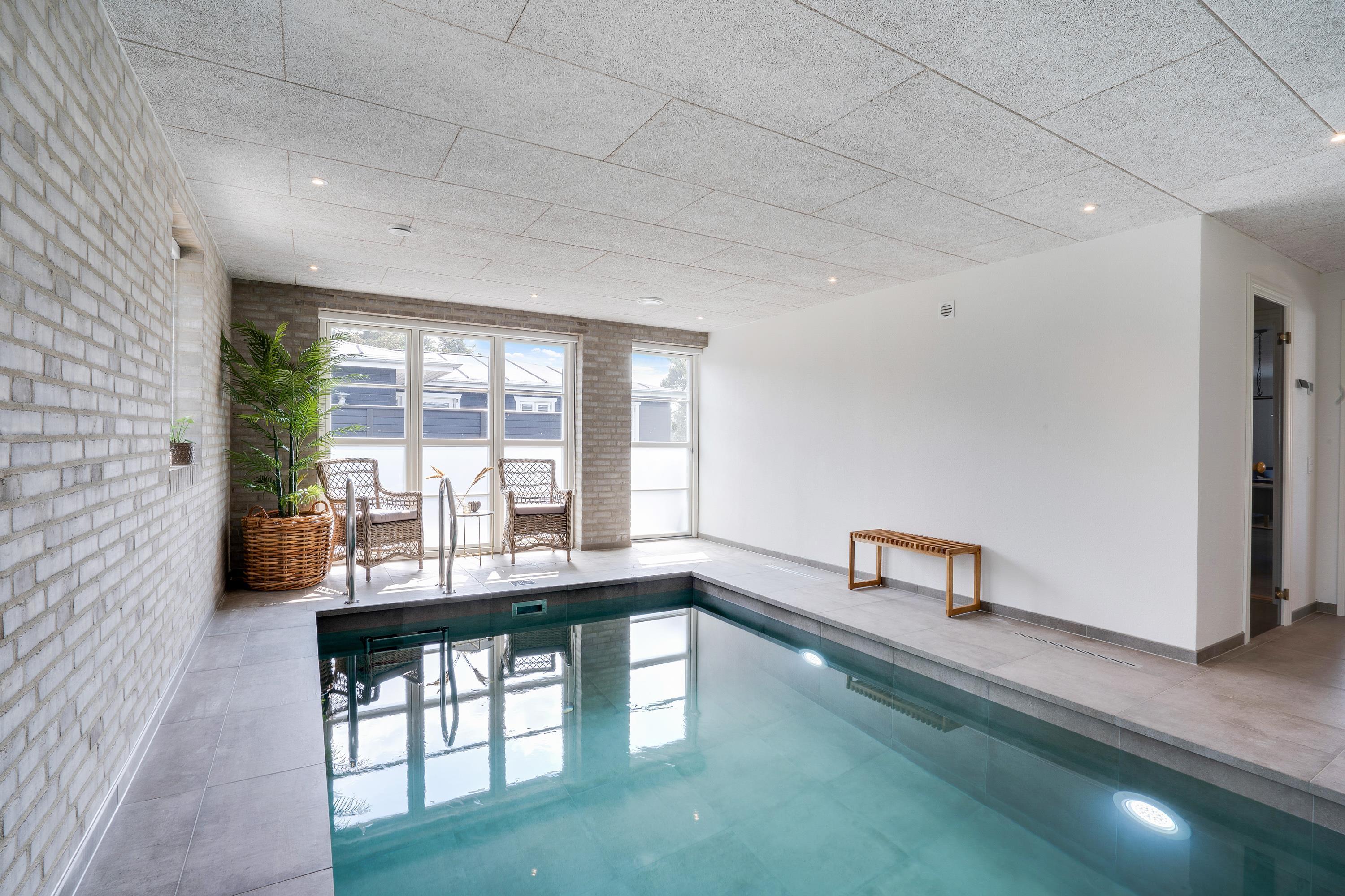 Det femstjernede feriehus inviterer både til aktiv og luksuriøs ferie. Poolafdelingen med indendørs swimmingpool er et mekka for vandhundene, og her kan både store og små boltre sig og få brugt noget energi. Efter en badetur bliver I hurtigt tørre igen i saunaen, som er tilgængelig fra poolrummet.