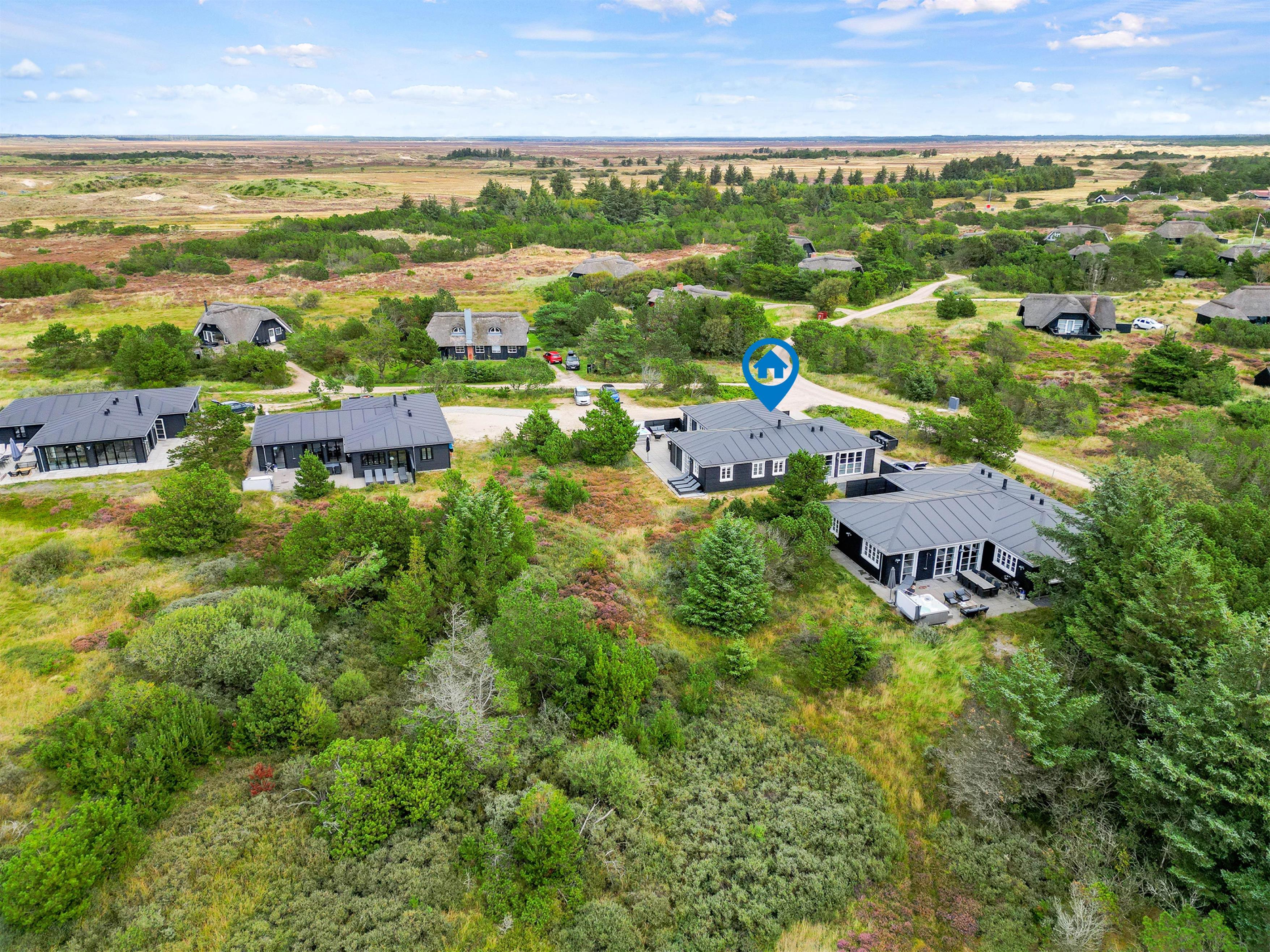 Med en beliggenhed på en mere end 4.000 kvadratmeter stor naturgrund har I den fineste panoramaudsigt til den uspolerede hede vest for sommerhuset.