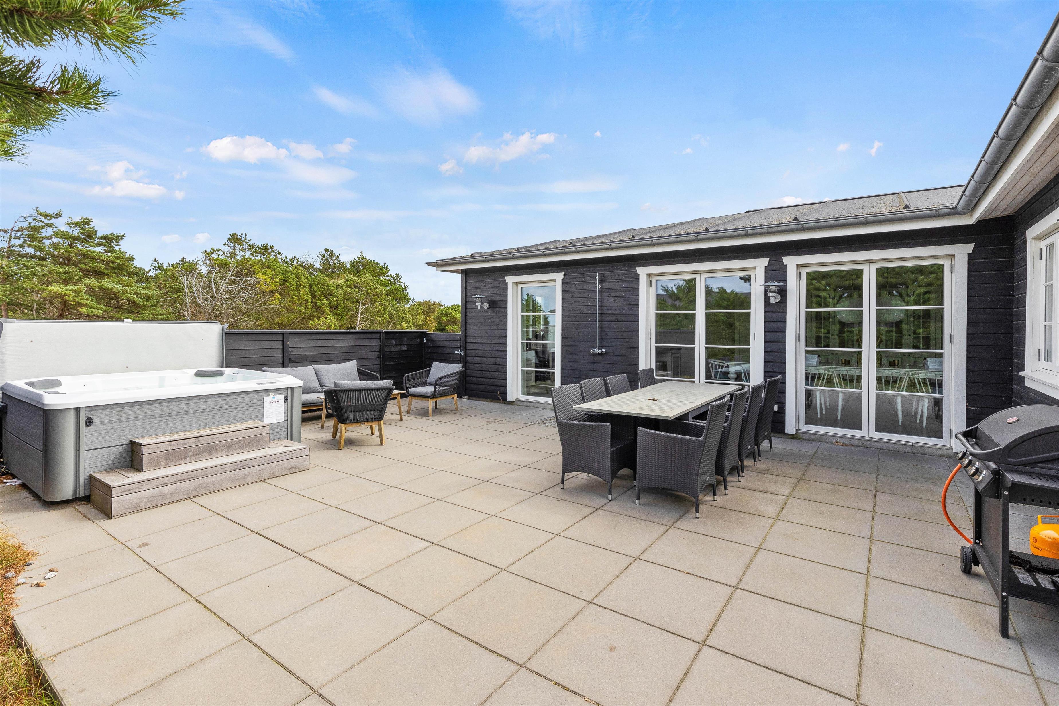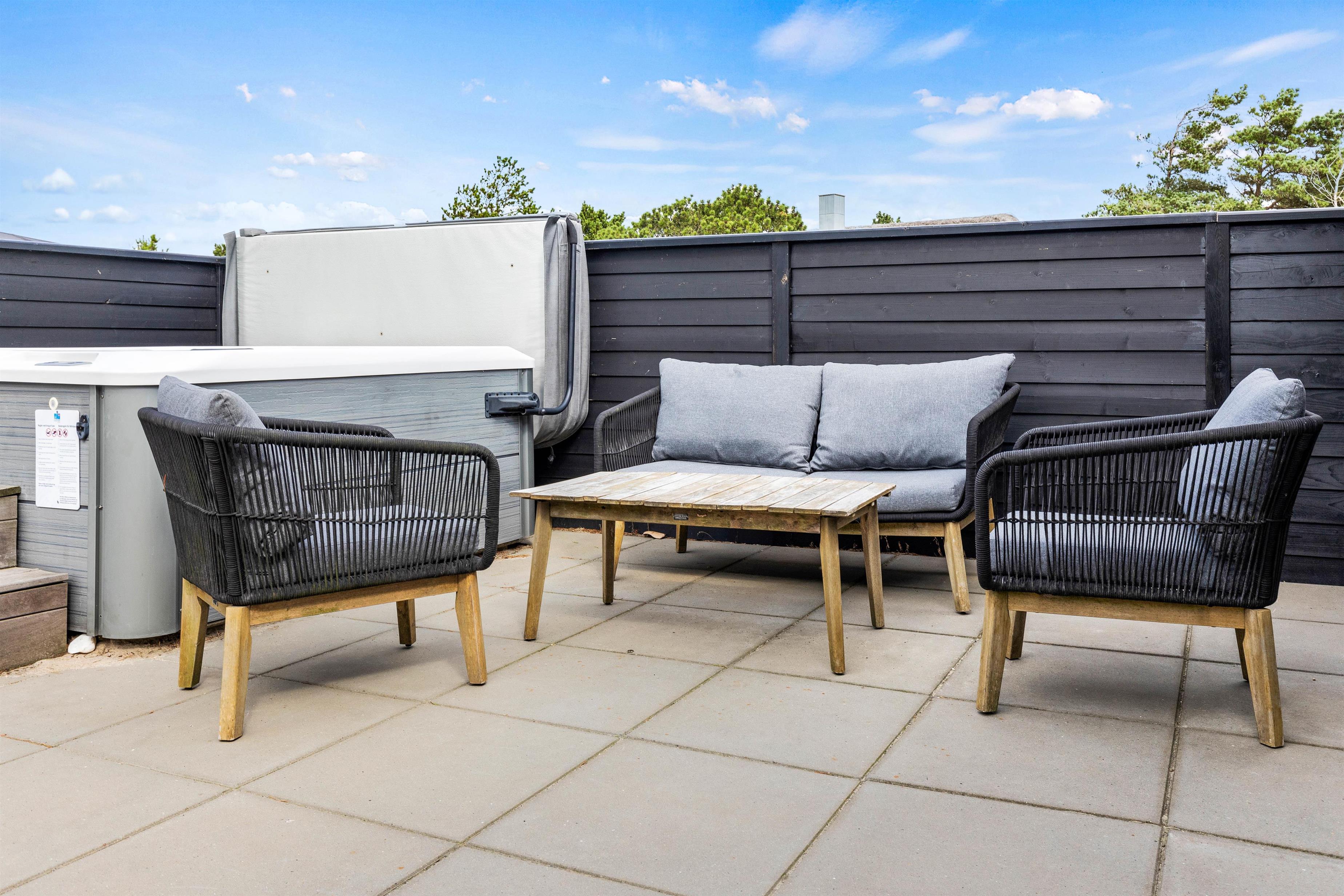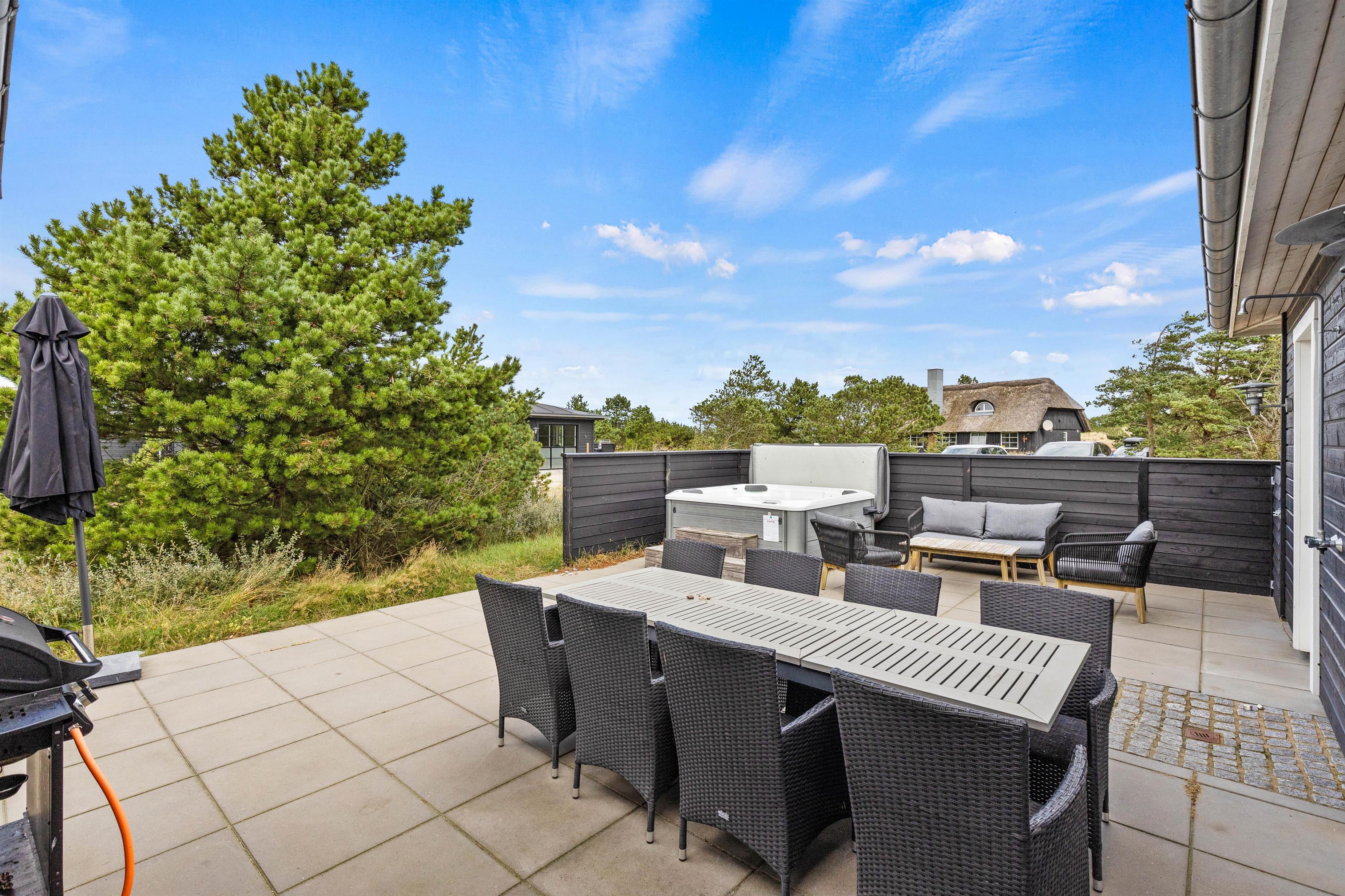 På den store terrasse er der masser af plads til at slappe af og nyde det gode vejr samt Blåvands naturskønne omgivelser. Der er selvfølgelig sørget for gode havemøbler, liggestole og grill, så I kan nyde de solrige dage i fulde drag.