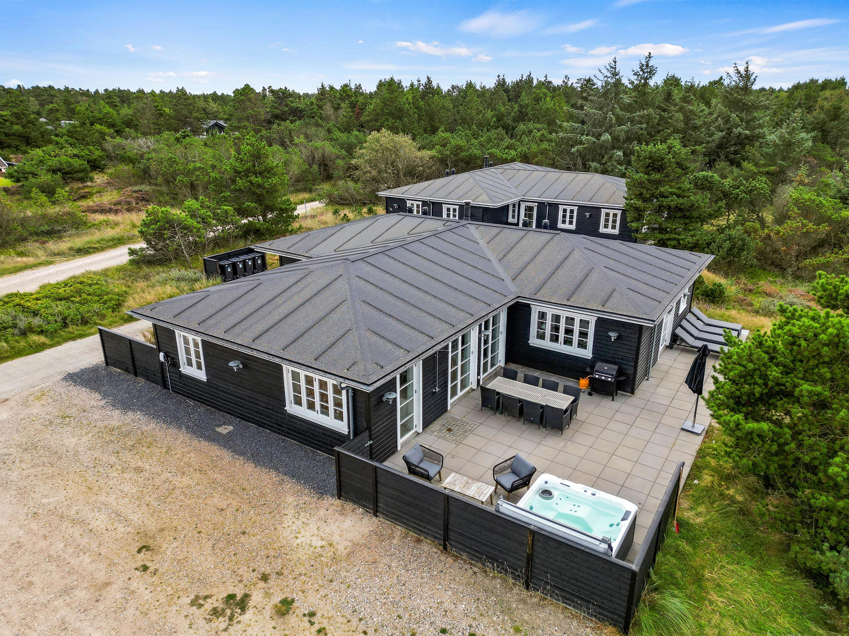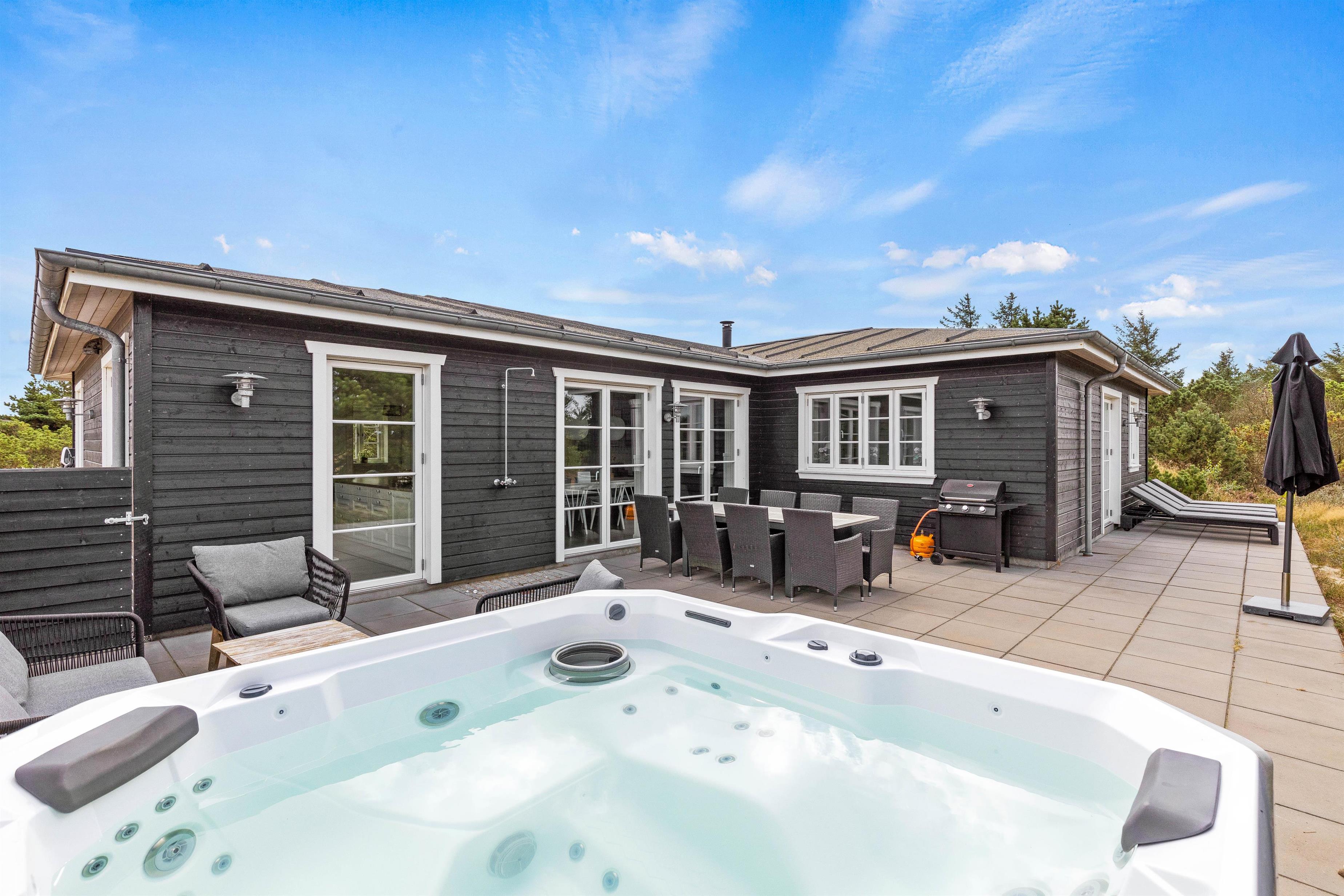 Det store poolhus i Blåvand er et oplagt valg til en alsidig ferie med familien eller vennerne. Sommerhuset er opført i 2020 i en moderne stil, der lægger op til afslapning og luksus.