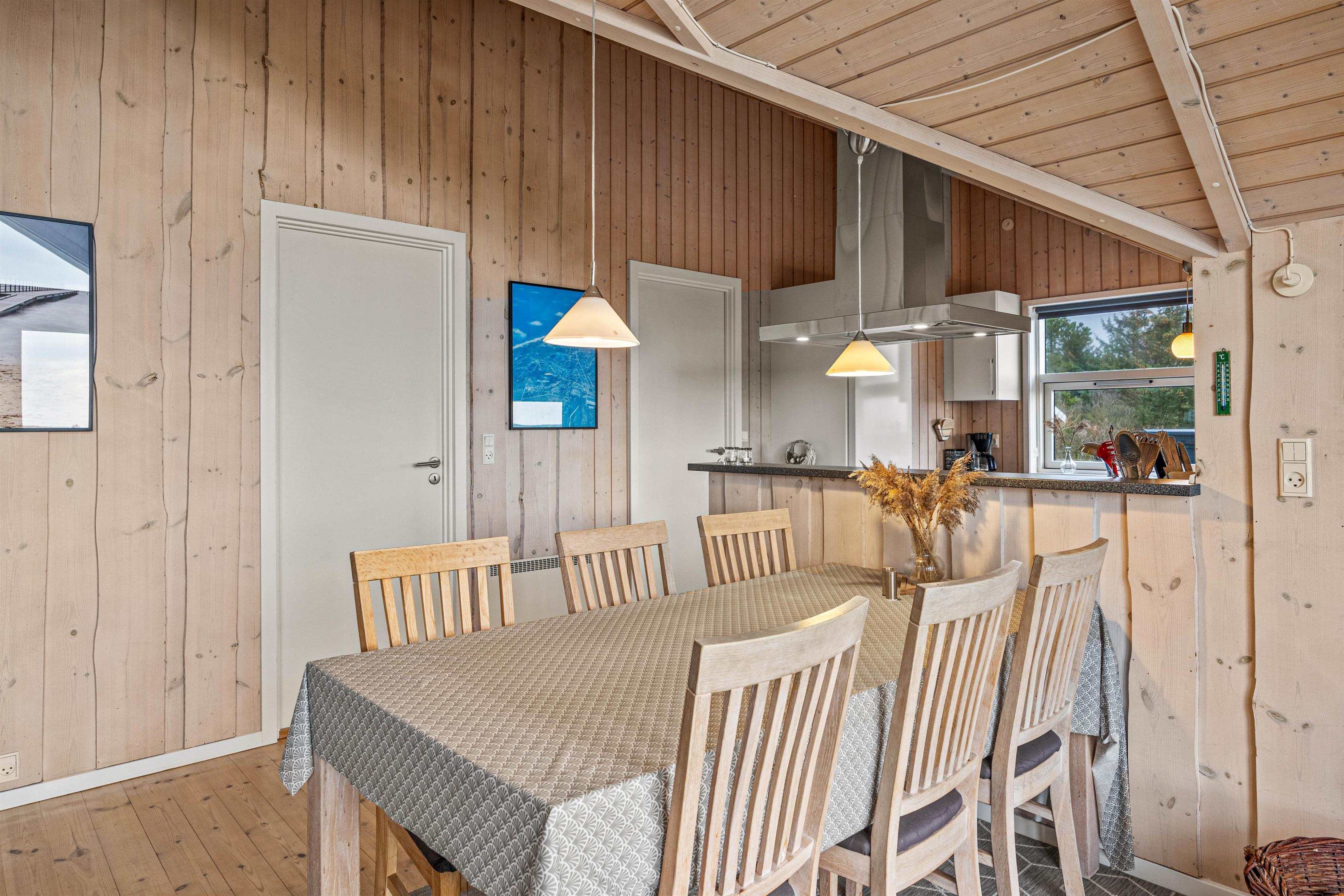 Når I træder ind i sommerhuset på Grønningen 7, vil I straks blive mødt af den lyse og indbydende indretning, som danner rammen om jeres ferie. De lyse vægge og lofter er sammen med det gode lysindfald med til at skabe den helt rette ferieatmosfære.