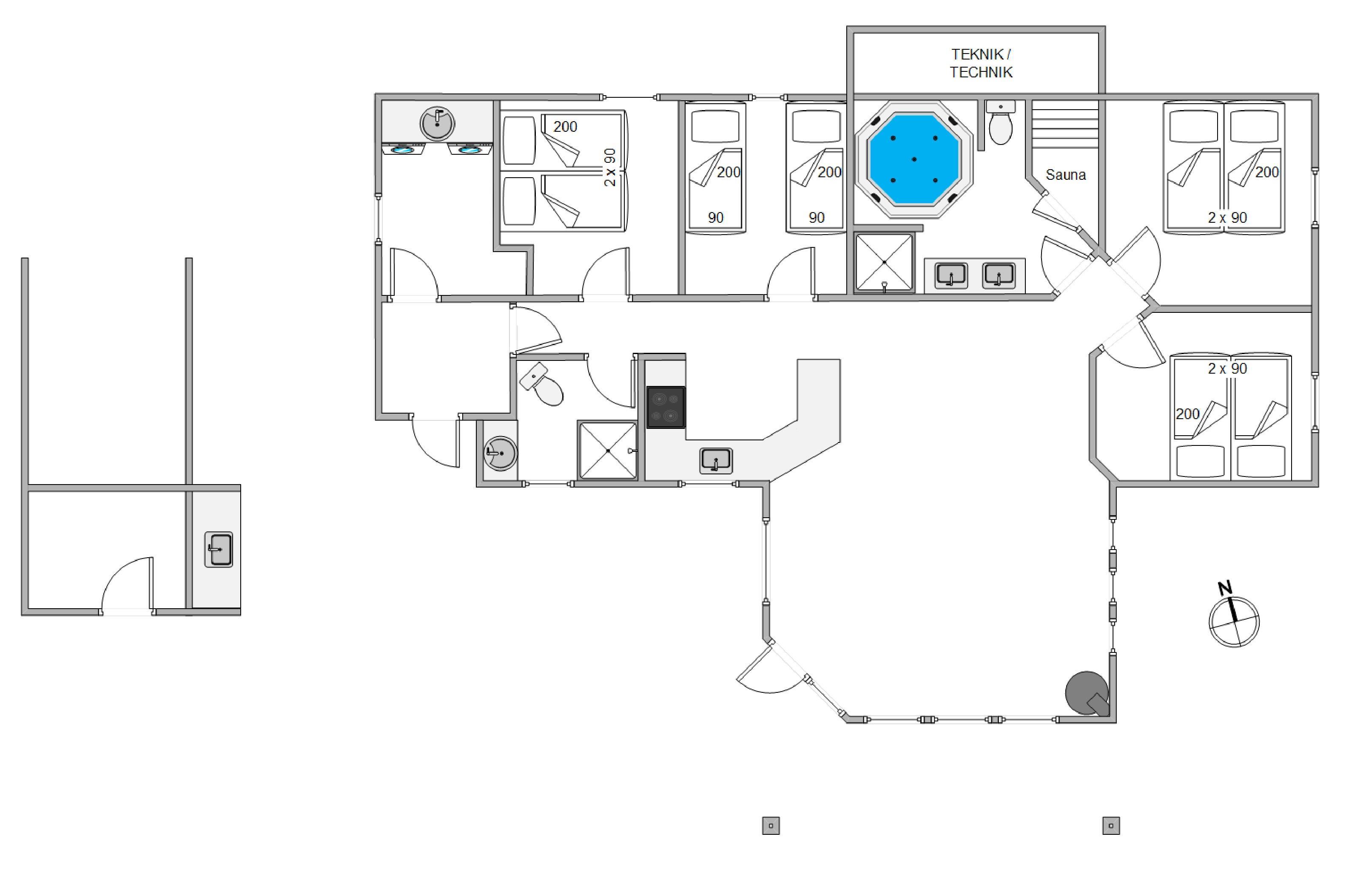 Sommerhuset er indrettet med 4 gode soveværelser, hvor I kan få jeres skønhedssøvn, så I kan være veludhvilede til næste feriedag. Desuden er der hele 2 badeværelser, så ingen skal stå i kø fra morgenstunden, og på det ene badeværelse finder I et lille wellnessområde, hvor I både kan nyde en afslappende stund i spabadet og saunaen.
