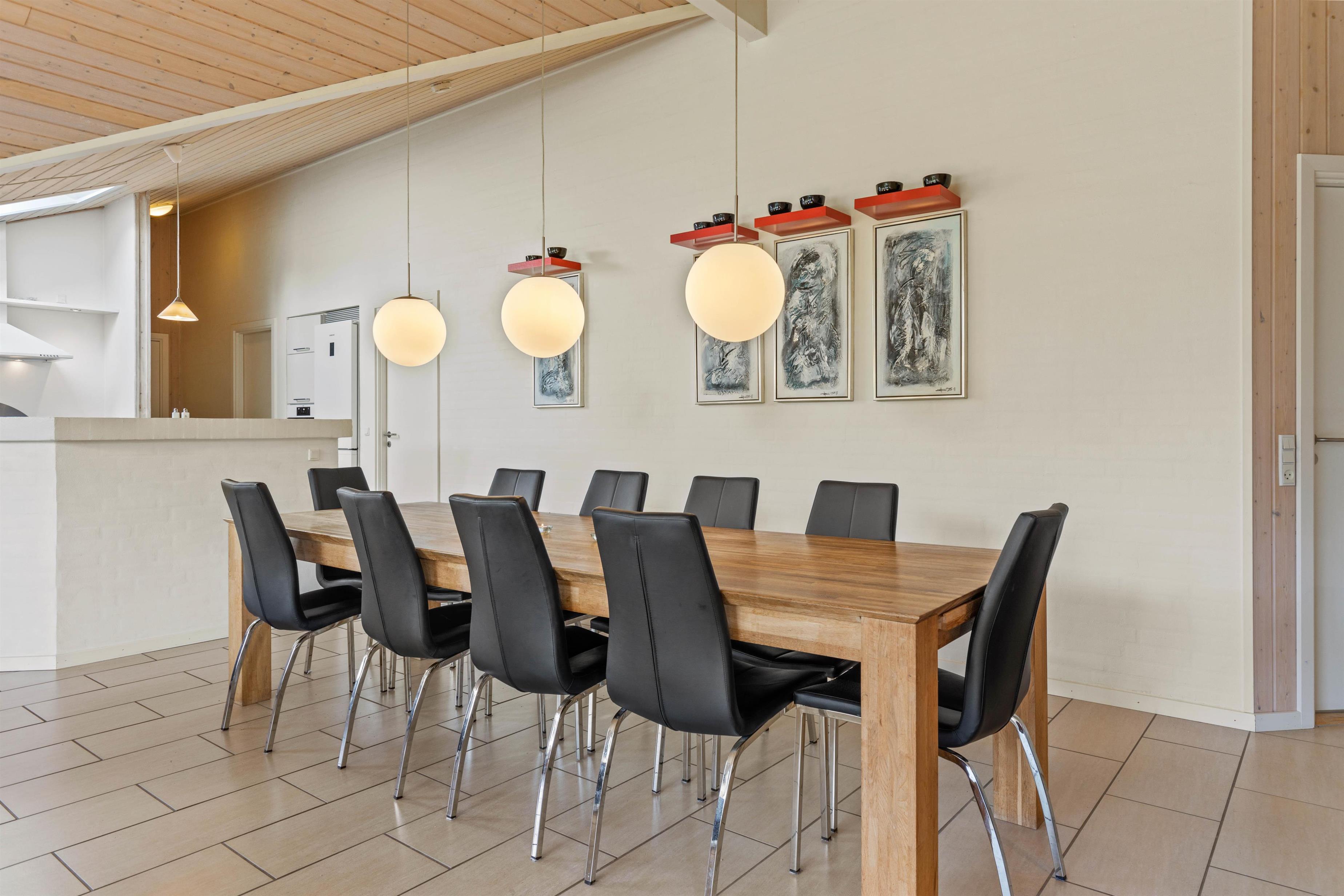 I feriehuset bliver I mødt af en hyggelig indretning, hvor I utvivlsomt vil føle jer hjemme på ferien. Hjertet i sommerhuset er alrummet, hvor stue og spiseafdeling ligger i åben forbindelse med køkkenet. Her sørger brændeovnen for at sætte prikken over i’et for den hyggelige feriestemning.