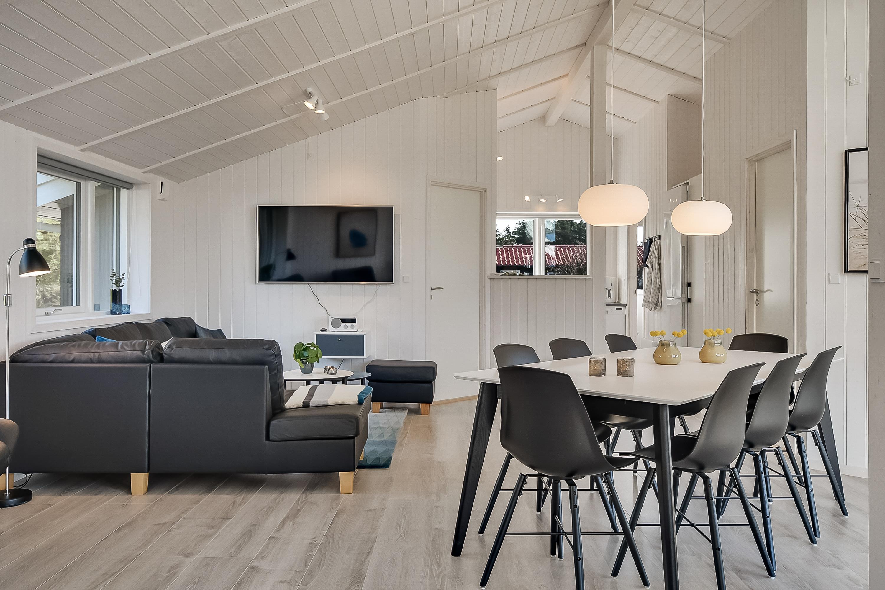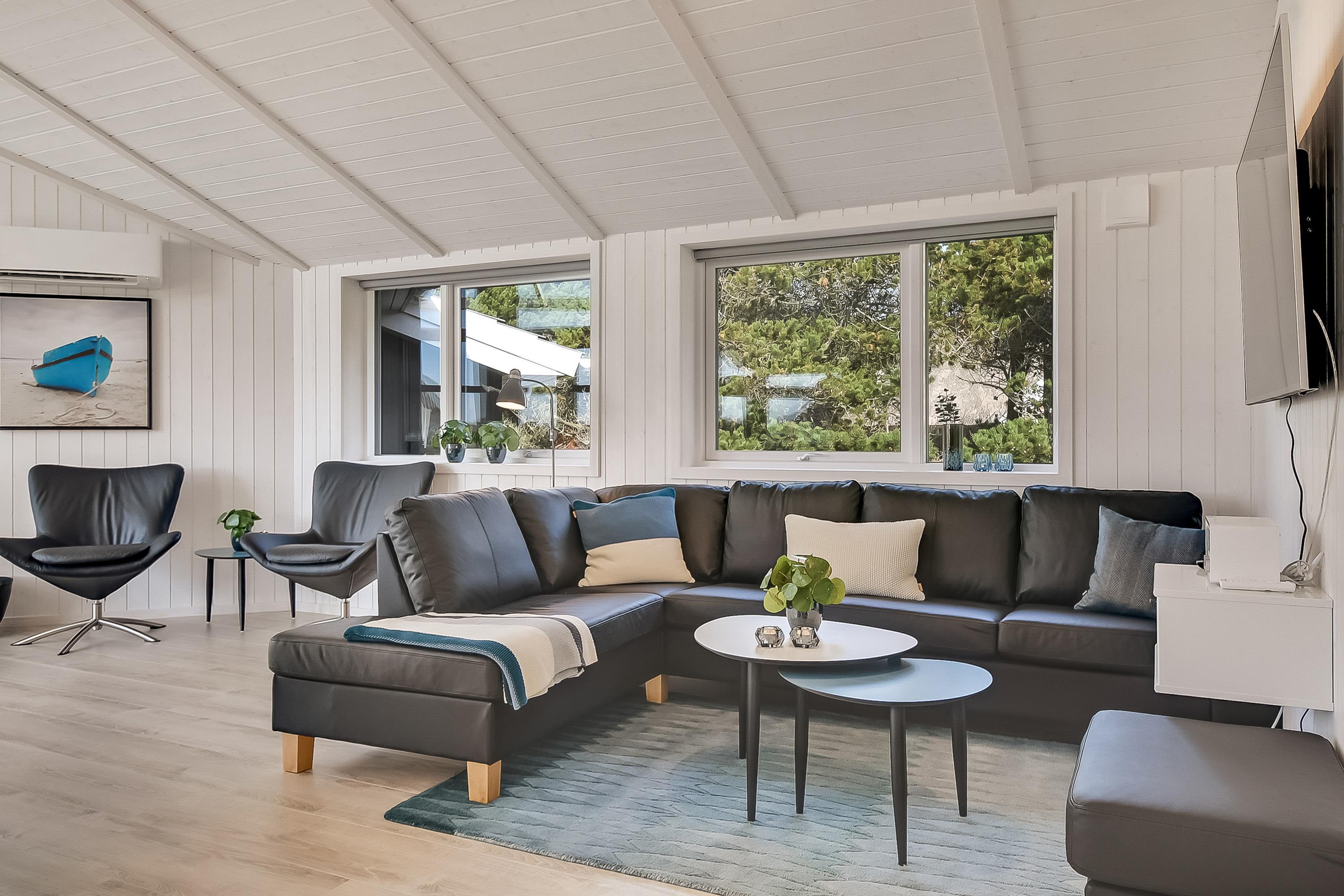 Huser, der er opført i 2018, er smart og moderne indrettet med store panoramaruder fra spisestuen og masser af dejligt lysindfald. De 4 soveværelser, 2 med dobbeltsenge og 2 med enkeltsenge, åbner op for muligheden for at holde familieferie med hele flokken eller ferie sammen med vennefamilien eller bedsteforældrene. Med 2 badeværelser, vaskemaskine og tørretumbler er ferien altid afslappet.