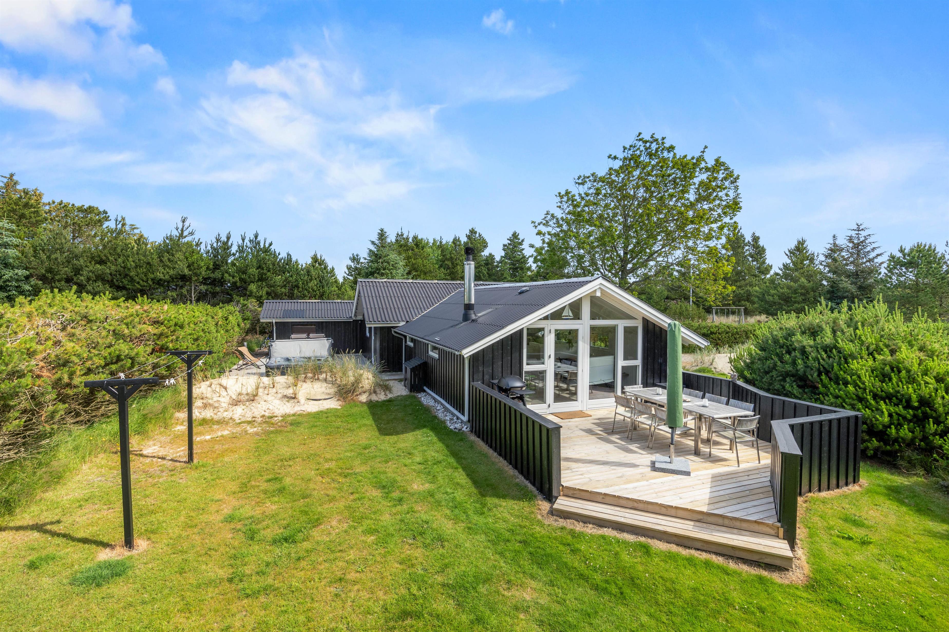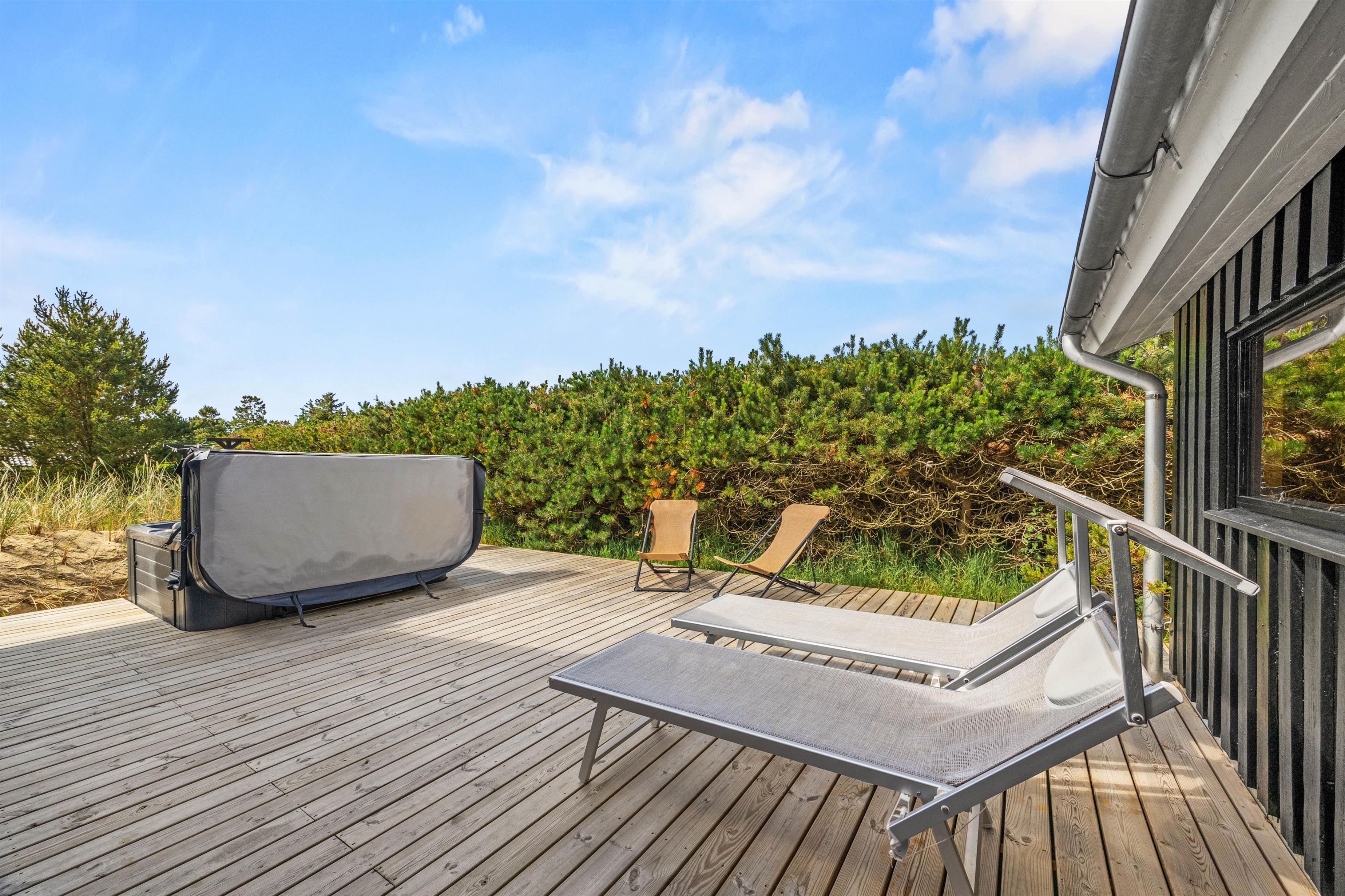 På sommerhusets udeområde venter jer nemlig en udespa, hvor I kan slappe af i det varme vand under den åbne himmel – og det er især fantastisk om aftenen under stjernerne. Derudover venter der jer en skøn udesauna, hvor I kan se frem til masser af afslapning i varmen. I kan også sætte jer ind i udesaunaen efter en gåtur eller en tur ved Vesterhavet, så I kan få varmen igen.