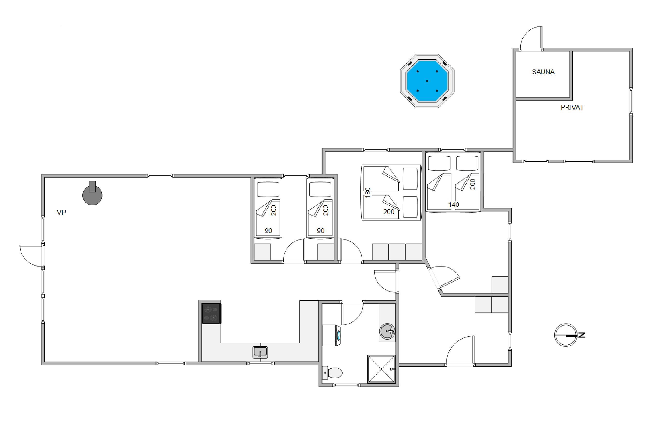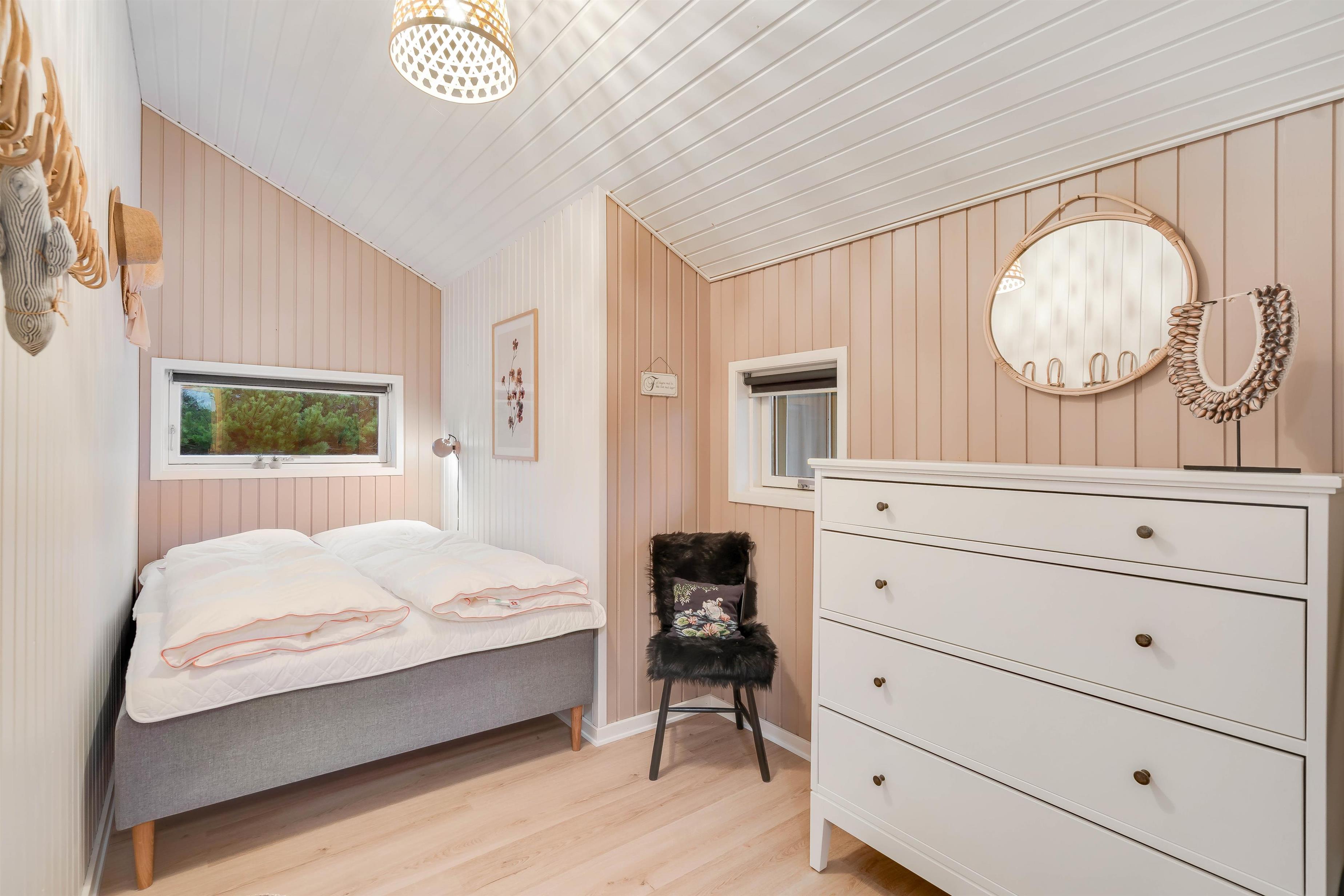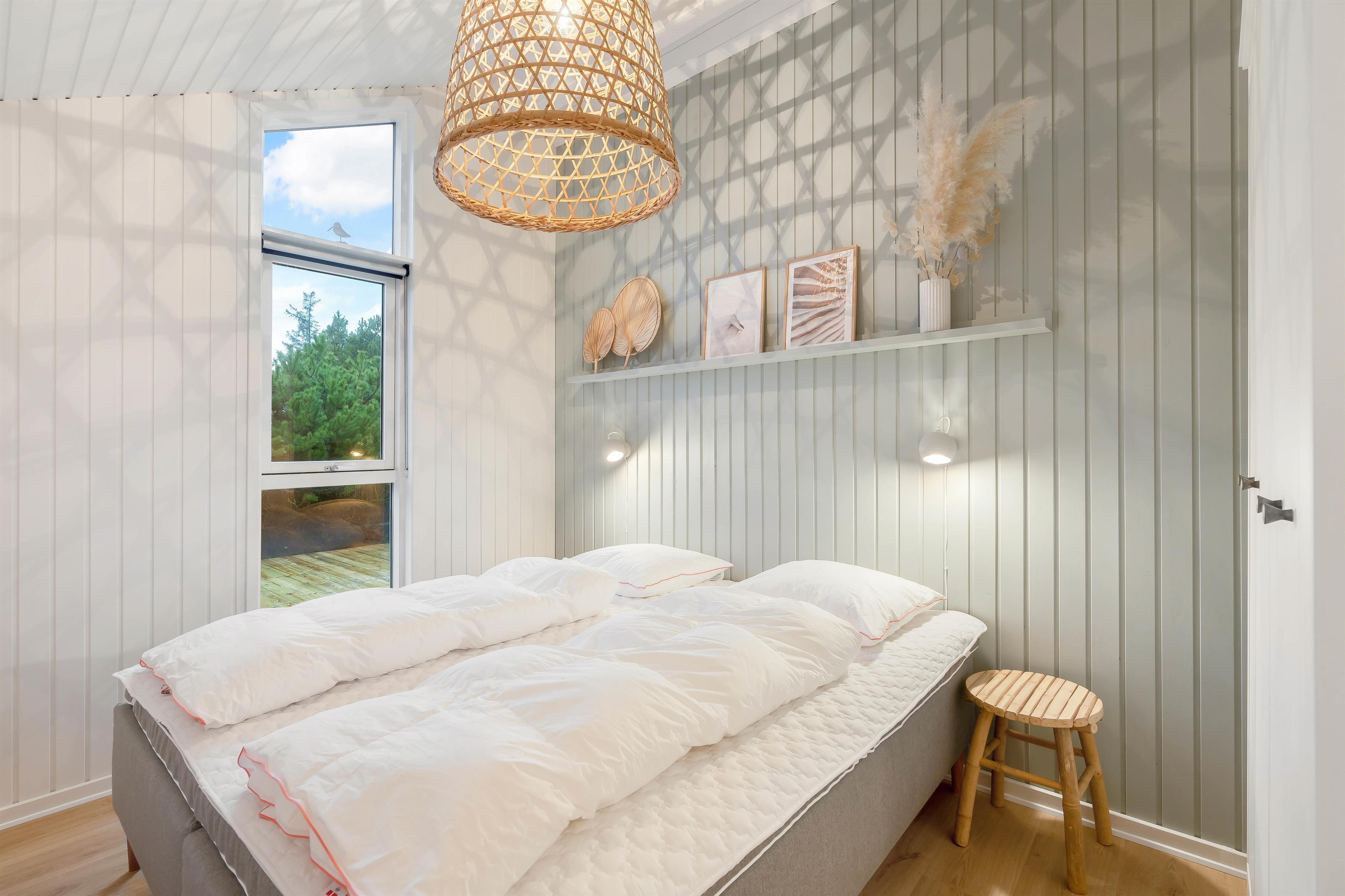 I sommerhuset venter jer 3 soveværelser, som I kan søge mod, når feriedagen lakker mod enden. På det ene soveværelse er der 2 enkeltsenge, og på hvert af de andre 2 soveværelser er der en dobbeltseng. Gulvvarmen på badeværelset sørger for, at I ikke fryser tæerne næste morgen.