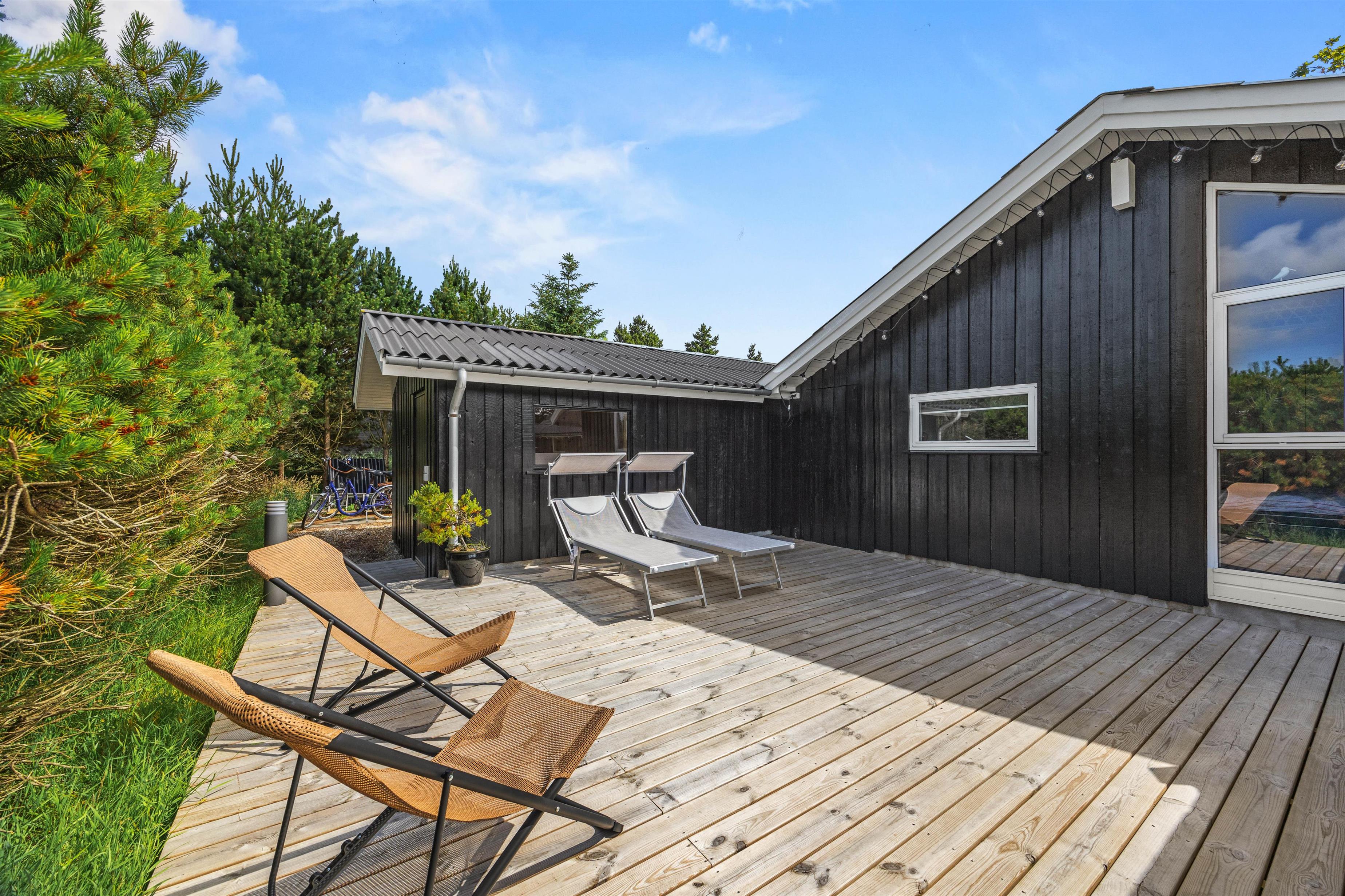 Sommerhuset har også en skøn terrasse, der vender mod syd, hvor I kan sætte jer godt til rette i havemøbler og liggestole og nyde solen meget af dagen.