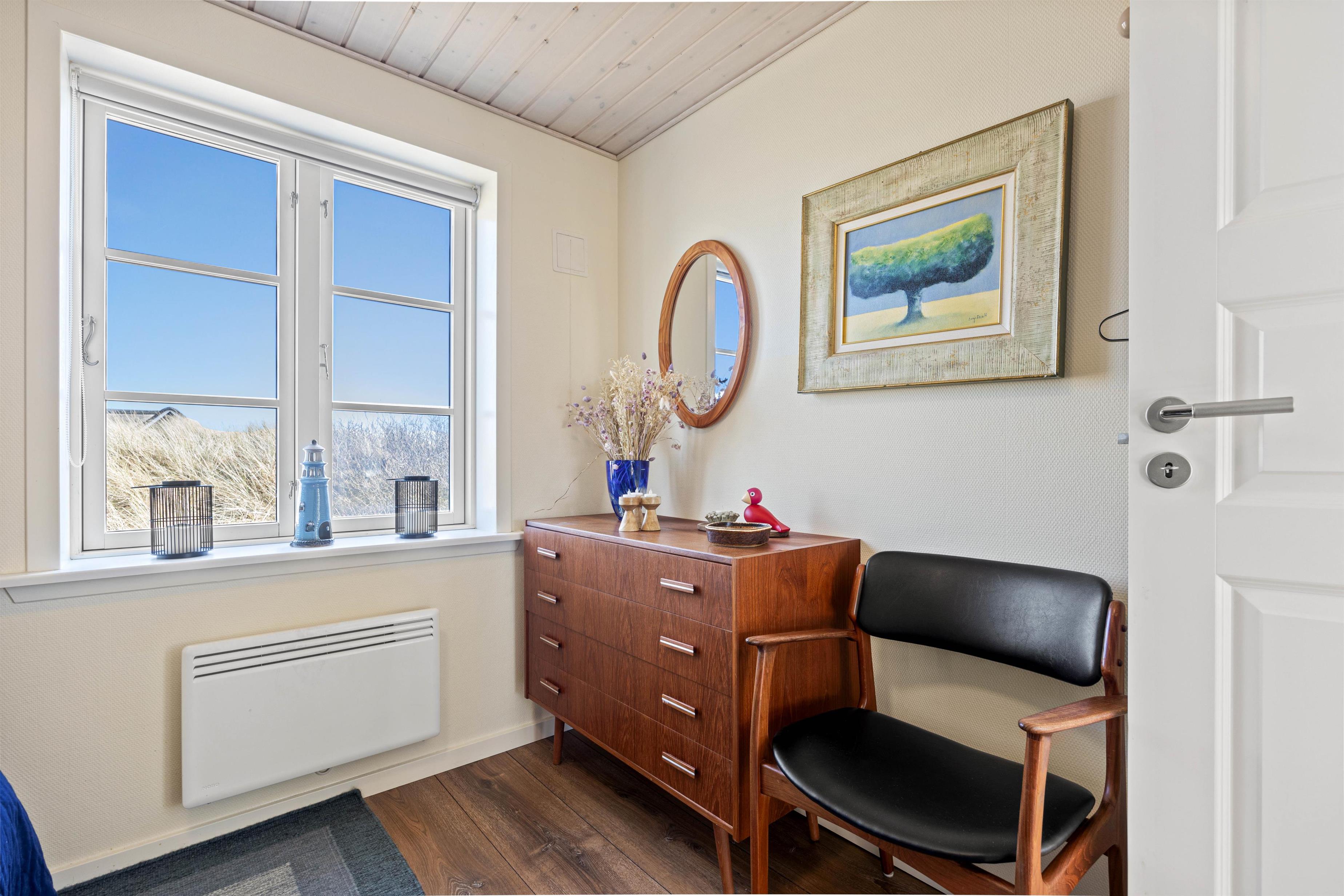 Feriehuset er renoveret i 2019 og er lyst og venligt indrettet. Det emmer af feriestemning og er perfekt til den lille familie. I vil have rig mulighed for at nyde Blåvands bedste udsigt fra feriehusets store vinduer på første sal, mens I slapper af med en god bog eller en kop kaffe.