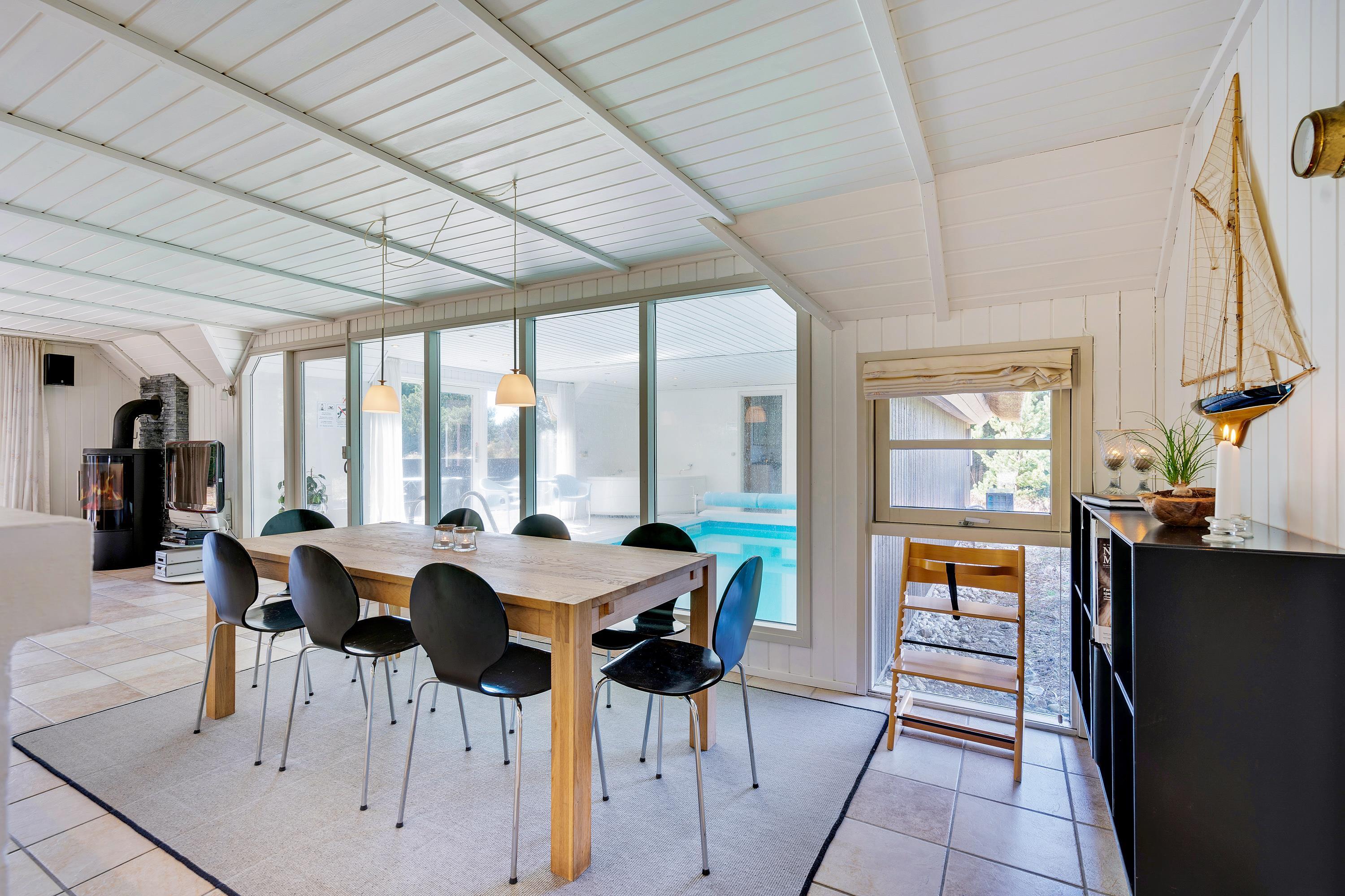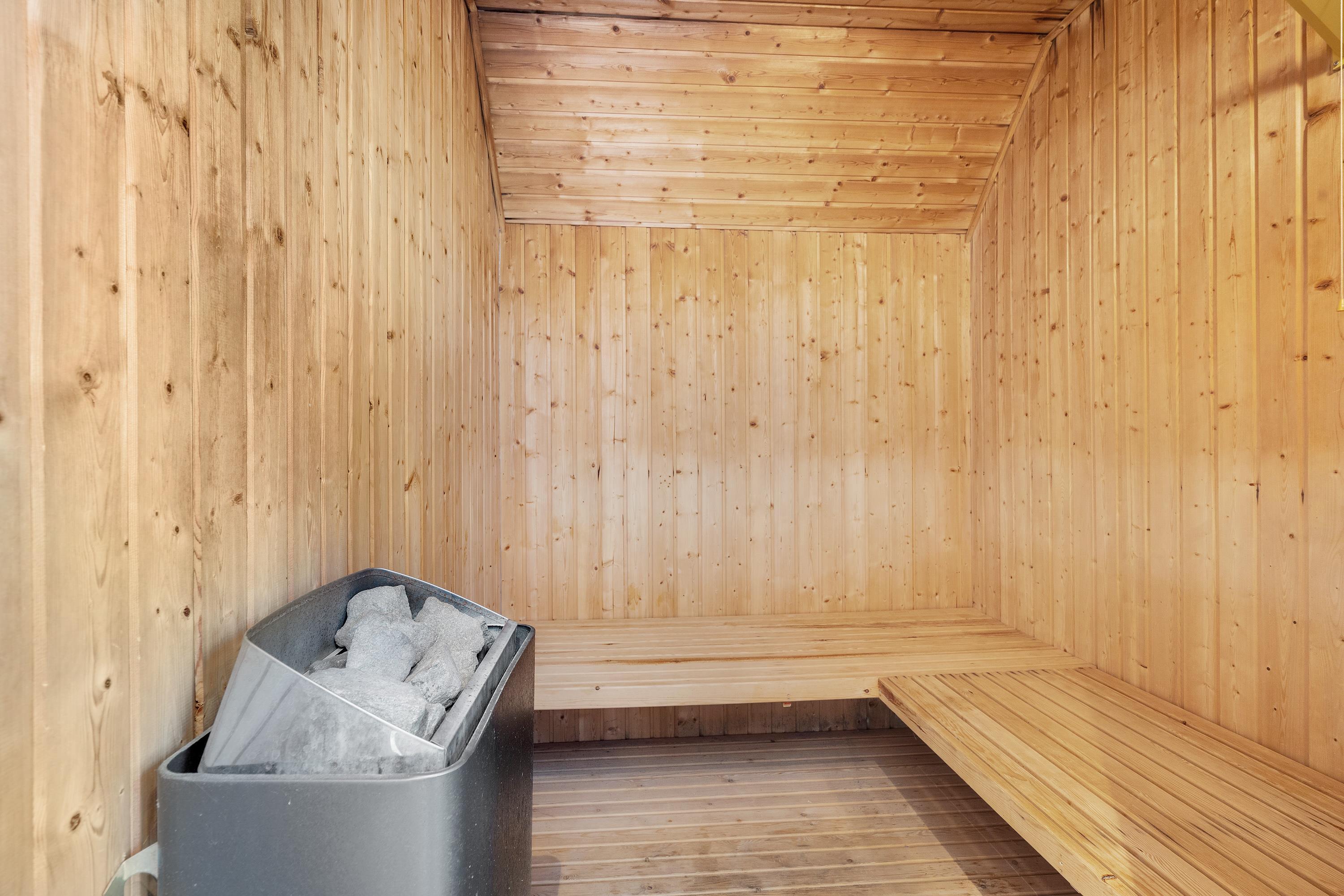 Her kan I holde en både aktiv og afslappende ferie. Sommerhuset har nemlig sin helt egen poolafdeling med indendørs swimmingpool med børnevenlig trappe, sauna og spabad – her er både vandhundene og de wellnessglade gæster godt beskæftigede.