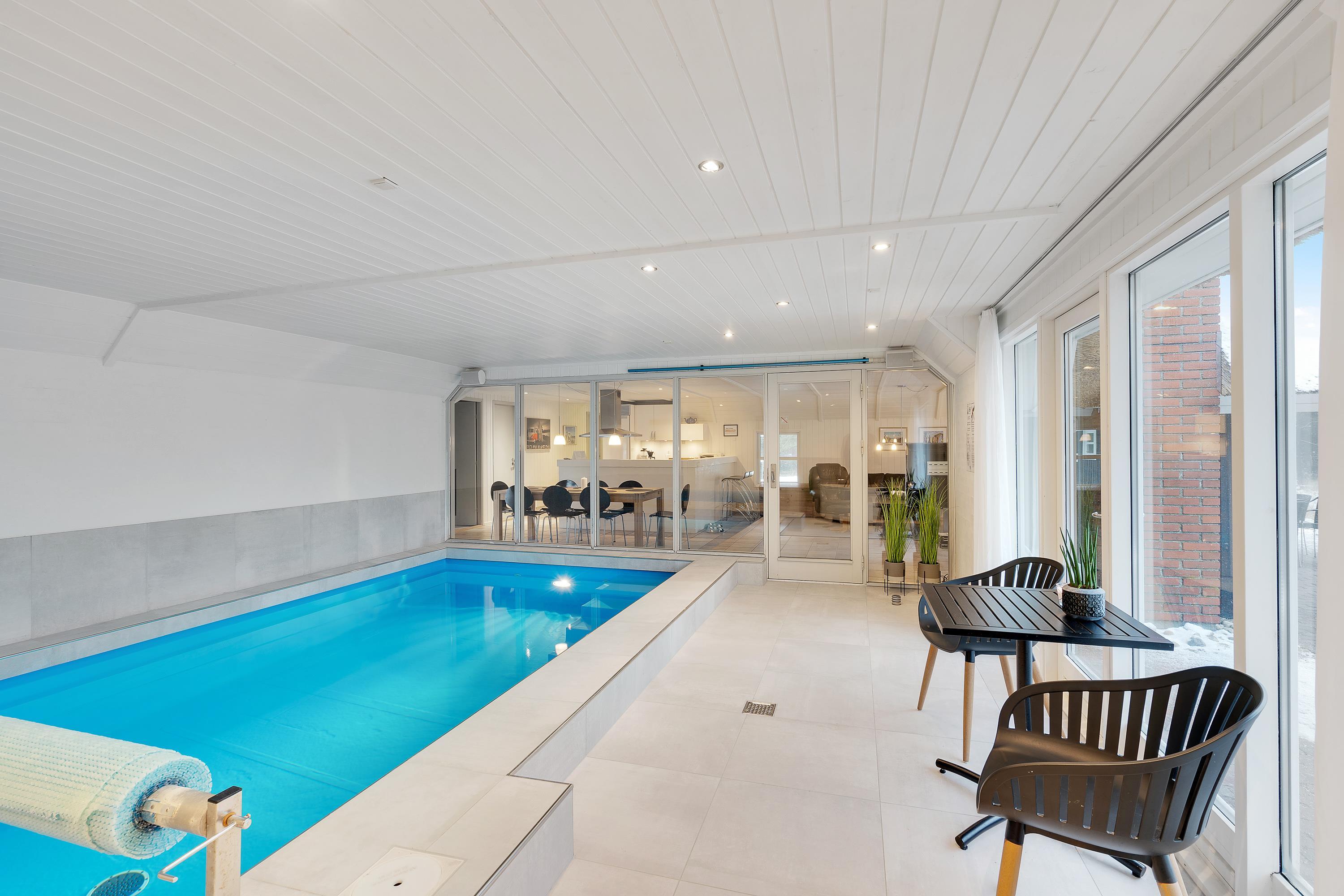 På Per Knoldsvej 42 i Blåvand kan I holde en storslået sommerhusferie med hele familien. Det store poolhus rummer plads til 8 personer, og hundene er også velkomne. Ud over jeres egen indendørs swimmingpool med god børnevenlig trappe og tilhørende wellnessområde med sauna og spabad får I her et rummeligt og renoveret (2019) indre og en stor, delvist overdækket terrasse. Både centrum og stranden ligger kun 10 minutters gang væk.