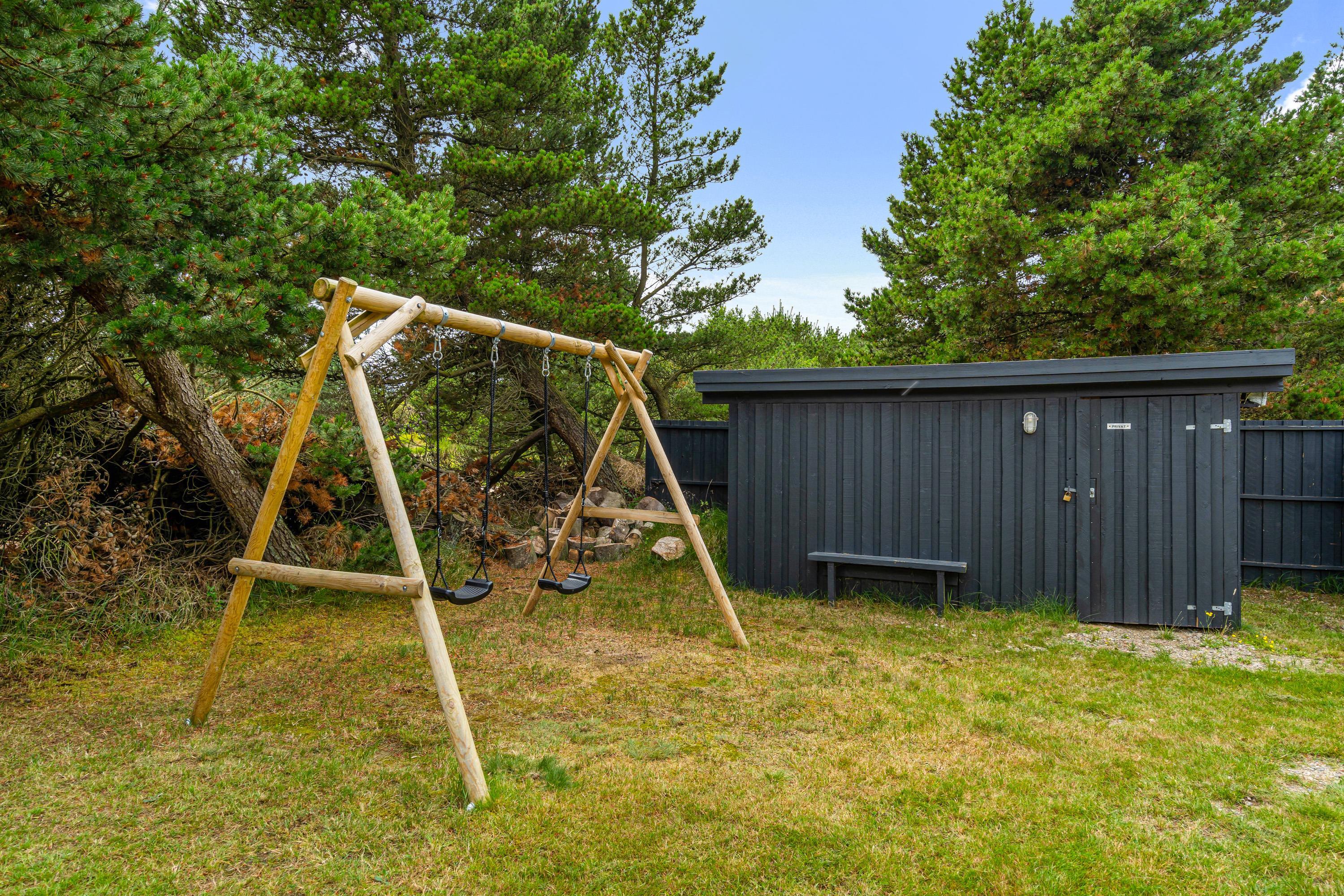 Mens de voksne slapper af på terrassen, kan børnene lege i haven. Her er der et gyngestativ, som uden tvivl vil være til stor glæde for dem. Om aftenen, når børnene gynger dagens sidste tur på gyngen, kan I gøre klar til en lækker grillmiddag på terrassen.
