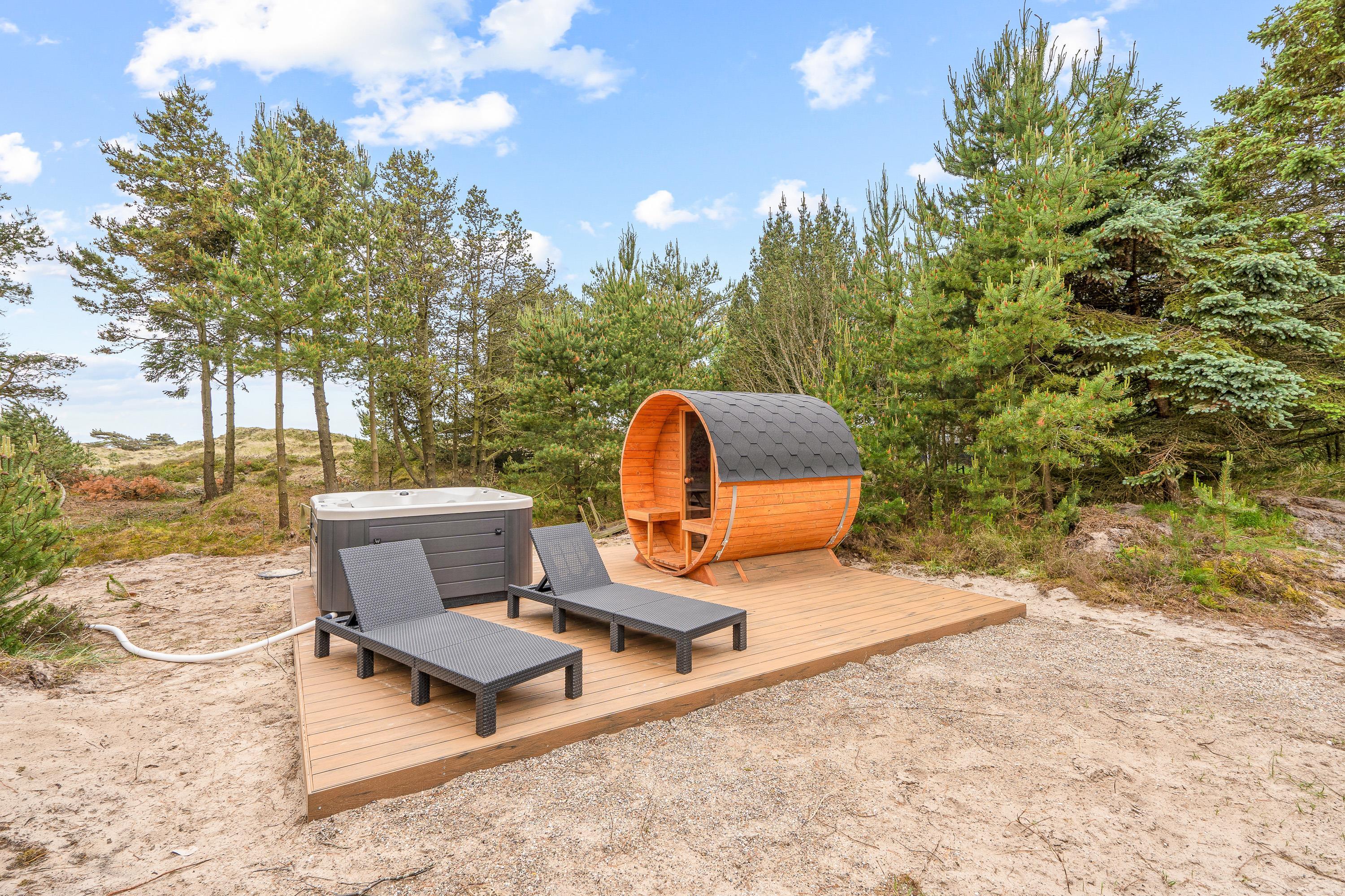 Udendørs afslapning med spa og sauna på Krogsande 17A