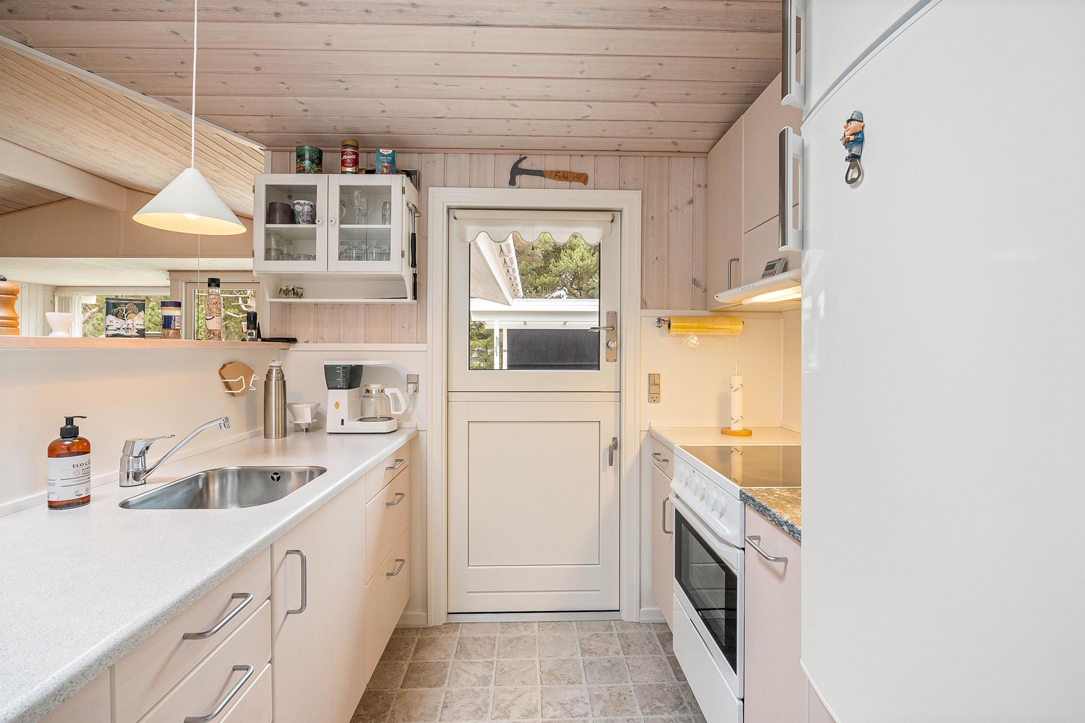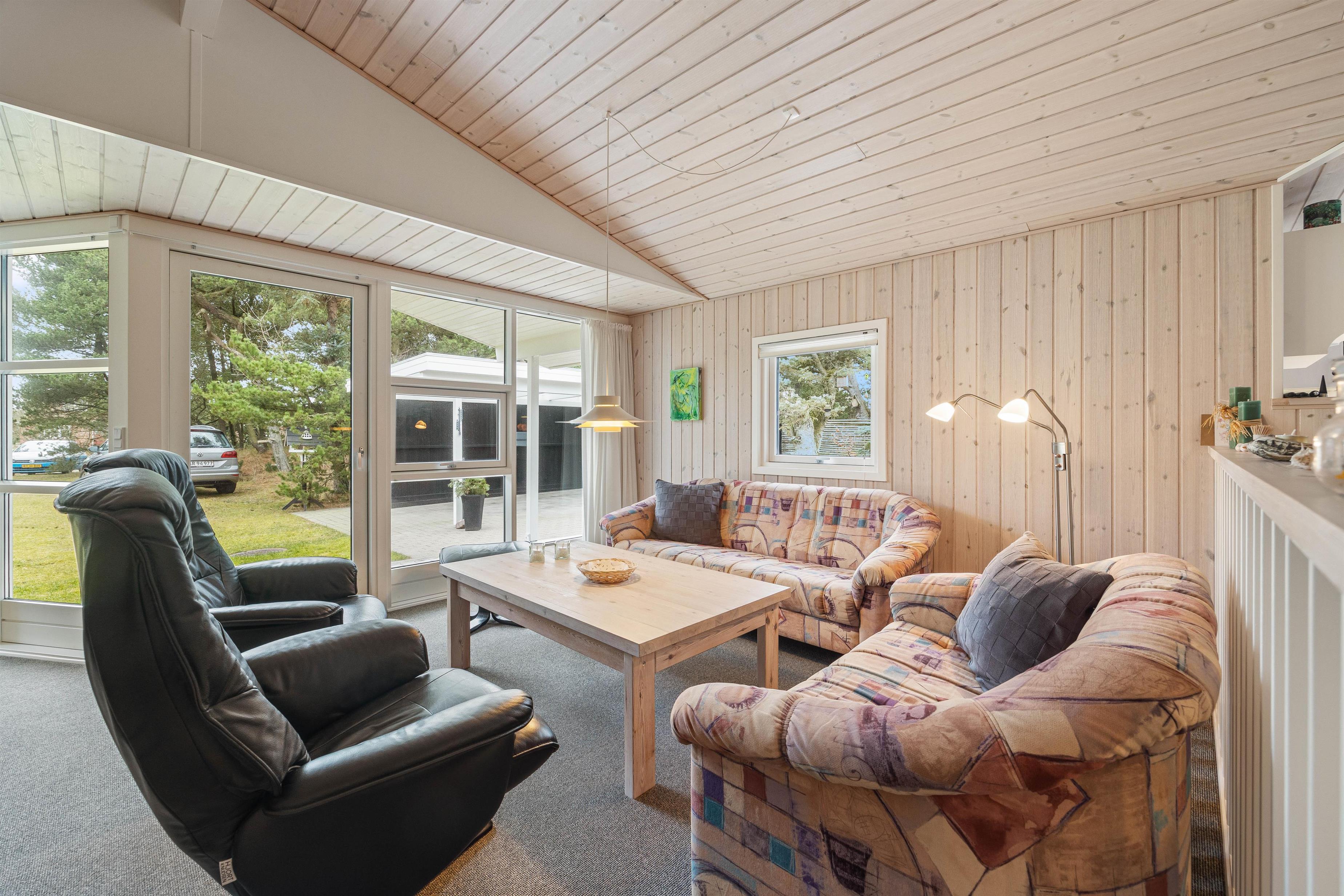 Sommerhuset på Sønder-Vasevej 11 i Blåvand byder på en hyggelig indretning, som I helt sikkert kommer til at føle jer hjemme i. Her er der trævægge og -lofter og et godt lysindfald, der er med til at skabe den helt rette ferieatmosfære.