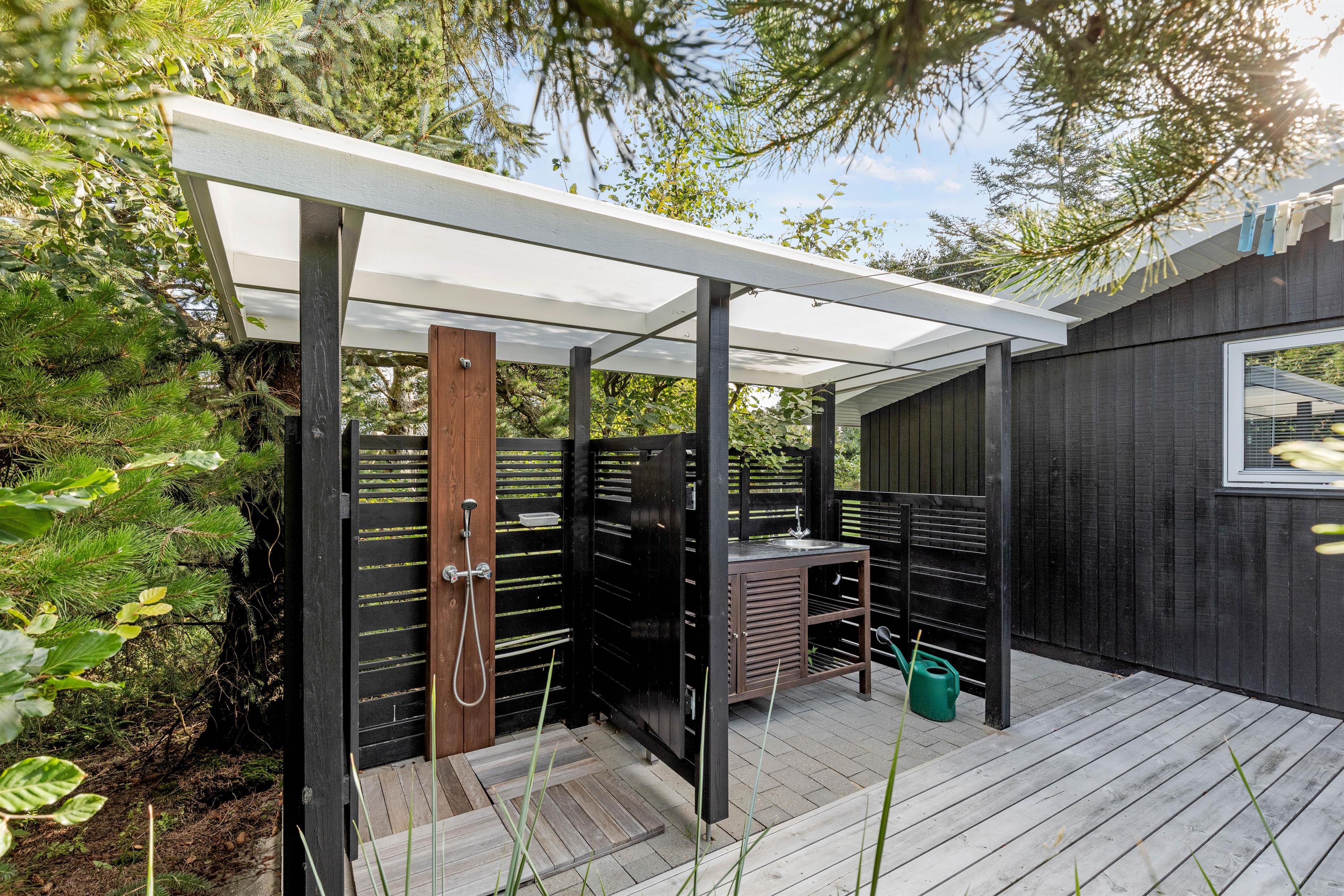 Fra 1. april til 31. oktober har I også en udebruser, som I kan skylle jer under, når I kommer tilbage efter en tur på stranden, så I kan få skyllet det sidste sand af fødderne.