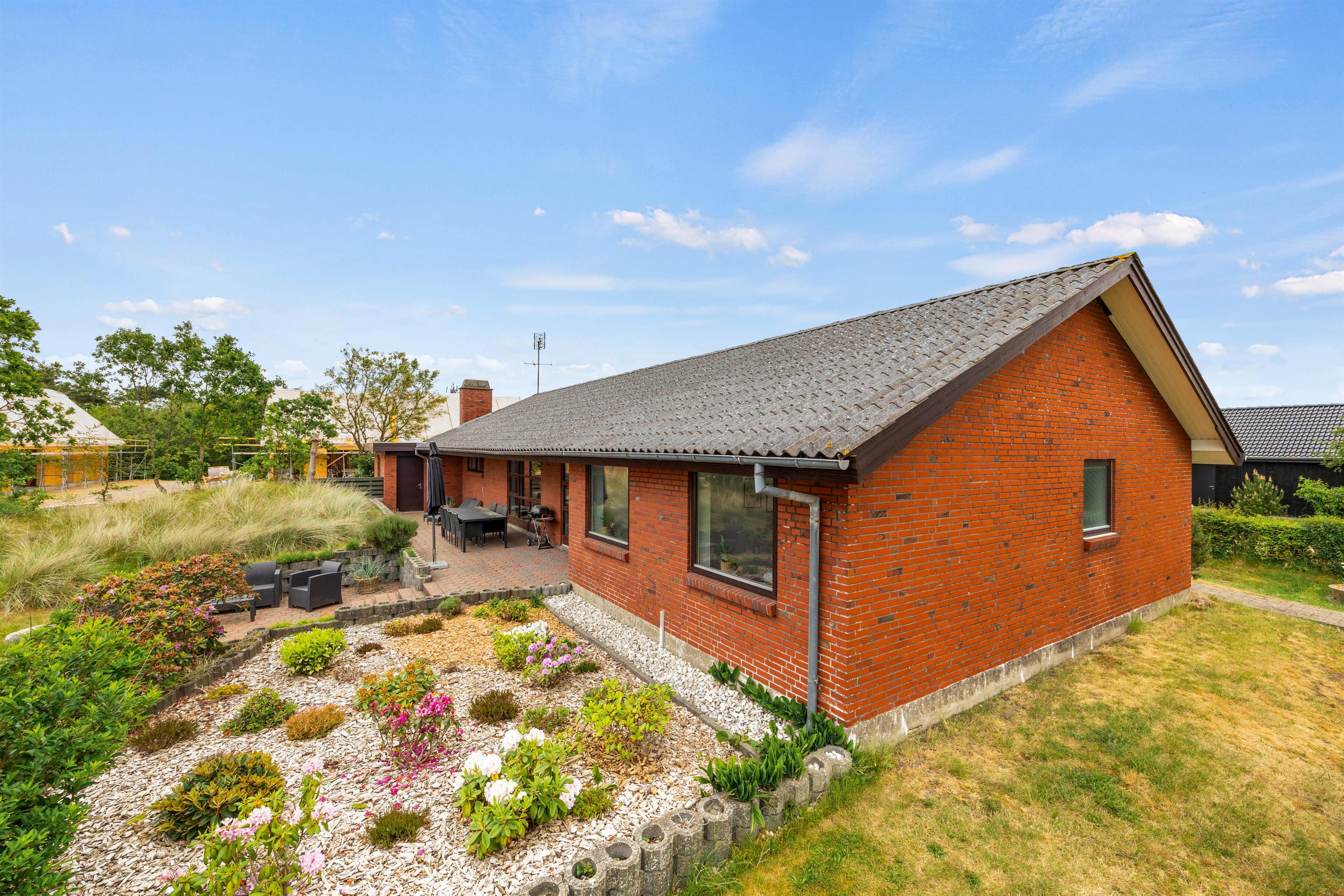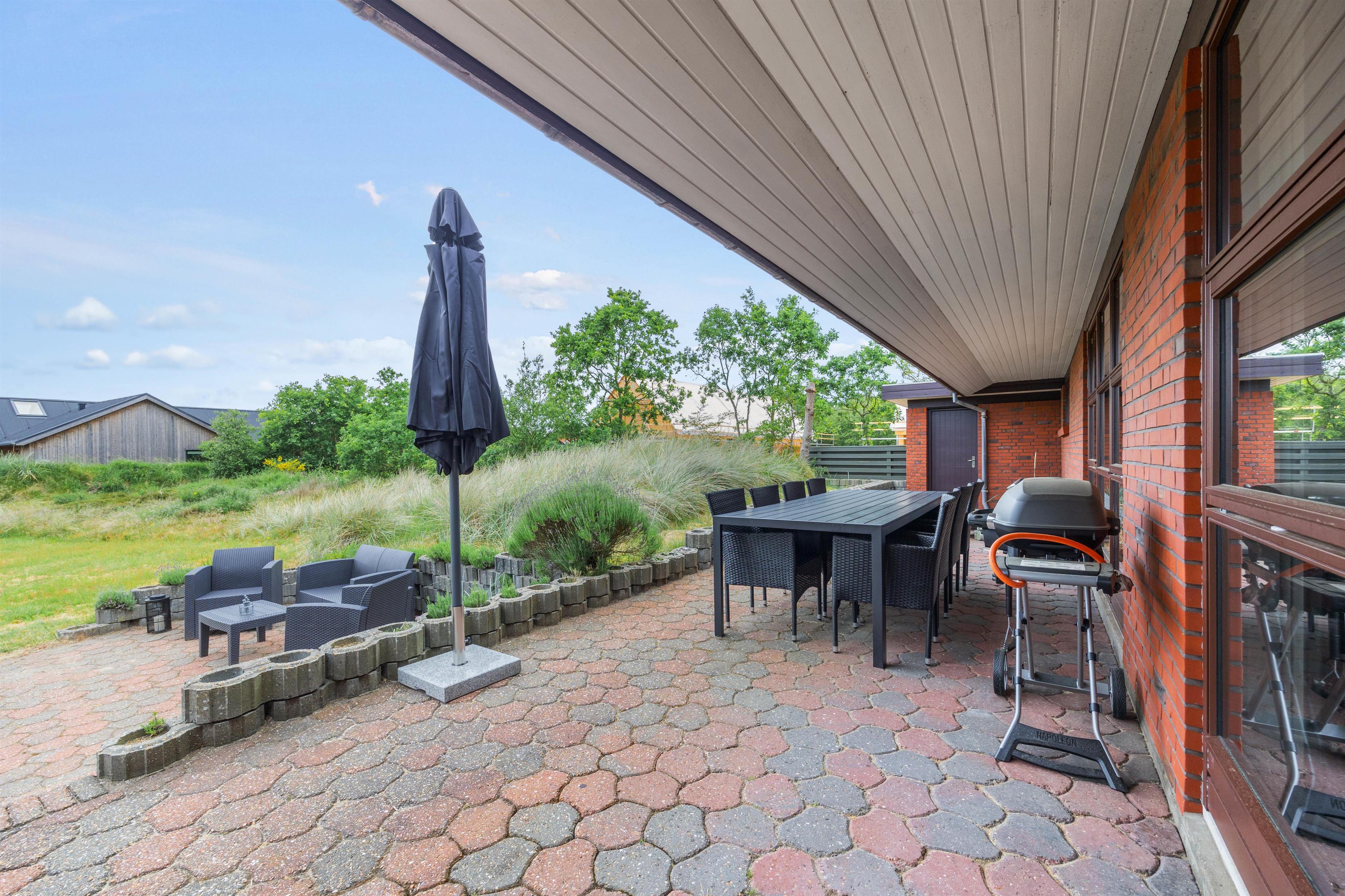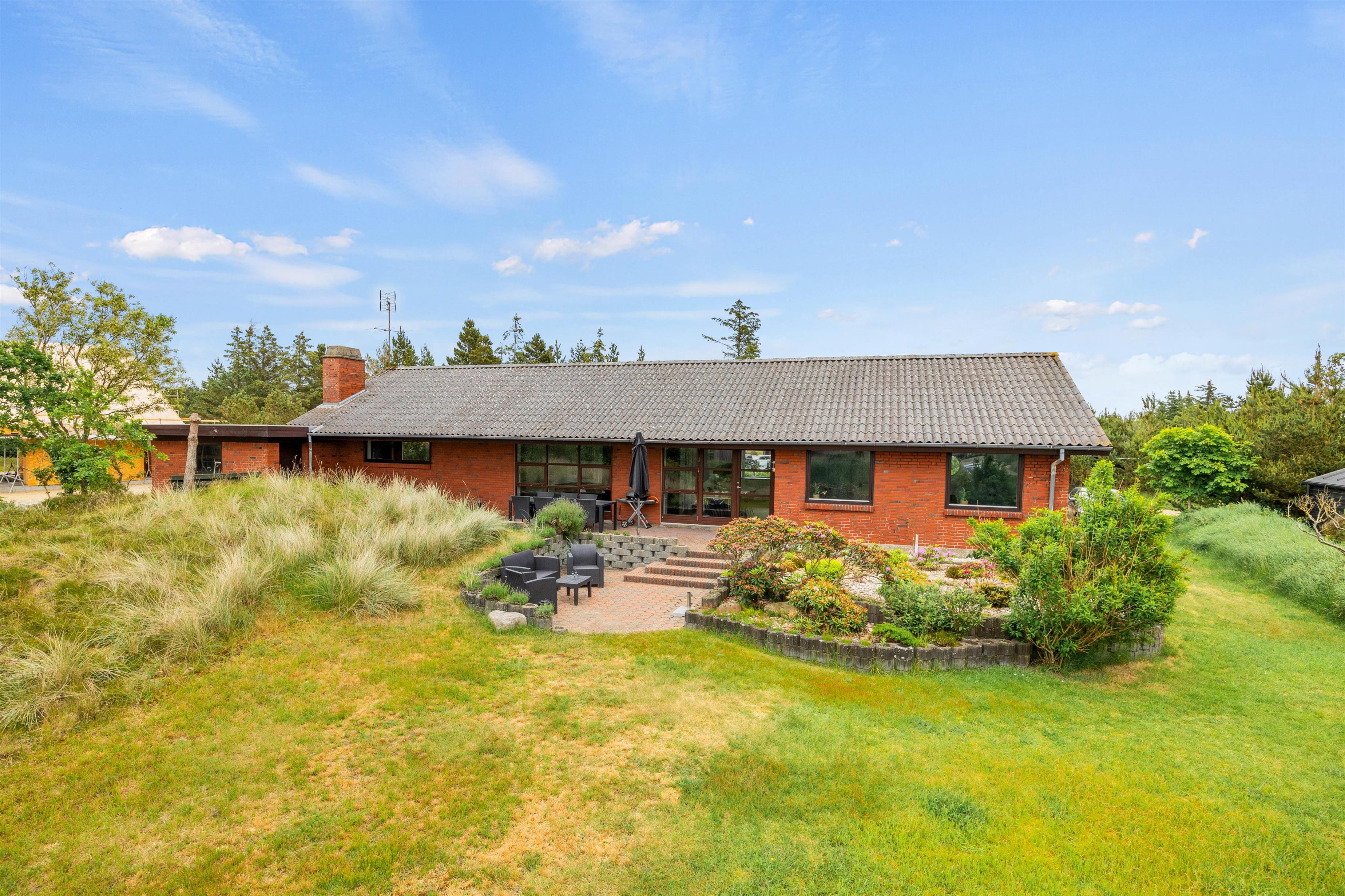 Feriehuset tilbyder nemlig bl.a. bordtennis og poolbord indenfor og en volleyball-bane udendørs samt mange hyggekroge i haven på den store grund. Samtidig er der ikke langt til shopping og restauranter i Blåvand by – kun 350 meter til bymidten.