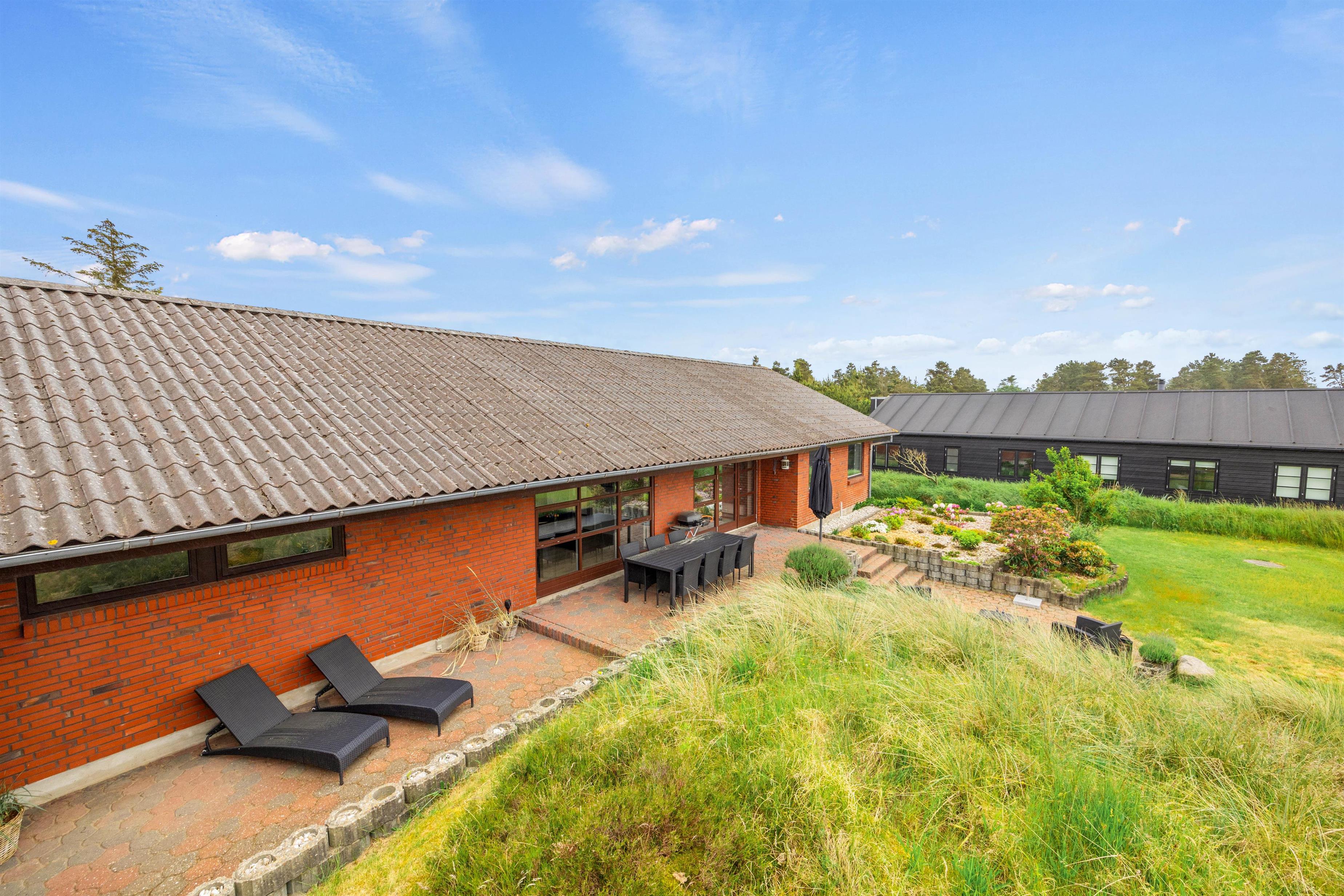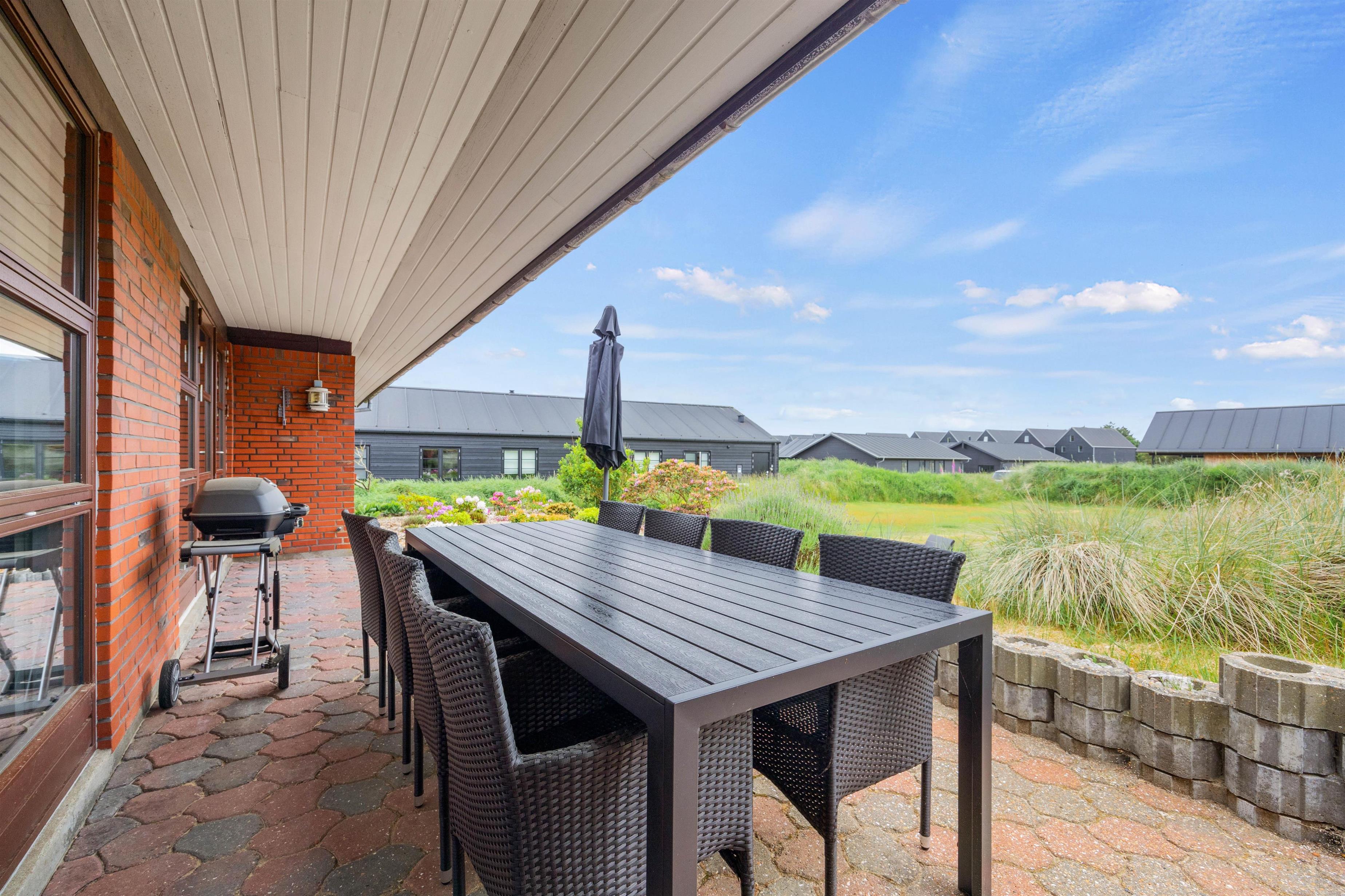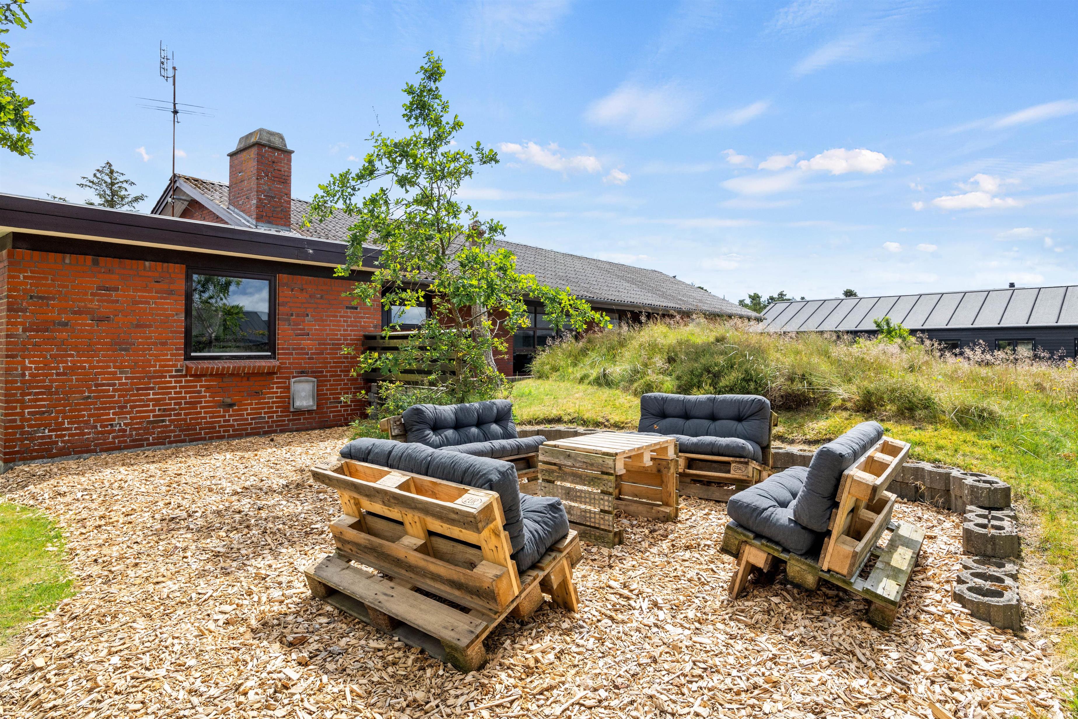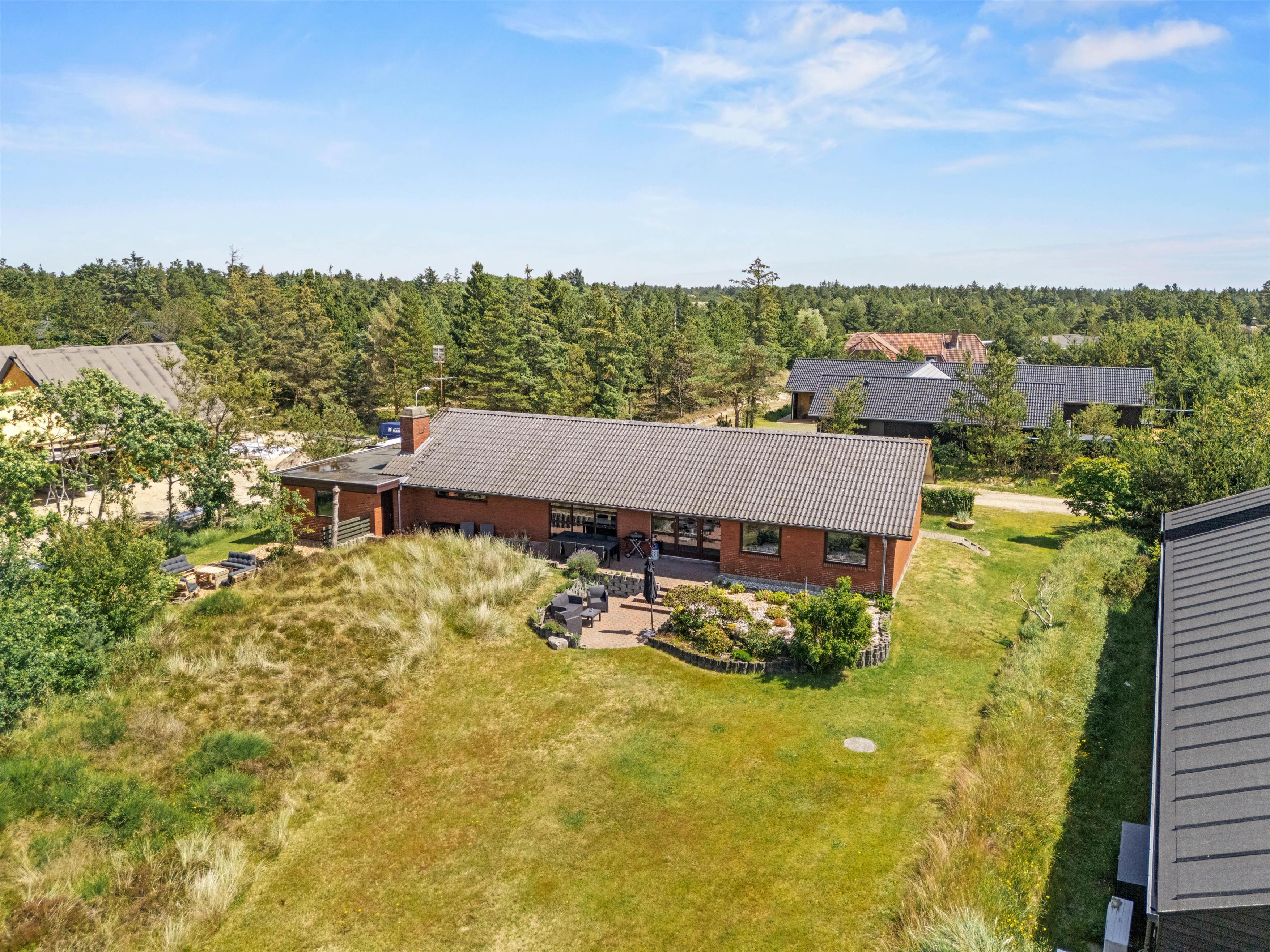 Feriehuset tilbyder nemlig bl.a. bordtennis og poolbord indenfor og en volleyball-bane udendørs samt mange hyggekroge i haven på den store grund. Samtidig er der ikke langt til shopping og restauranter i Blåvand by – kun 350 meter til bymidten.