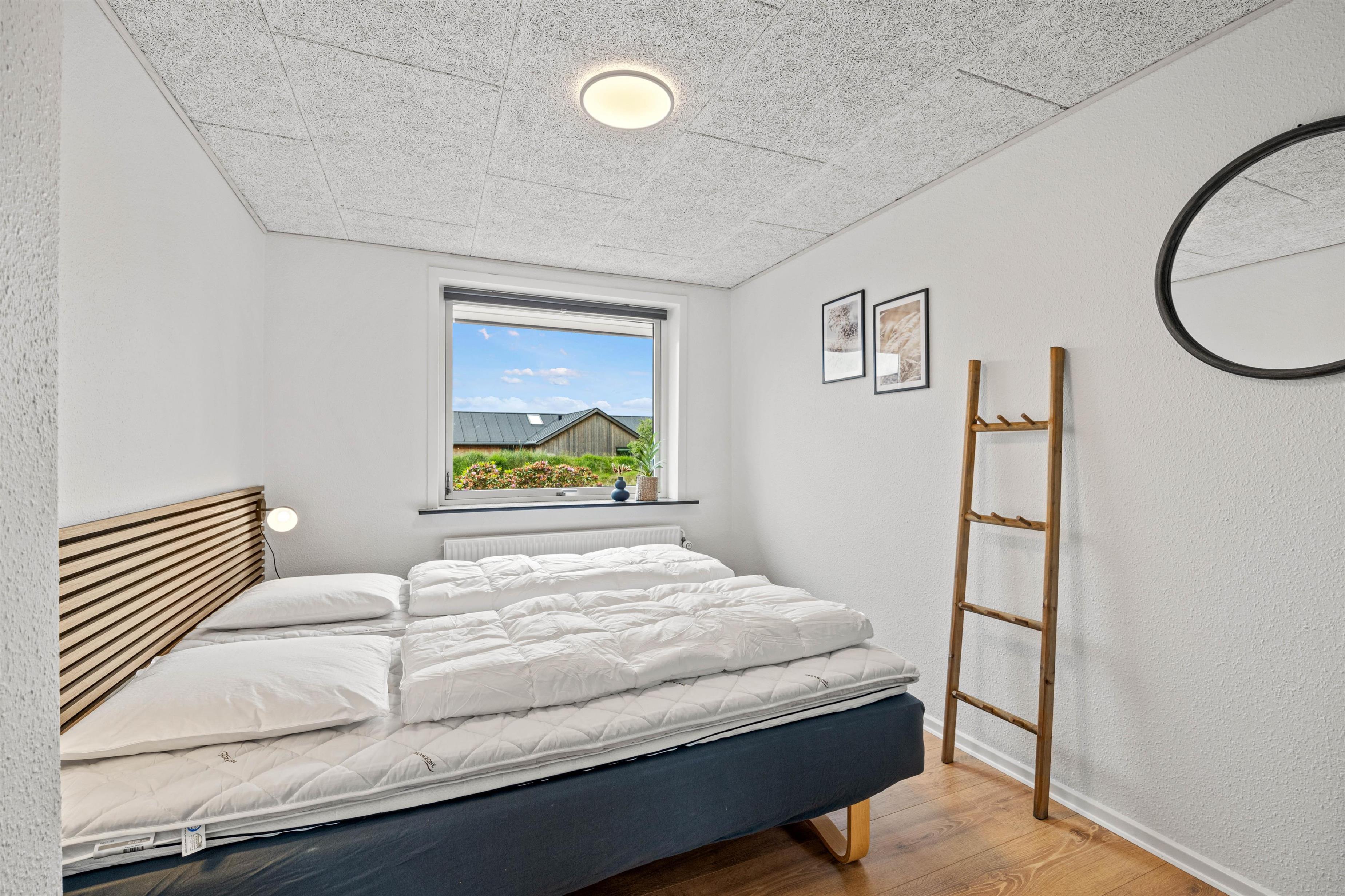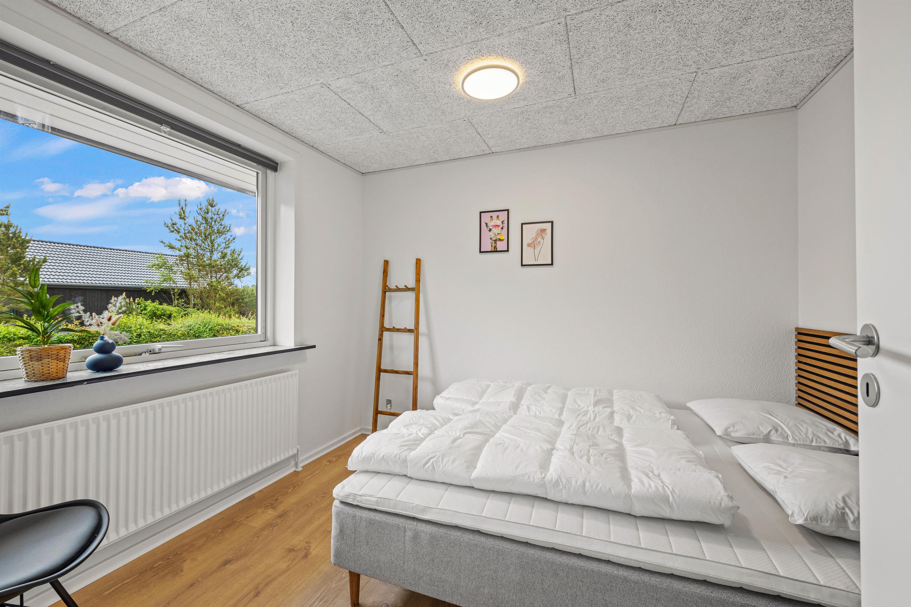 Sommerhuset har 4 soverum, hvoraf de 3 er med dobbeltsenge med ekstra længde og det sidste med en større trekvartseng. I alle soverummene er der desuden skabe, så I kan få ferietøjet lagt godt til rette til en afslappende uge på Danmarks vestkyst.