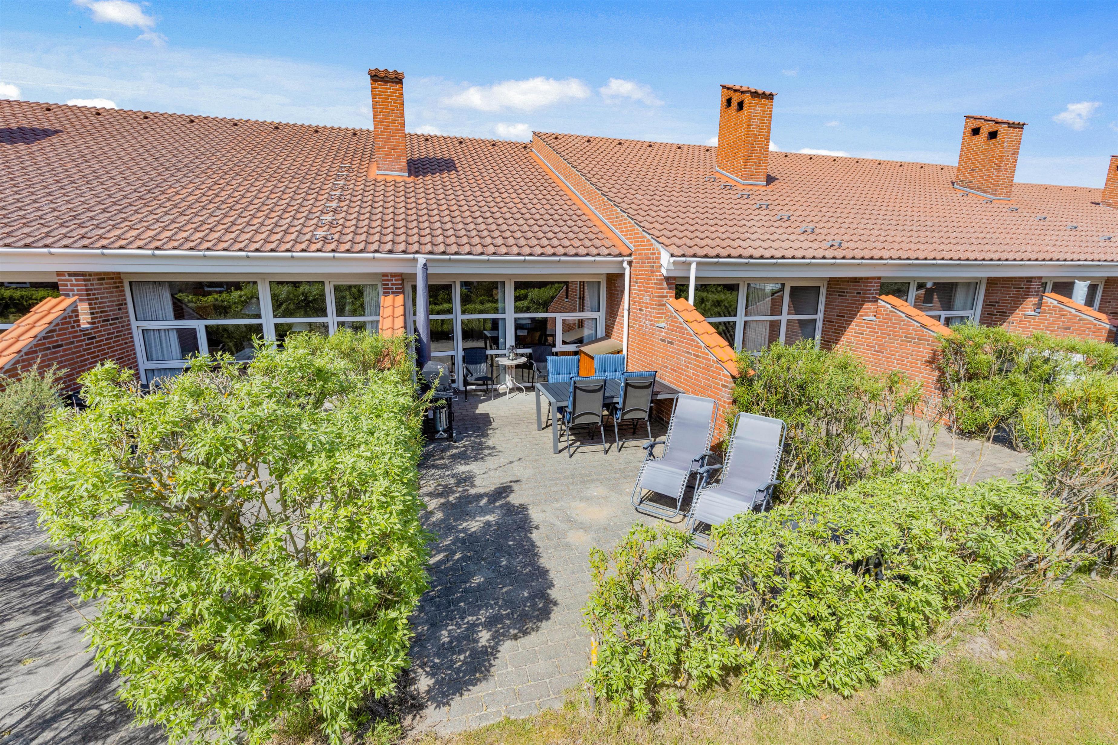 Med den sydvendte terrasse kan I nyde solens stråler hele dagen, og får I lyst til at slikke sol, kan I benytte feriehusets solvogne. Vil I hellere sidde under parasollen ved terrassebordet og nyde en god frokost, er dette så sandelig også muligt. Terrassen er delvist lukket af, så I har mulighed for at komme jeres naboer ved og derigennem skabe nye bekendtskaber.