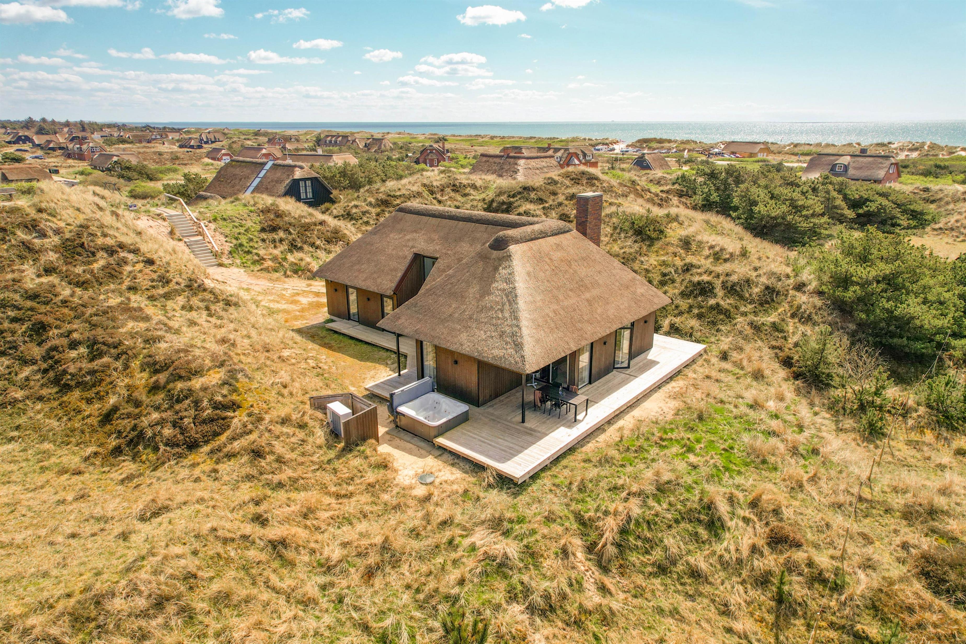 Sommerhuset er bygget under hensyntagen til den helt særlige natur midt i landskabet og ligger godt i læ af de omkringliggende klitter. Der er kørselsadgang op til huset over den lidt stejle klit, men også mulighed for at parkere nedenfor klitten.